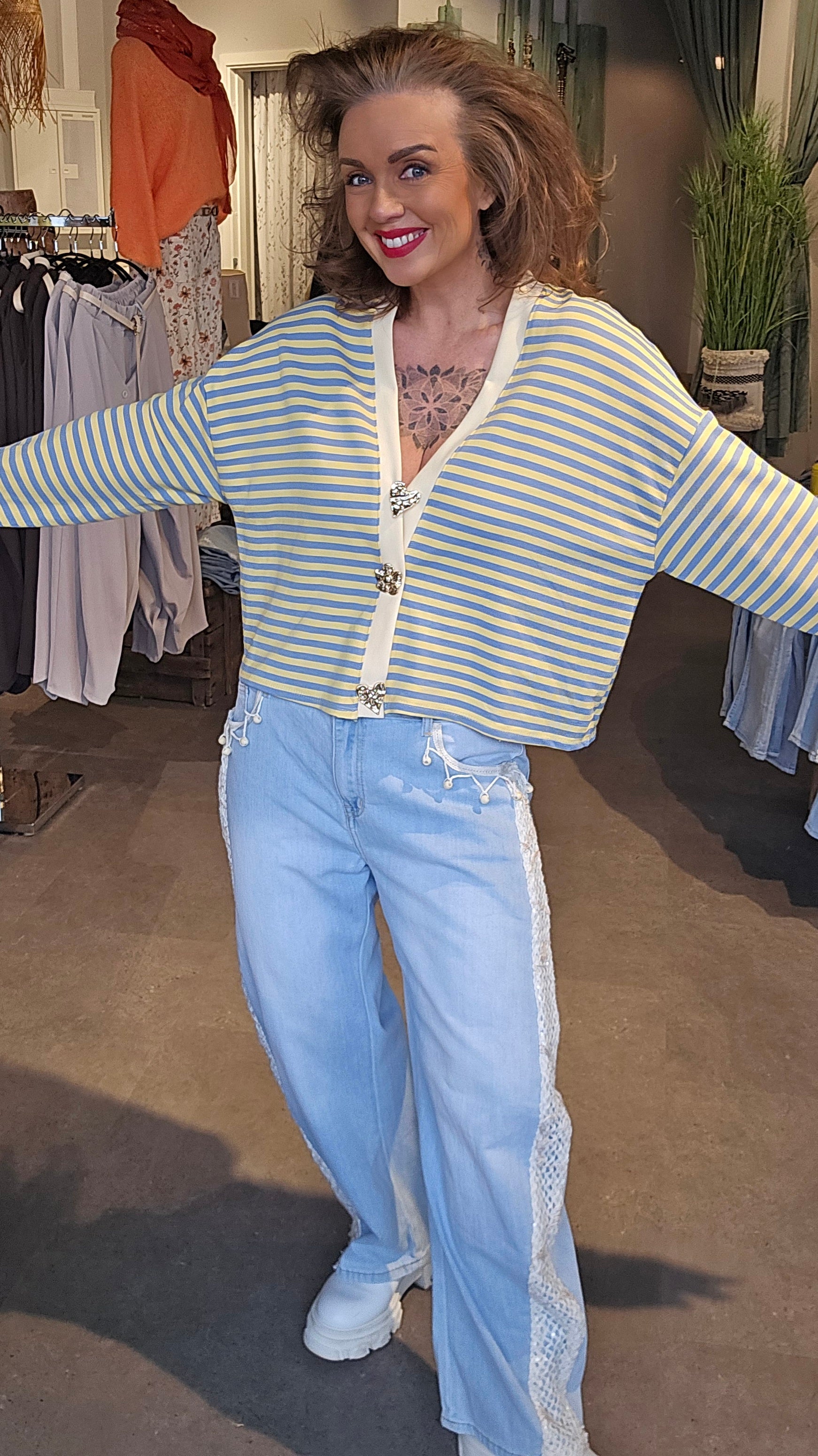 Lydia linbukse gul stripet