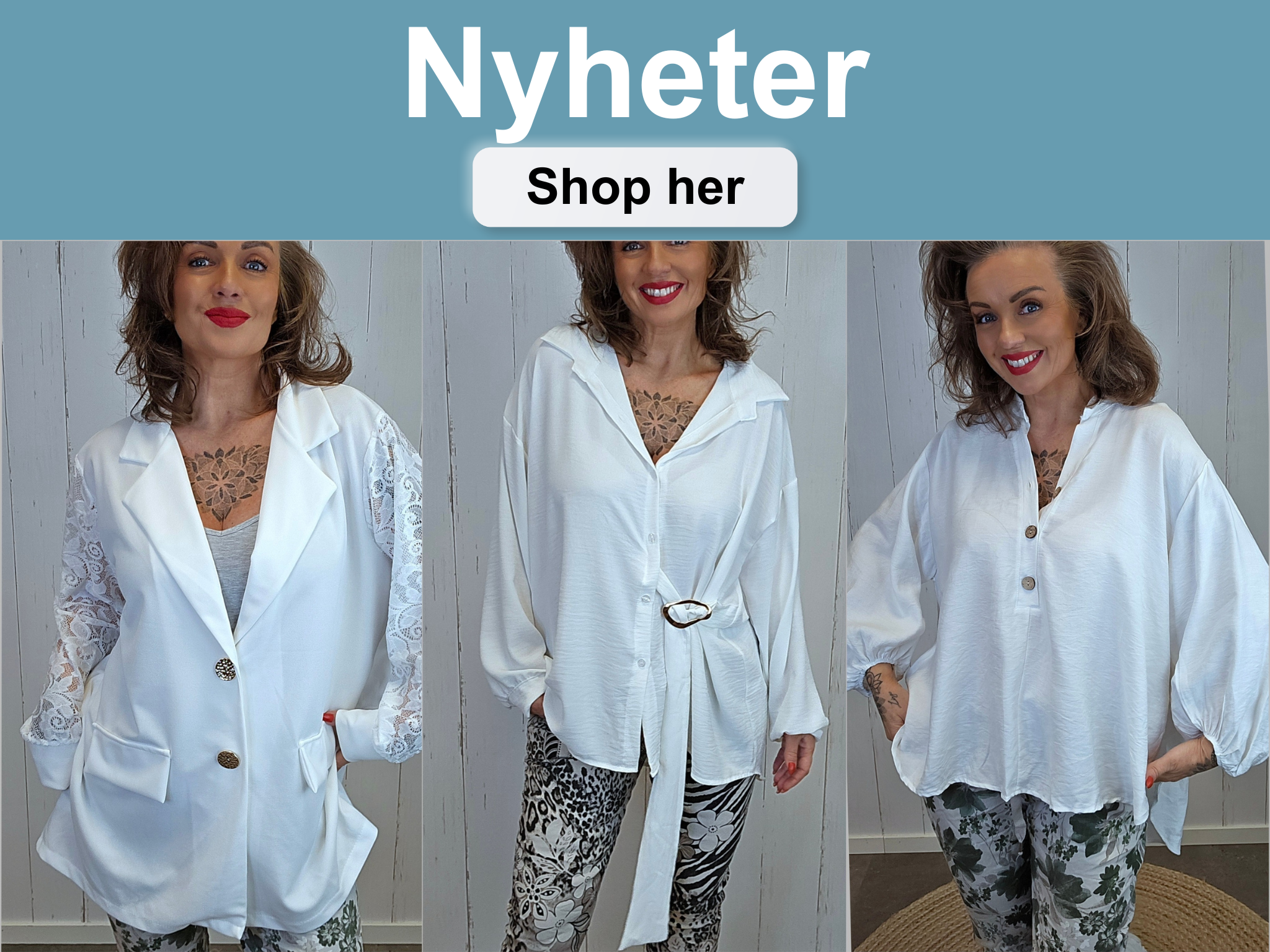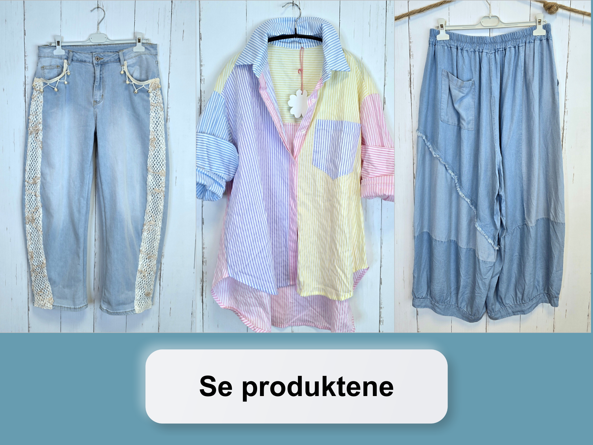 Vera blondeskjorte med denimdetaljer