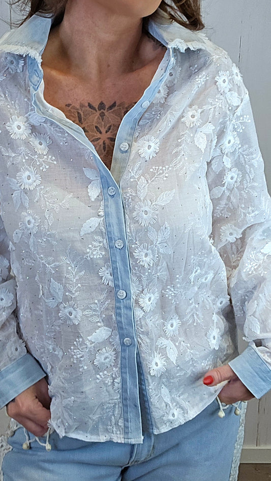 Amanda blondeskjorte hvit/blå