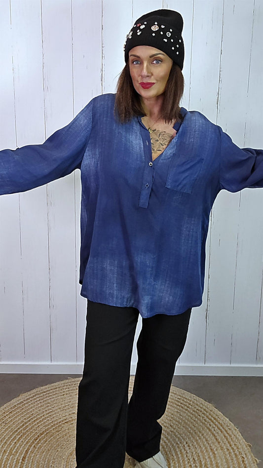UtsolgtMira blå viskose bluse
