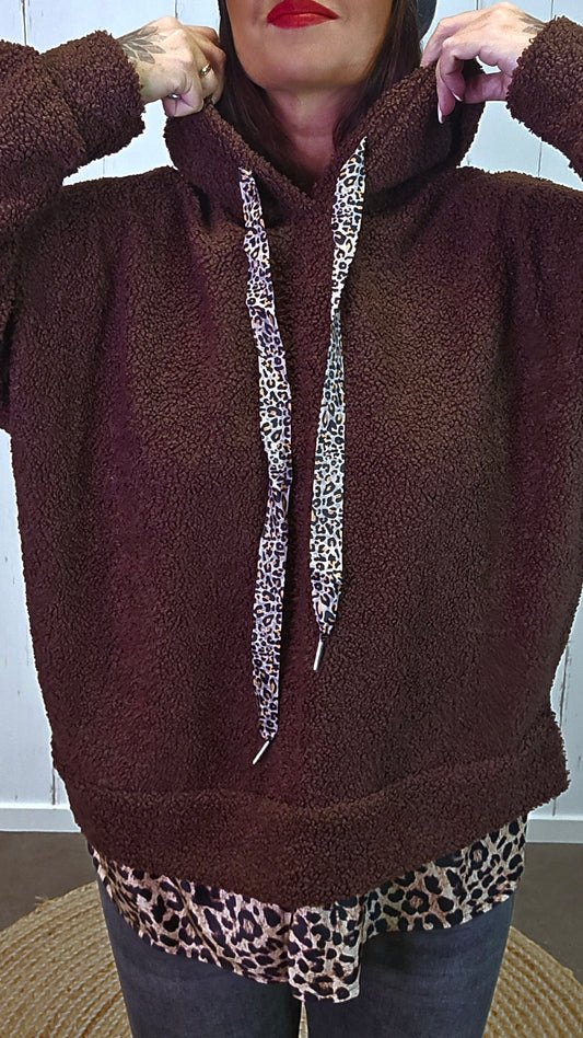 UtsolgtMoa teddy hettegenser brun