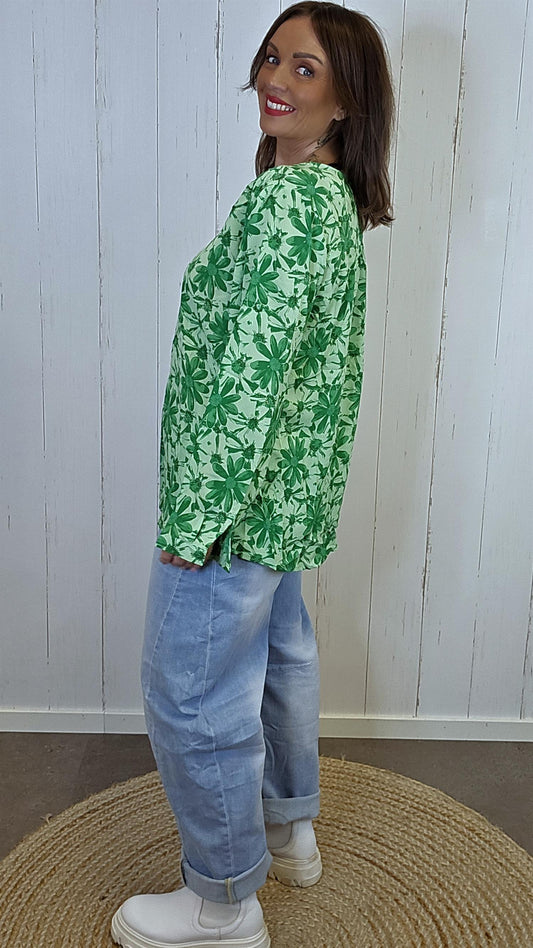 Elise blomsterbluse lys grønn