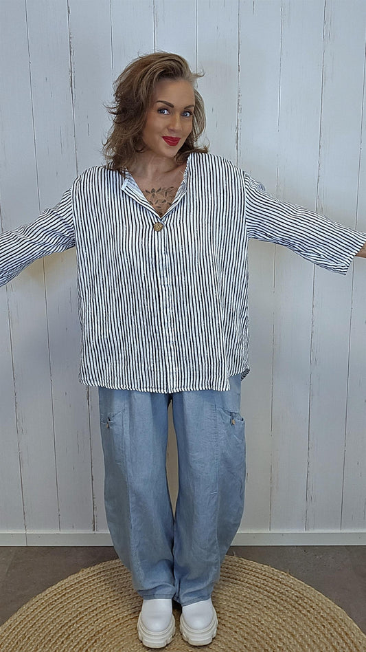 Alva bluse med striper hvit