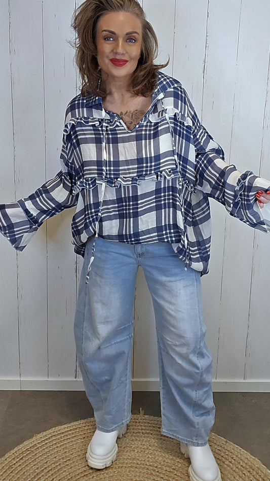 Veronika bluse med ruter navy