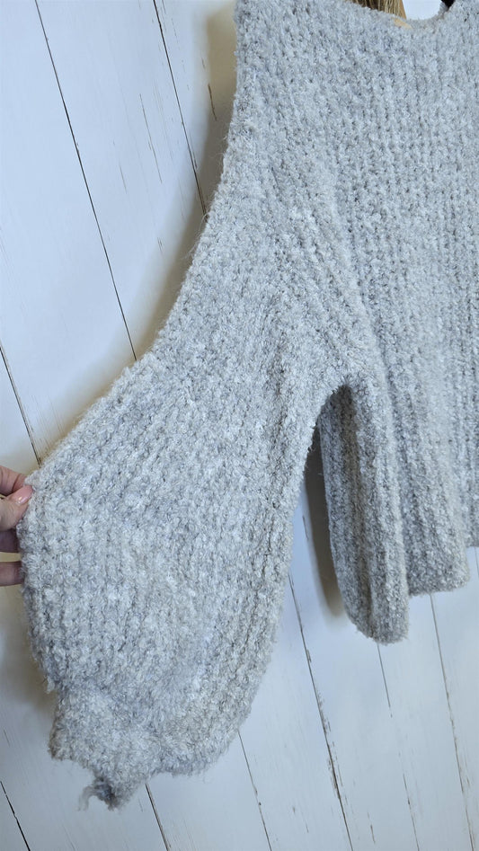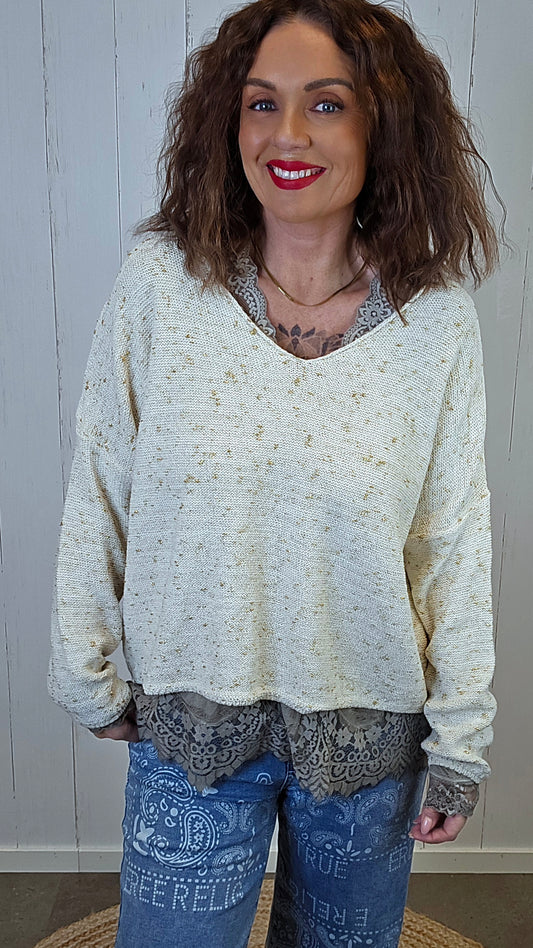 Rosita strikkegenser med tweed-detaljer lys grå