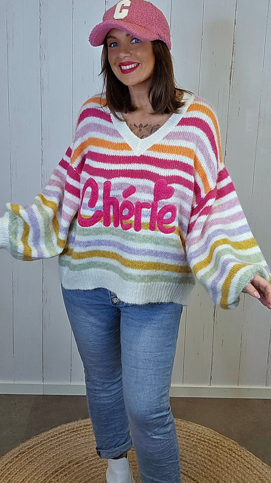 Chérie Stripet Strikkegenser