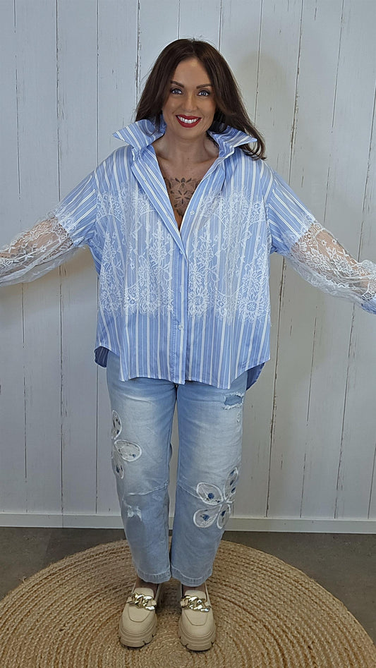 Celine Stripete Skjorte Med Blonder blå