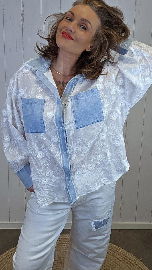 Vera blondeskjorte med denimdetaljer