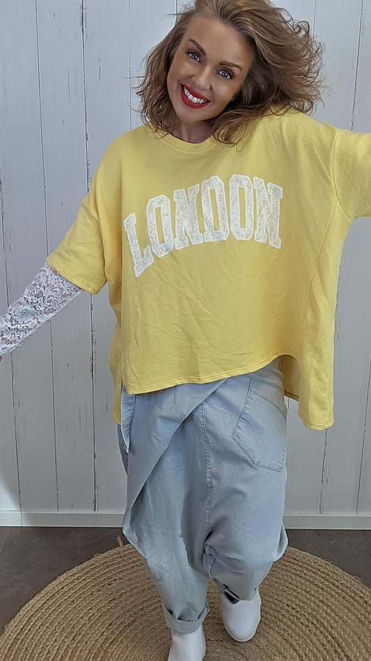 Birka oversized topp mørk gul/hvit