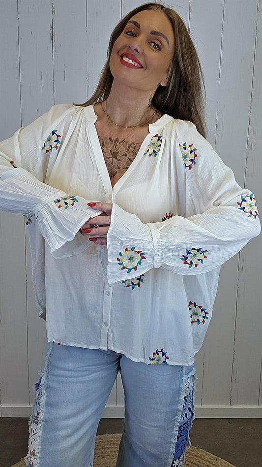 Mirella brodert bluse hvit