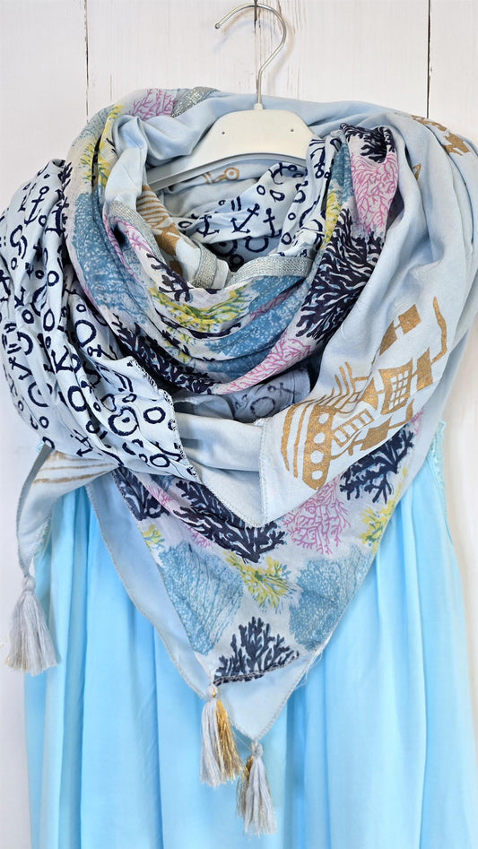 Kvadratisk skjerf blå