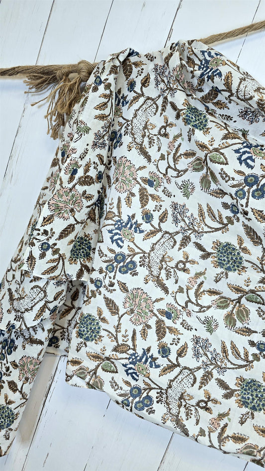 Brunt blomsterskjerf med frynser