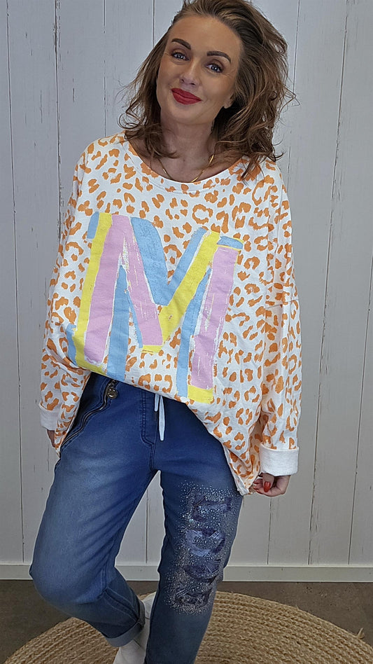 Sandra topp beige print