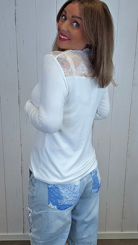 Ane ribbet topp offwhite