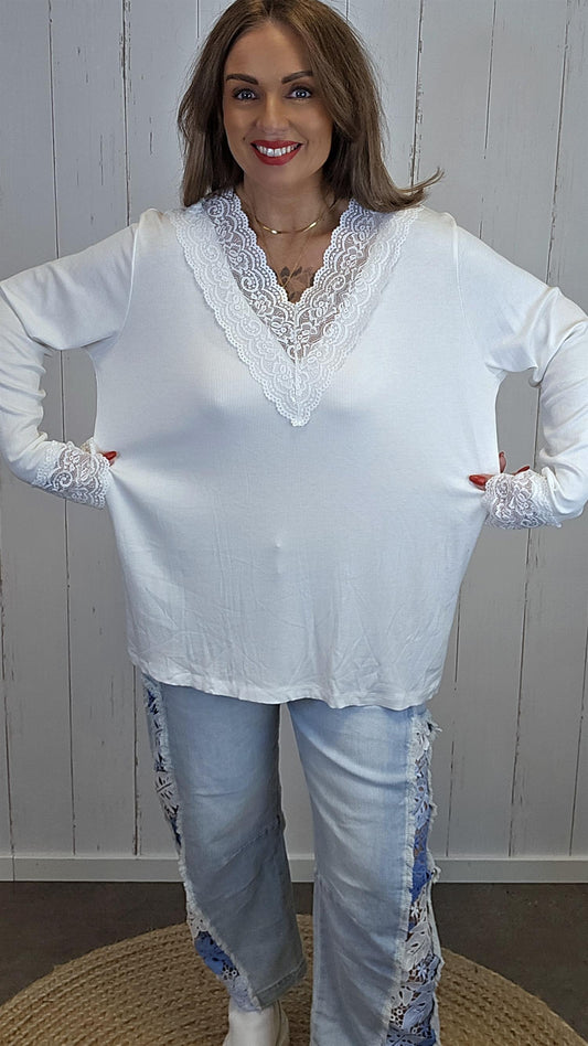 Wenche ribbet topp hvit