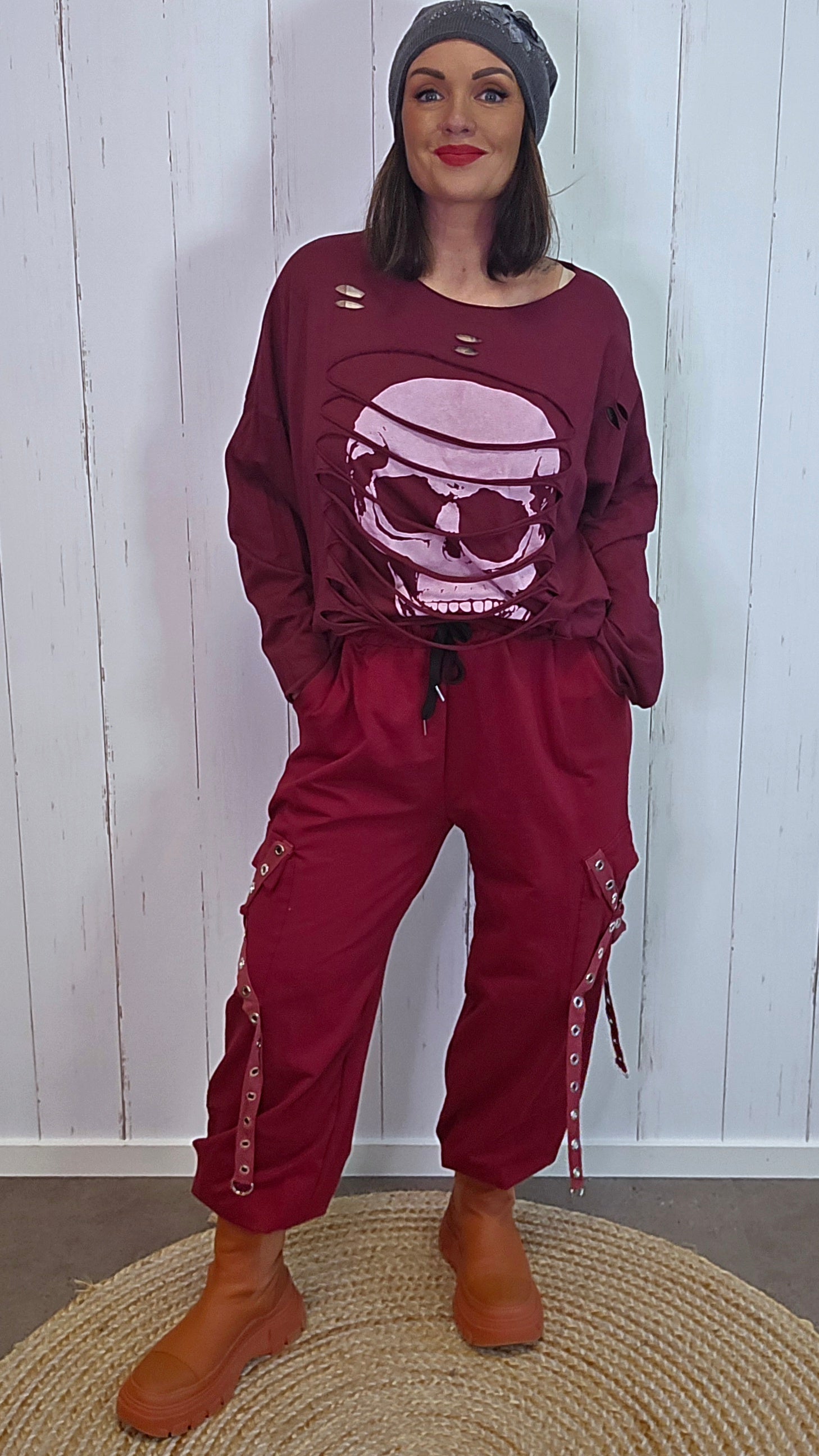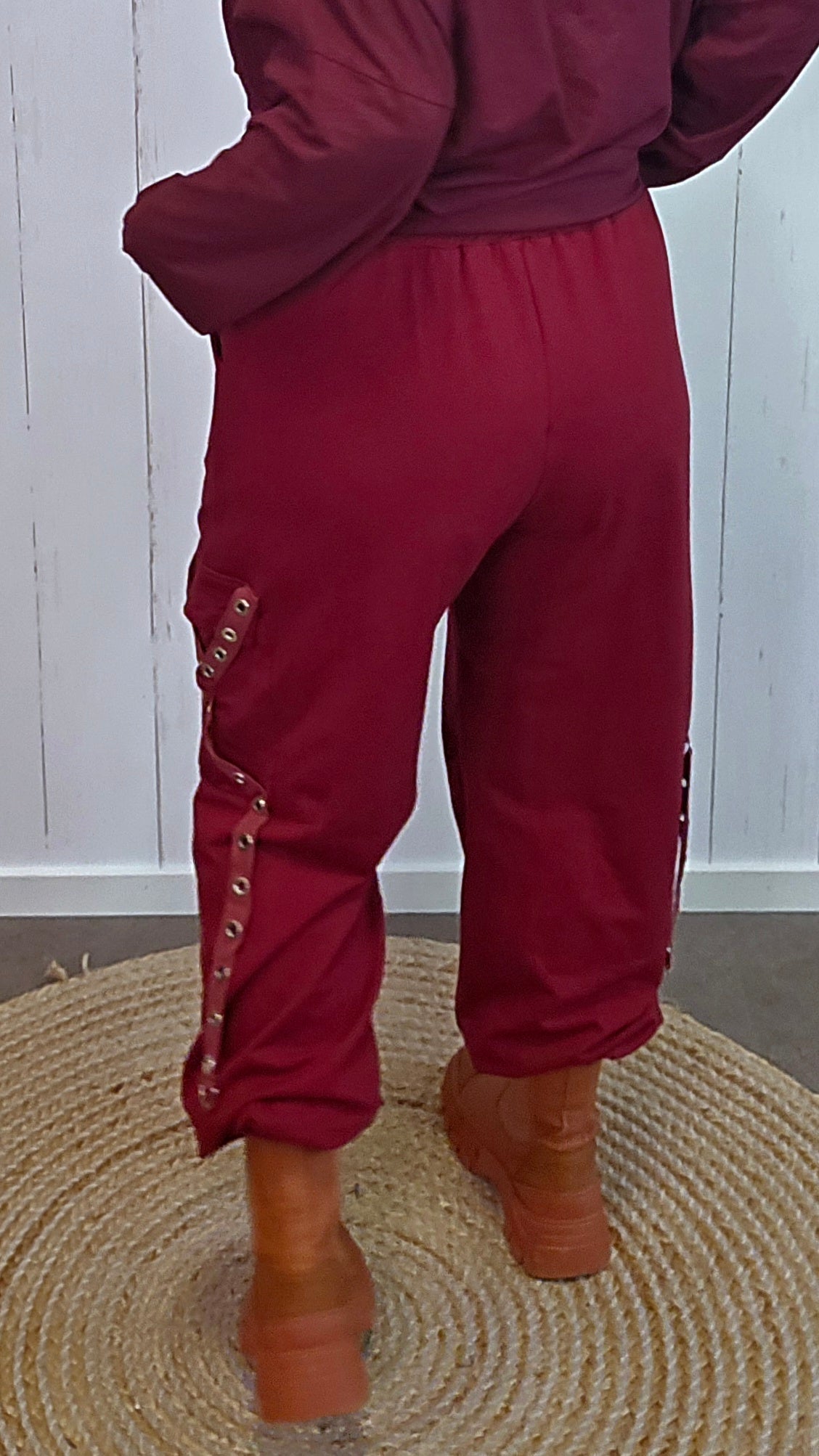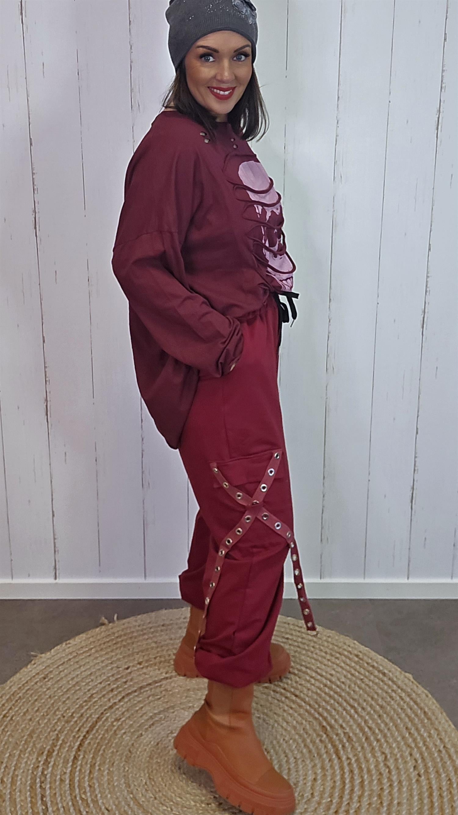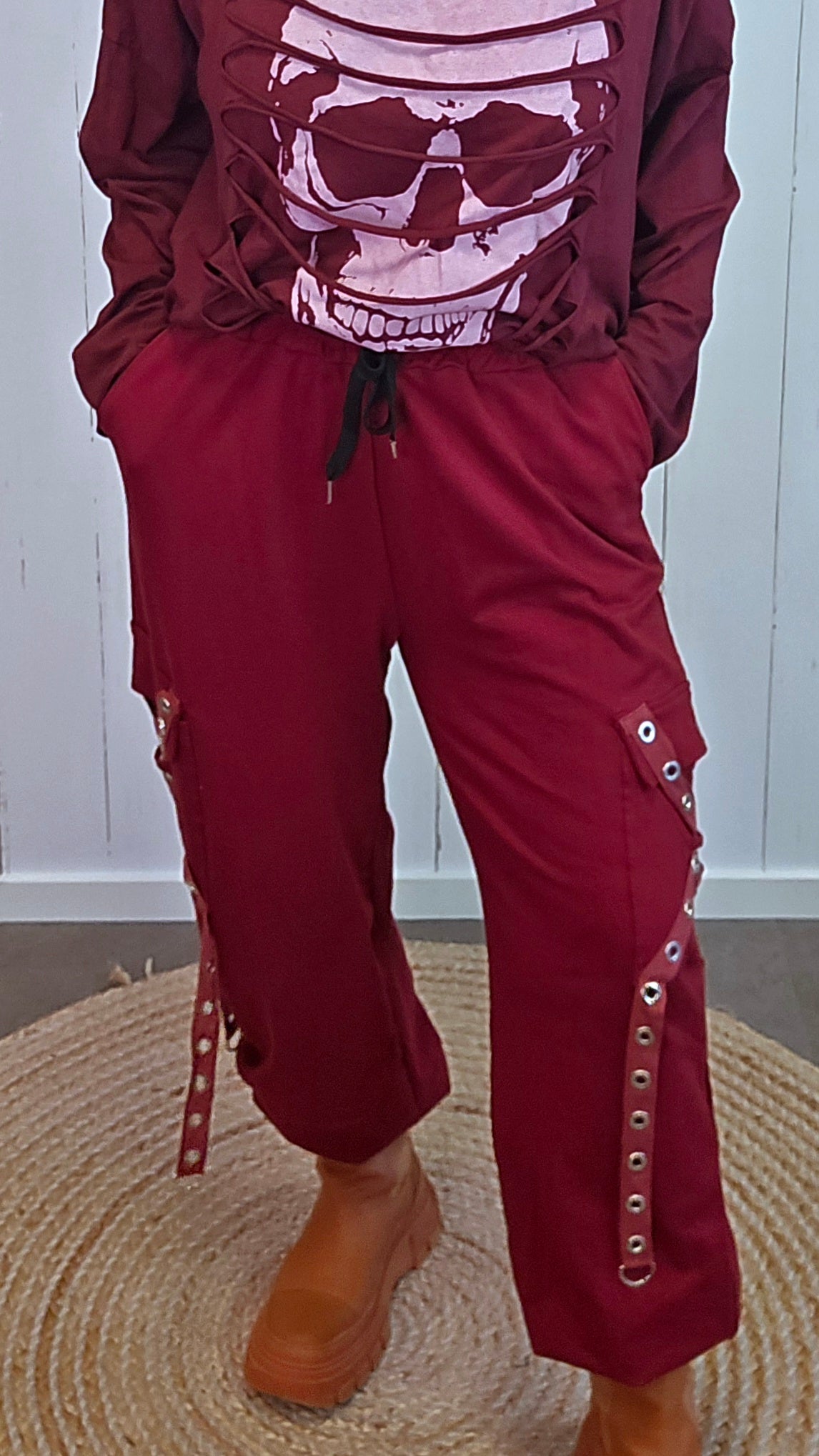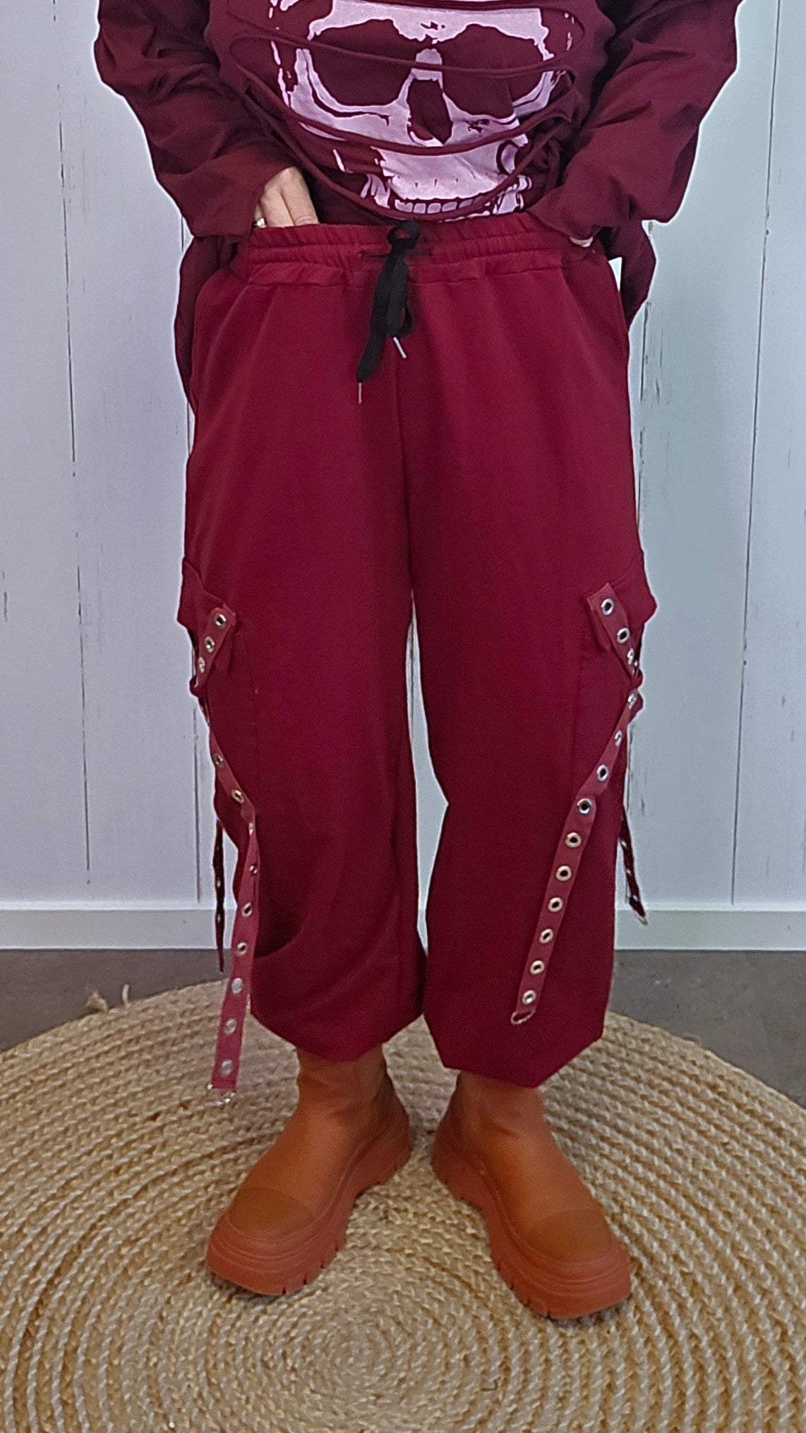 En tøff og komfortabel cargobukse med strikk og snøring i livet. Modellen har dekorative stropper med maljer på sidelommene, elastikk nederst på beina og en avslappet passform. Laget i en myk og stretchy bomullskvalitet som gir både komfort og et moderne uttrykk.