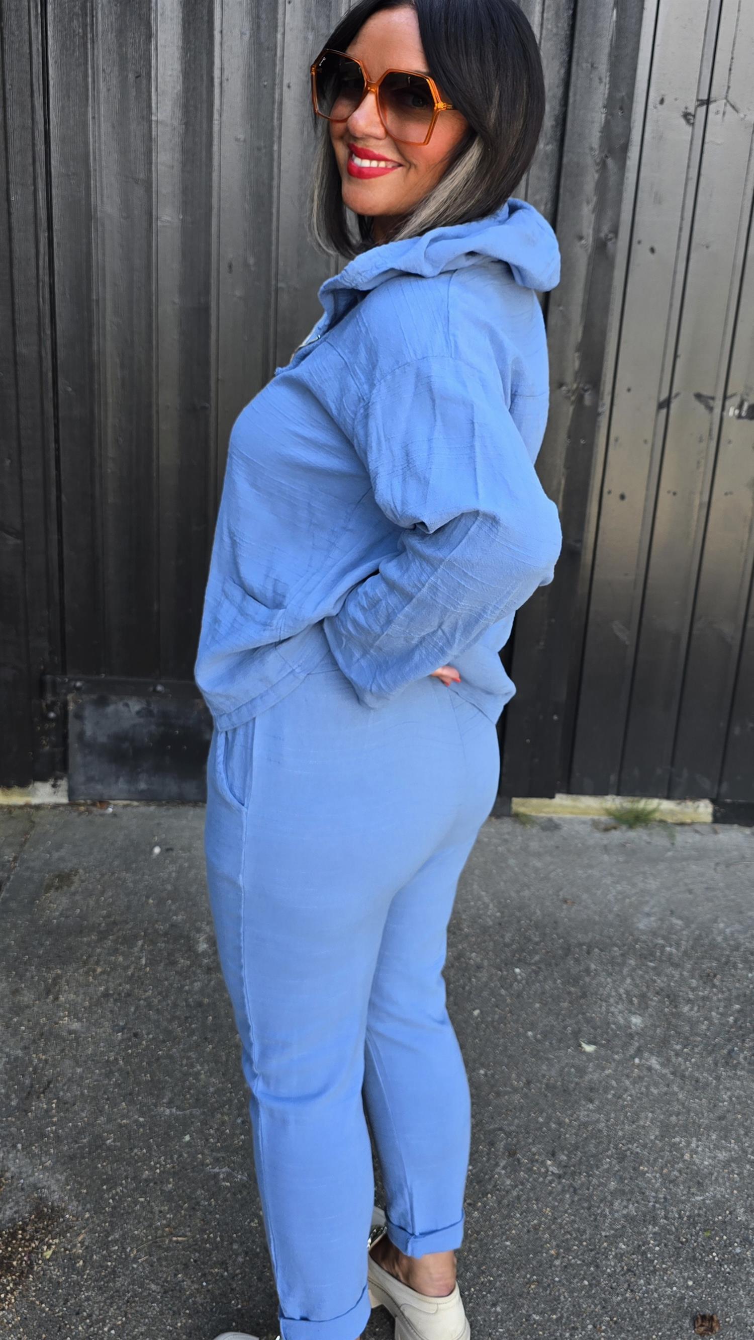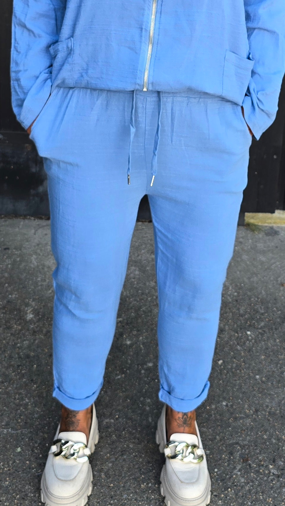 Skön byxa i vävd bomullskvalitet. Lommer I sidan. Strikk och snöring I midjan. Ingen stretch.