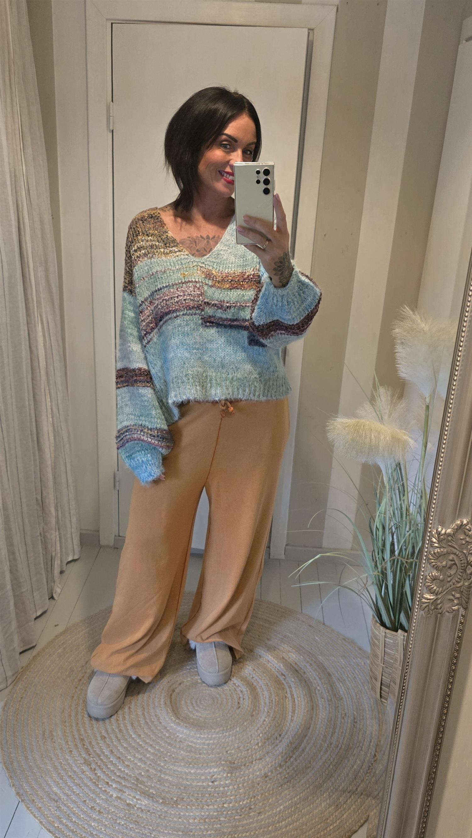 Vid skön byxa med extra vida ben. Strikk och snöring I midjan. Lommer I sidan. Mjuk å skön på.