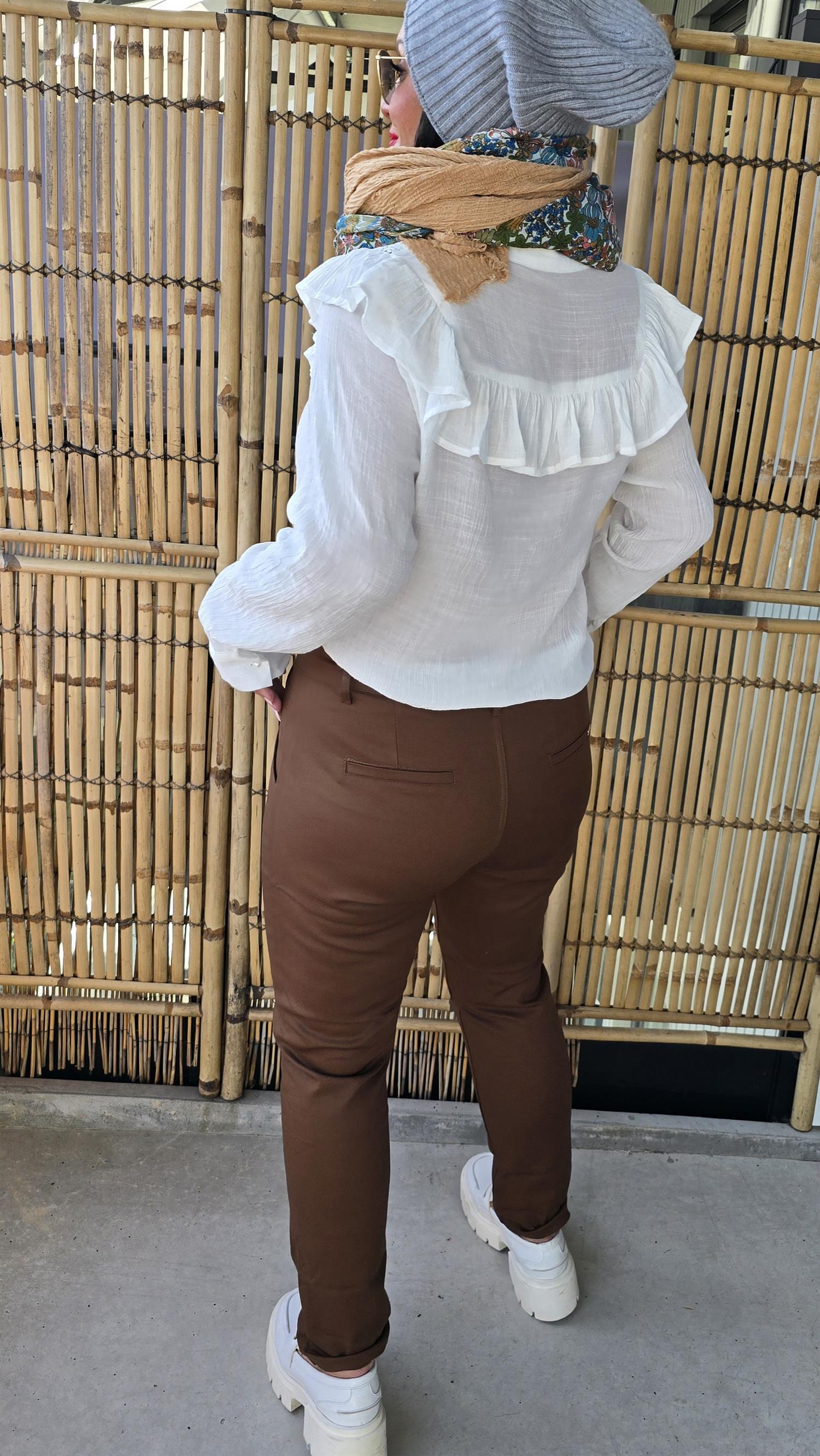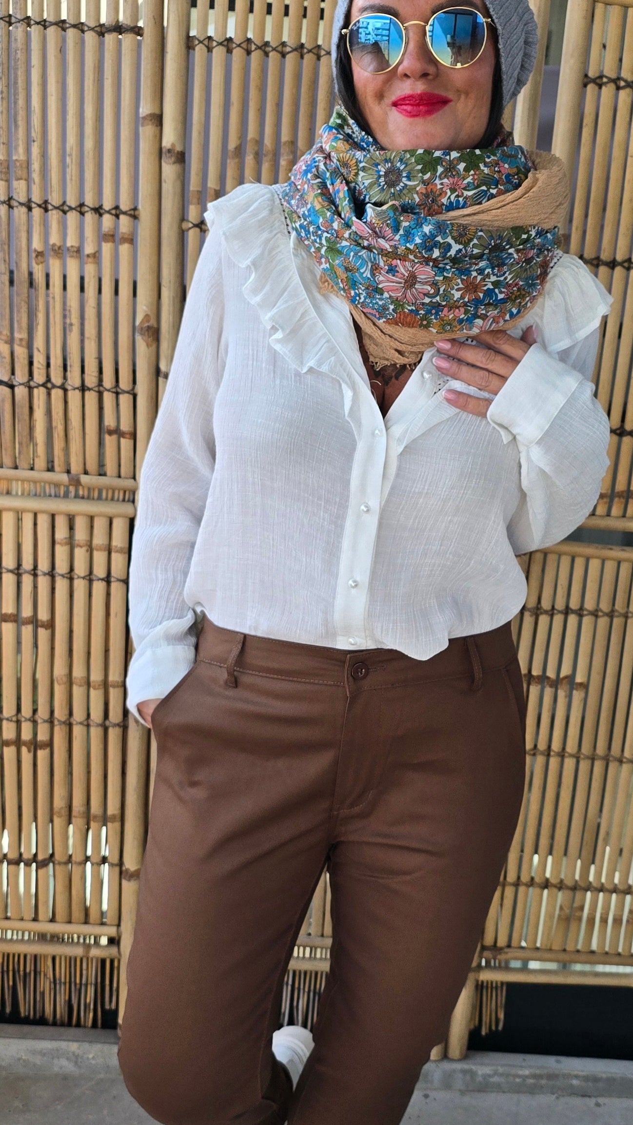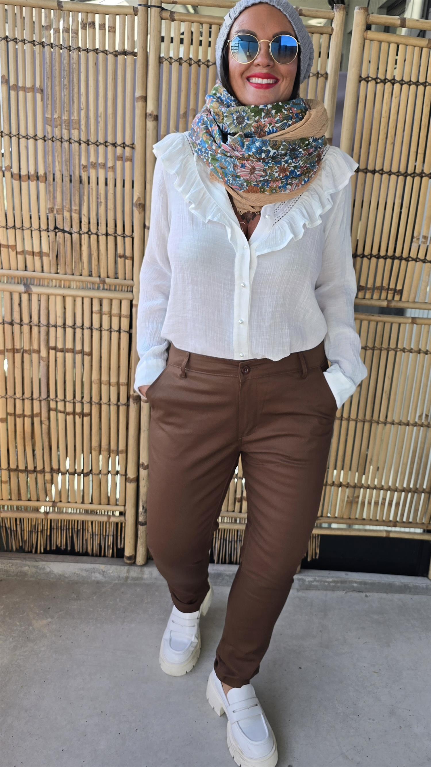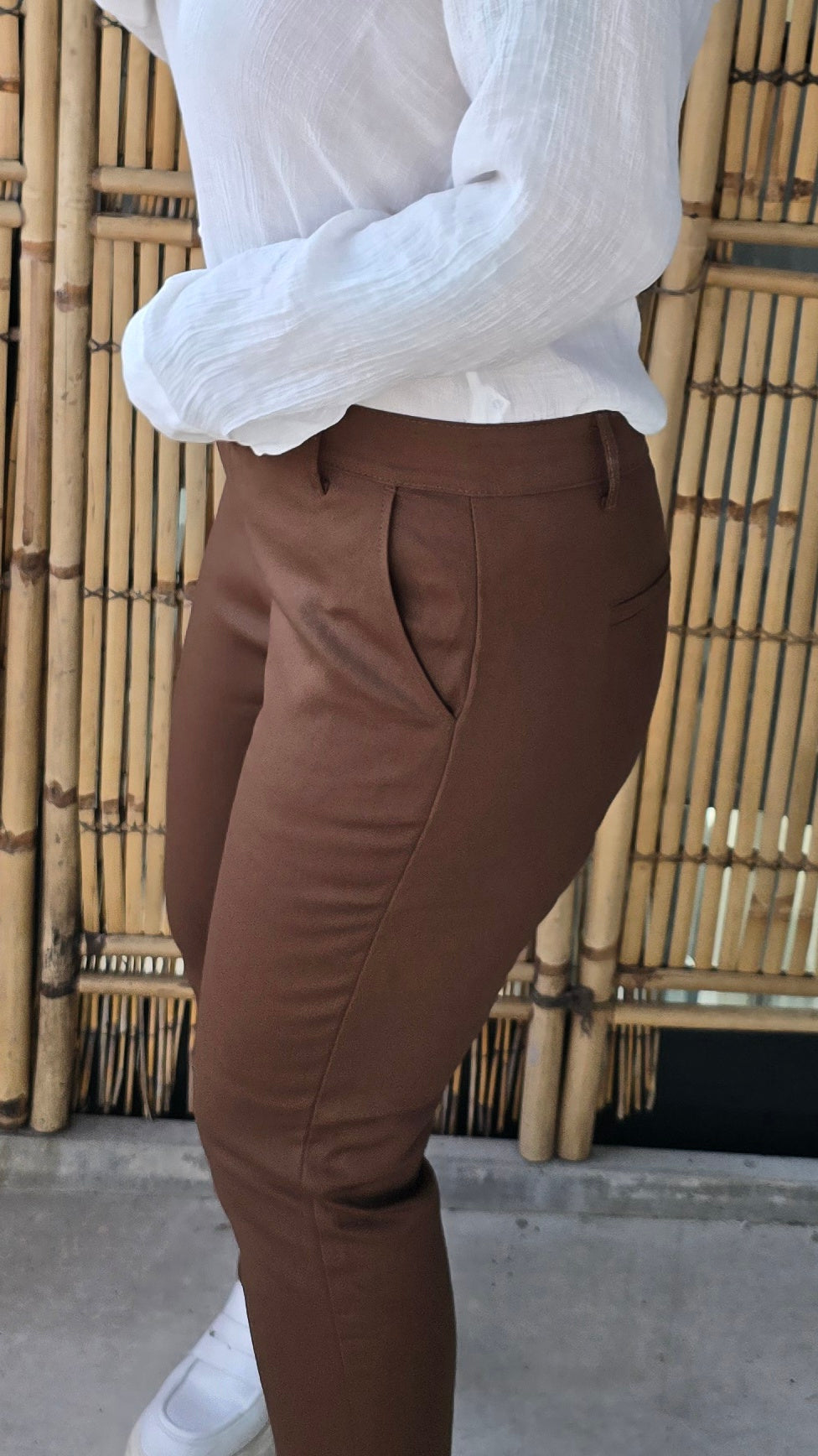 Snygg byxa med lommer I sidan. Fast matrial med litt stretch. Glattare på översidan. Slimmad I benen. Liten I str så gå upp en size.