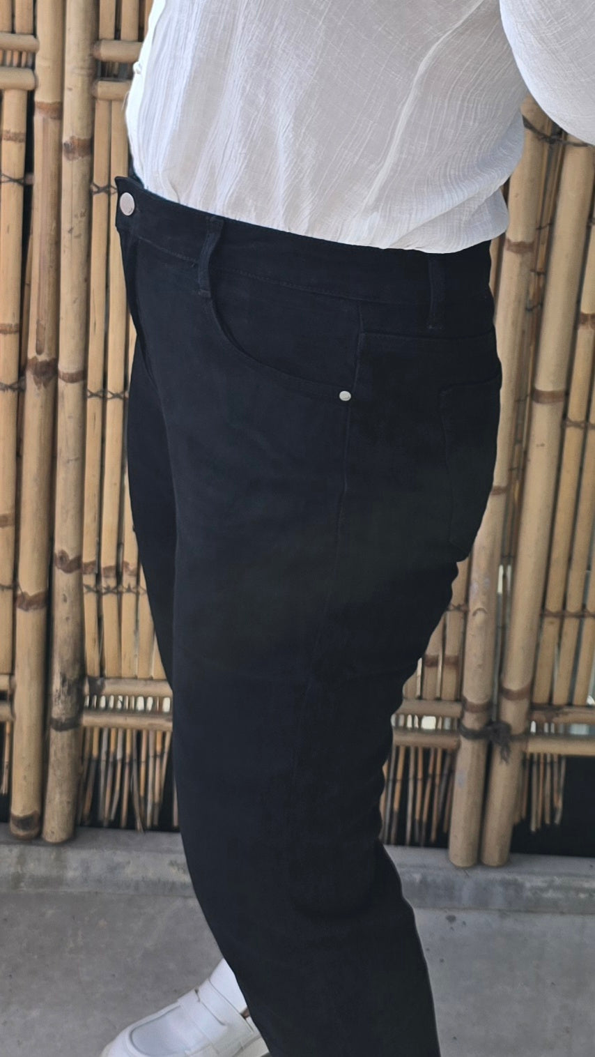 Enkel snygg byxa I mjuk kvalitet. Översidan på matrialet är litt som velour. Så skön på. Den är litt liten I str så gå upp en size. Lommer I sidan och bak. Fastare stretch kvalitet.