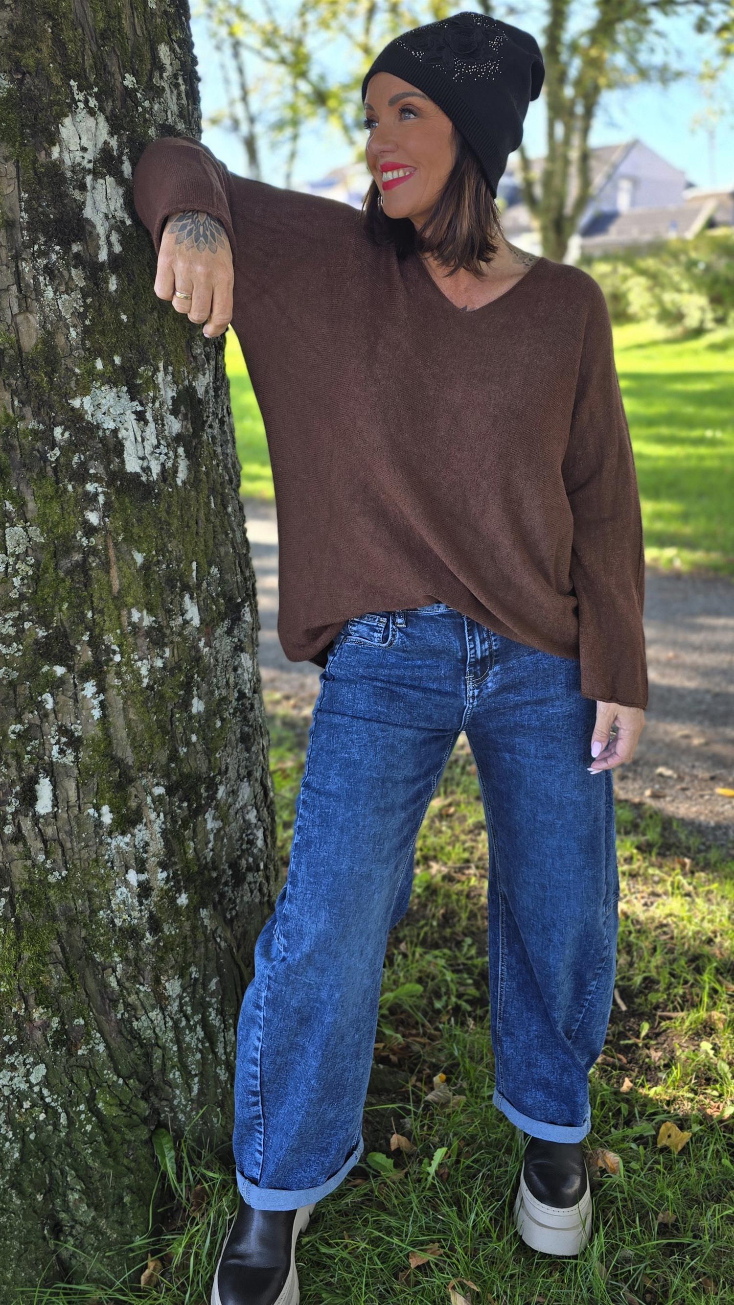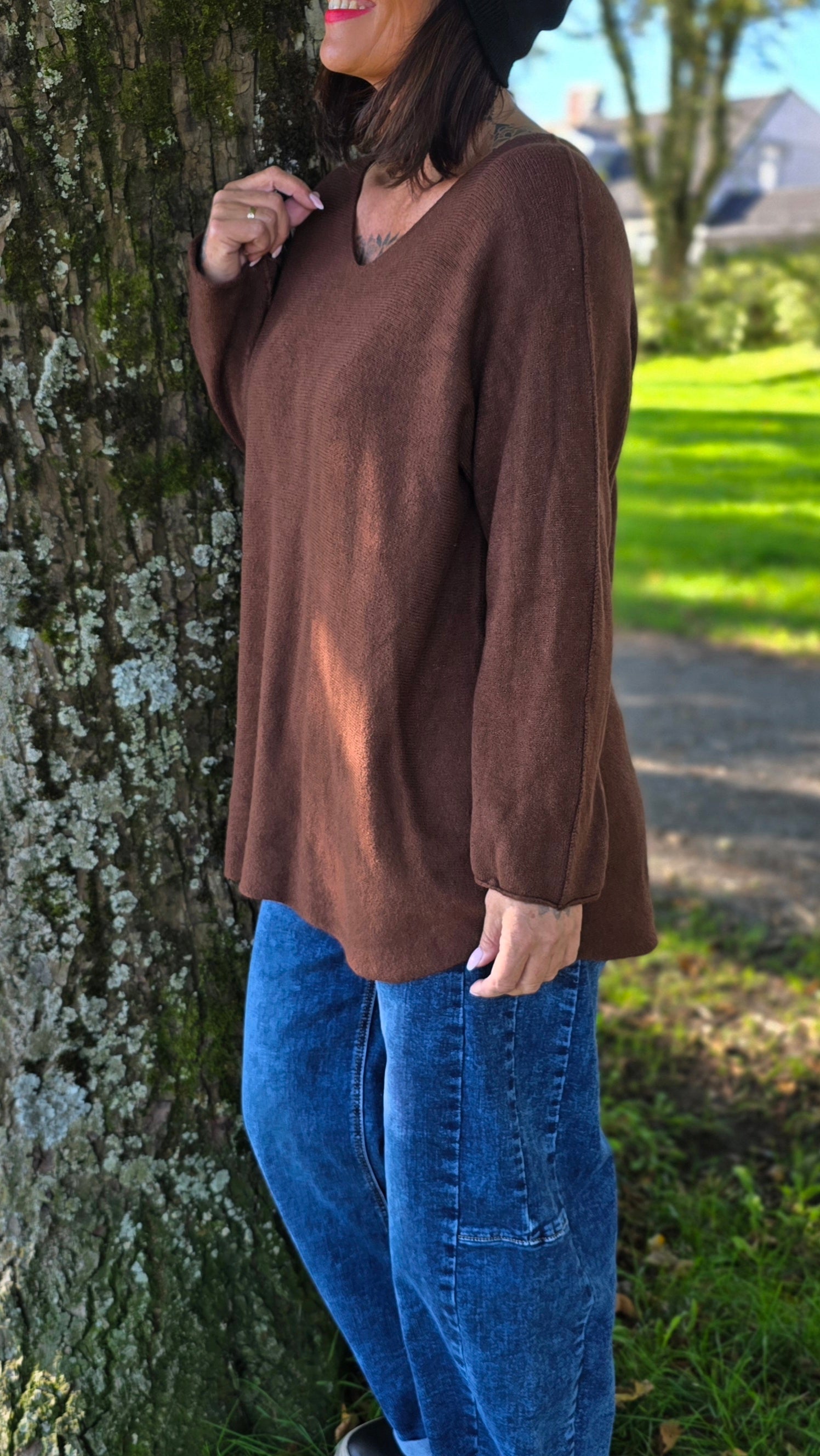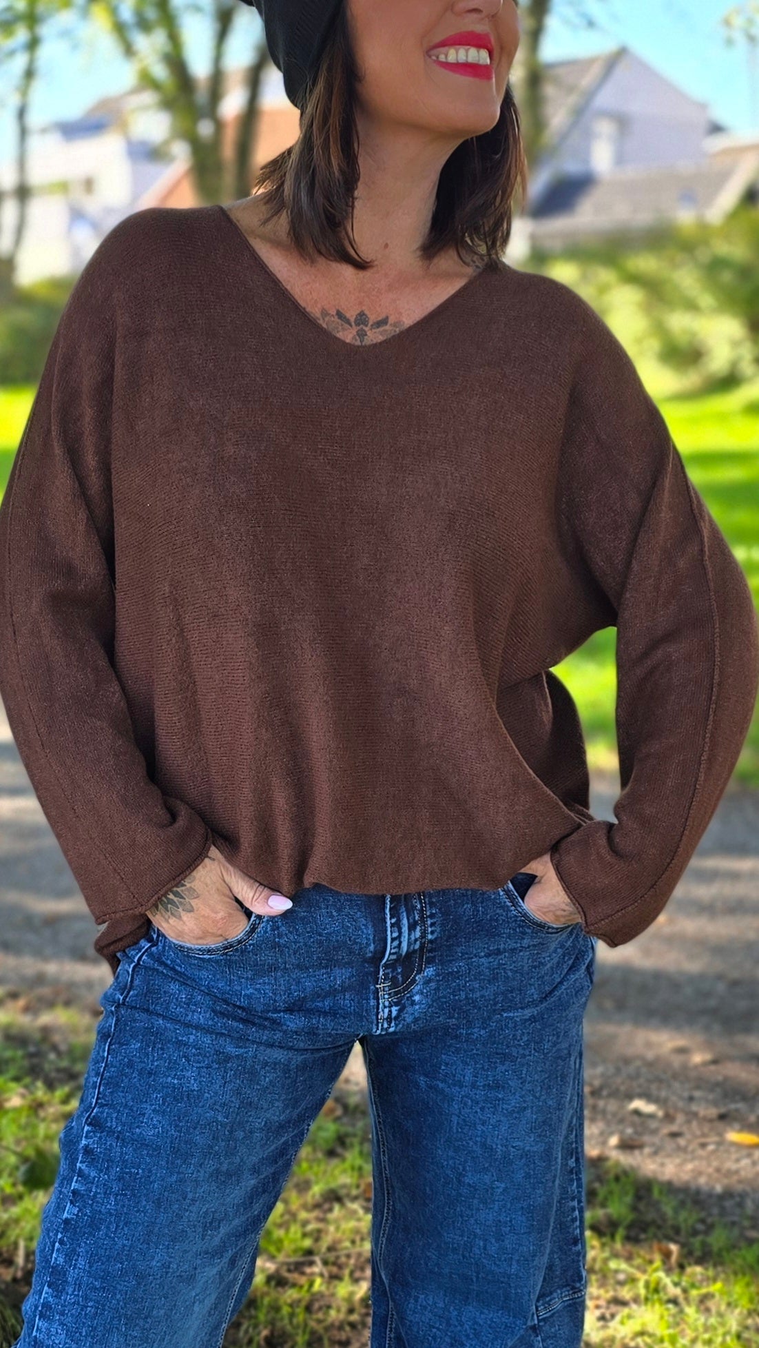 En deilig og myk topp med lange ermer og klassisk V-hals. Den har en behagelig fasong med god vidde og fall, og føles ekstra komfortabel takket være stoffkvaliteten med høy andel viskose. Et tidløst basisplagg som kan styles til både hverdags og jobb.