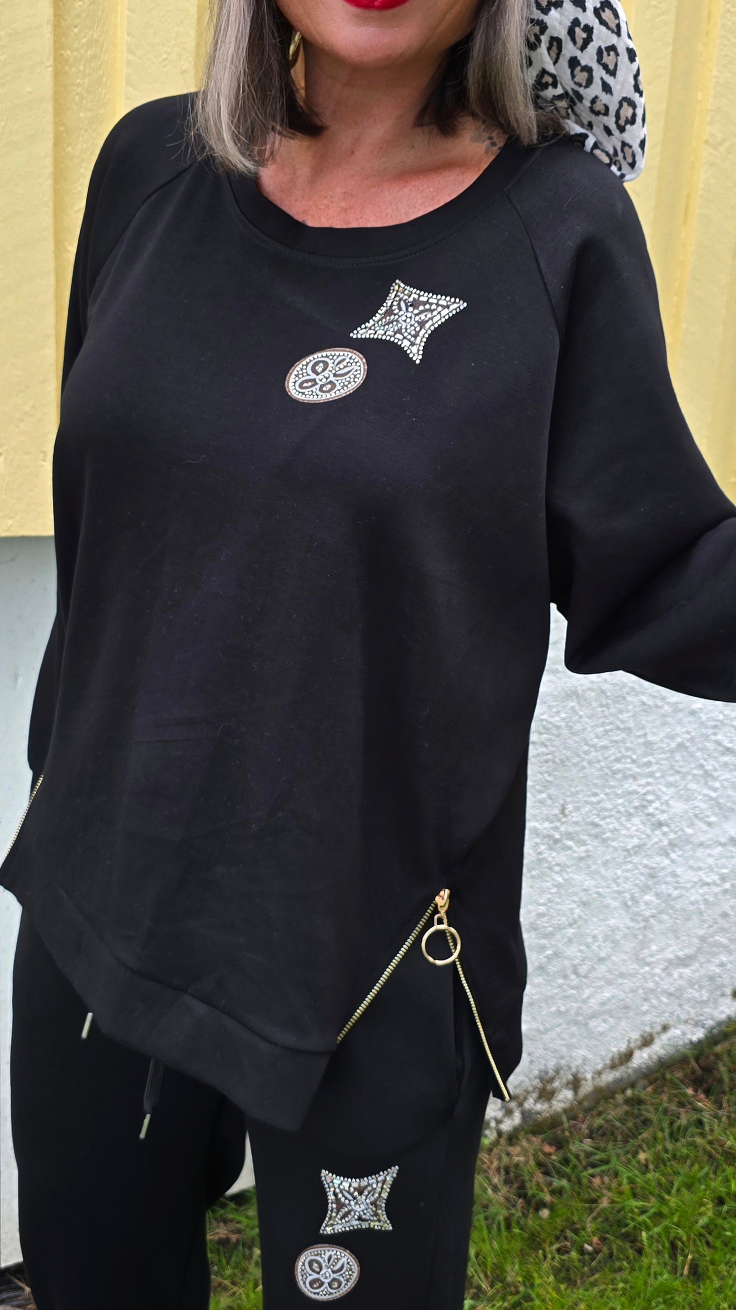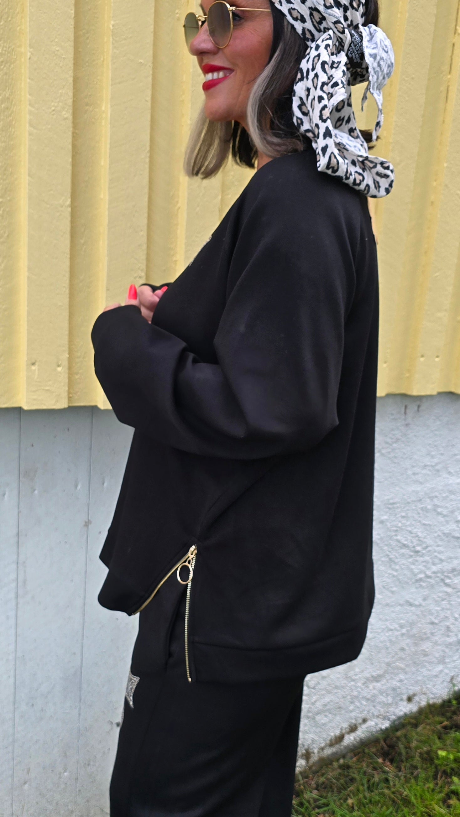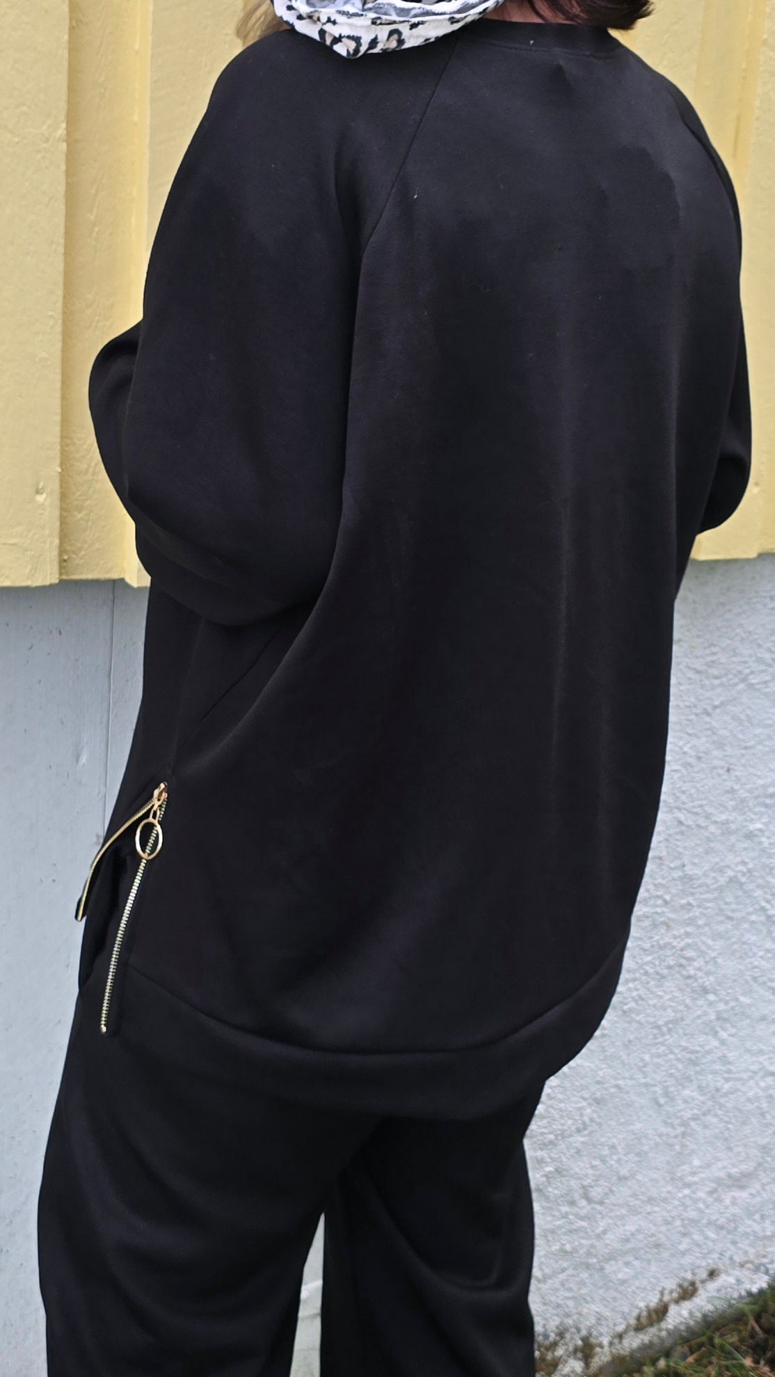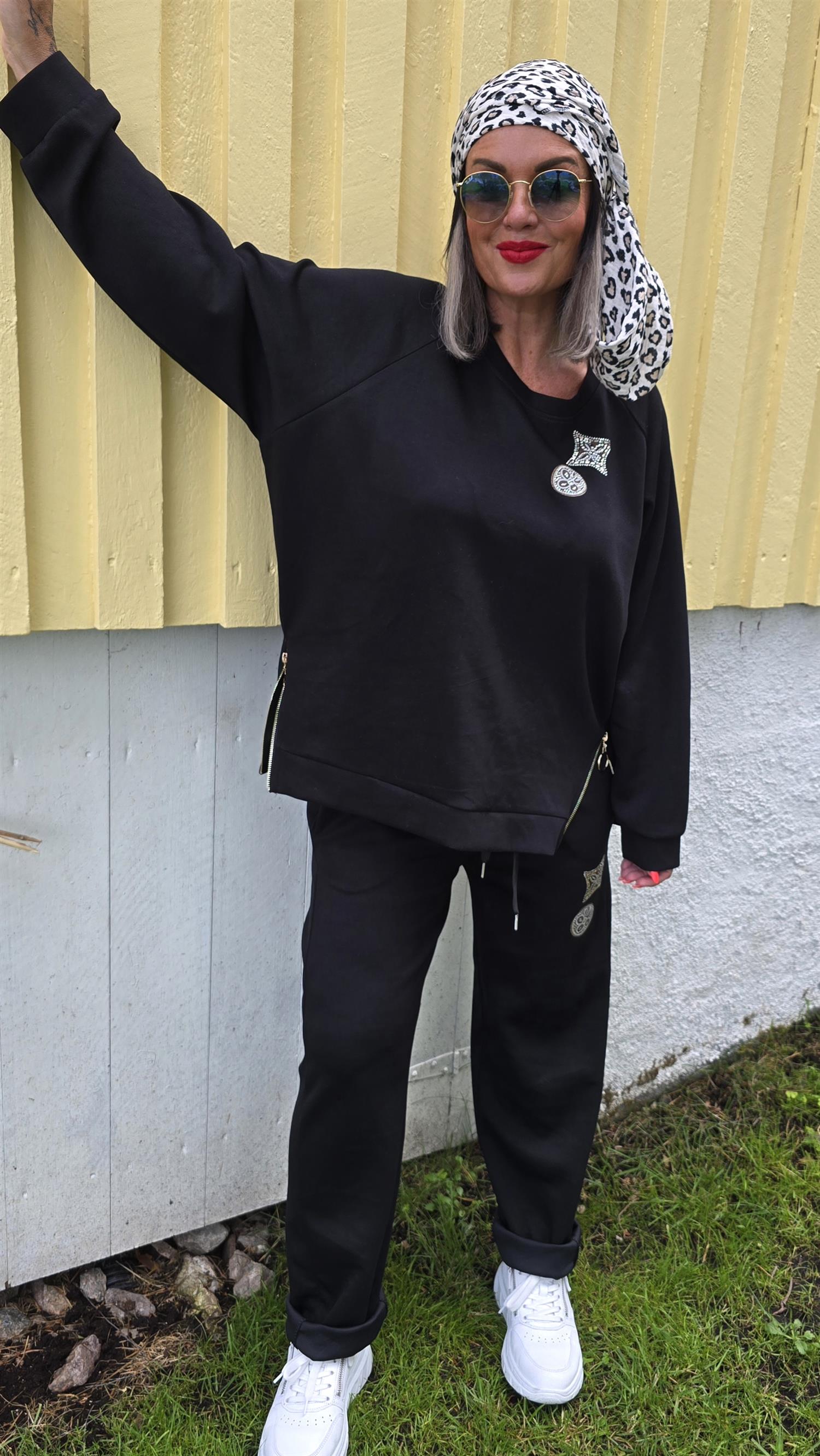 Kanon fin genser I glattare matrial. Tuffa detaljer som bling och glidelås I guld. Rund hals. Stretchig kvalitet. Baggy stil. Raglan arm.