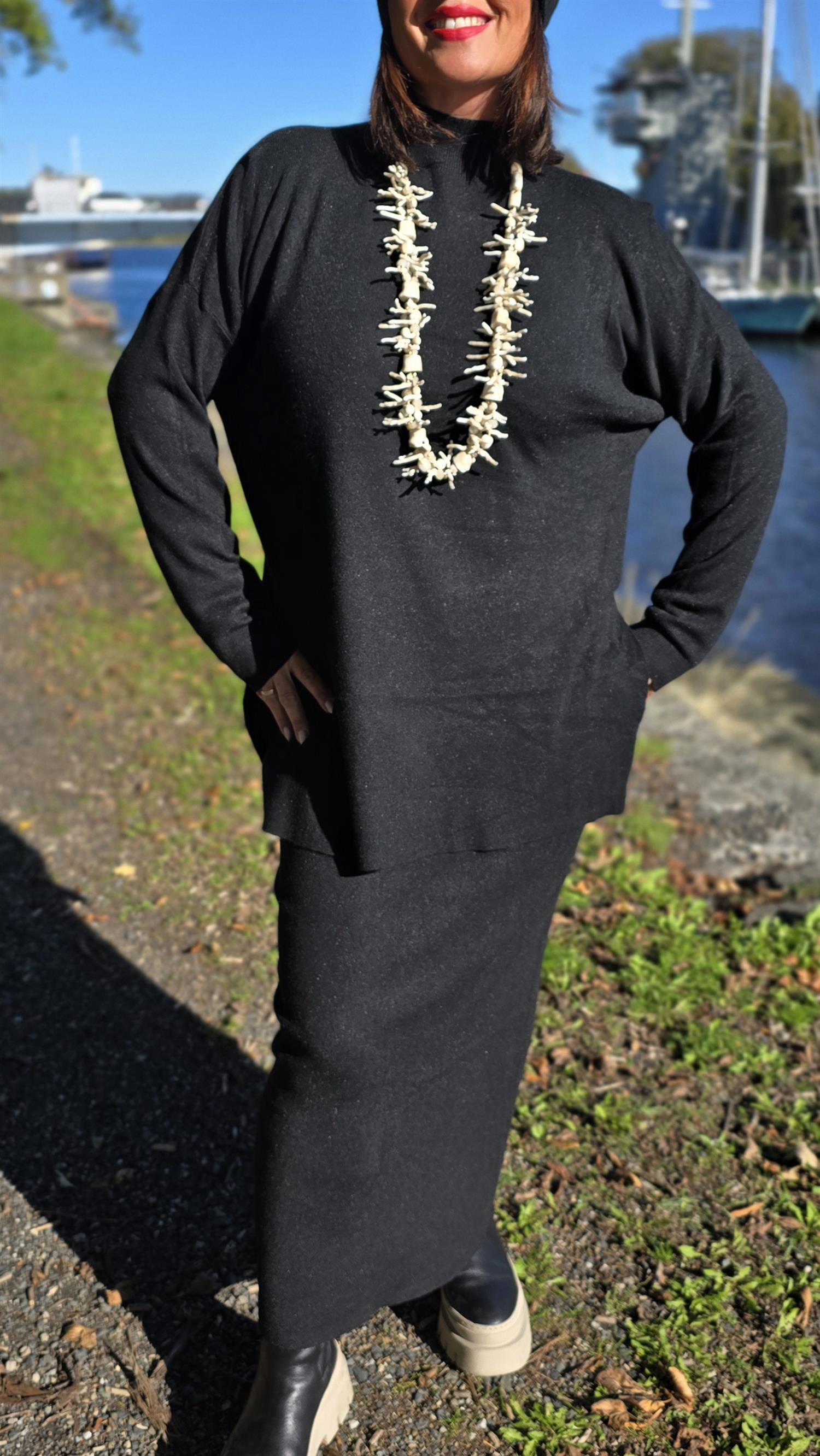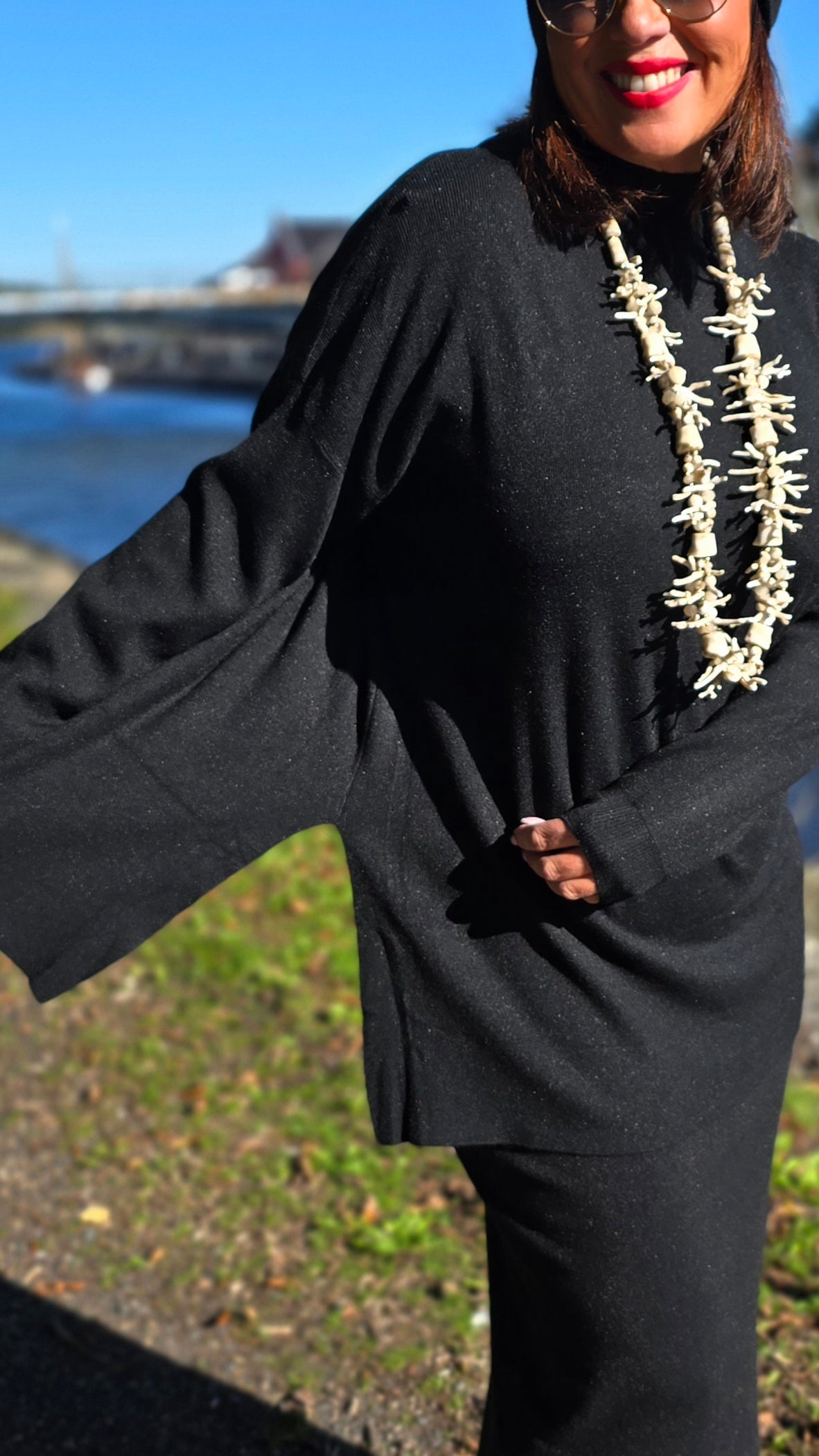 En tidløs genser i myk kvalitet med lange ermer og høy hals. Den har stretch i stoffet. En fin genser som gir et klassisk uttrykk, og små splitter nederst i sidene som gir ekstra bevegelsesfrihet og en flatterende passform.
