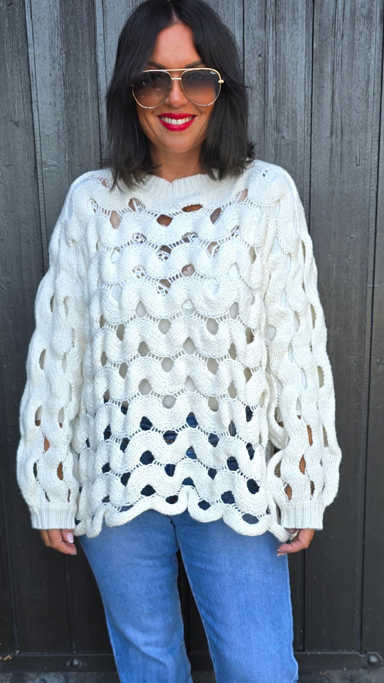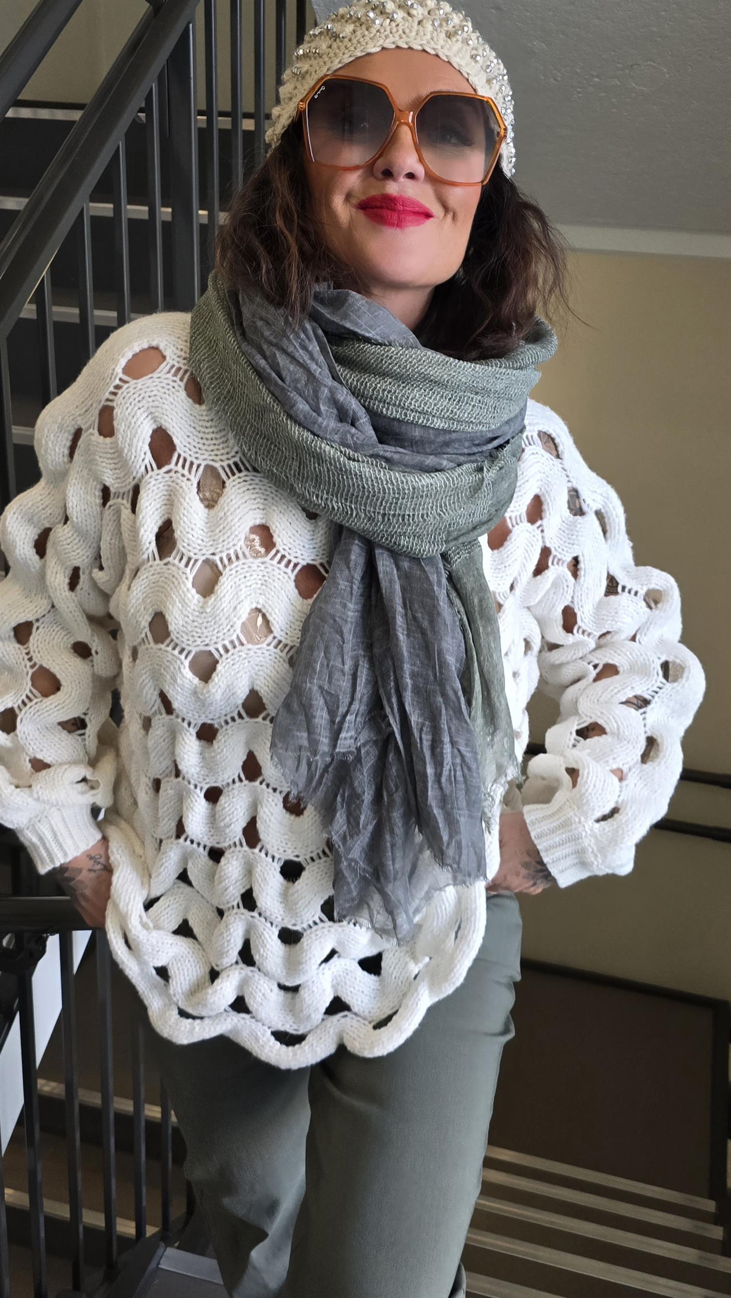 Så kul genser med hål. Rund hals. Stora puffiga armar. Super mjuk på.
