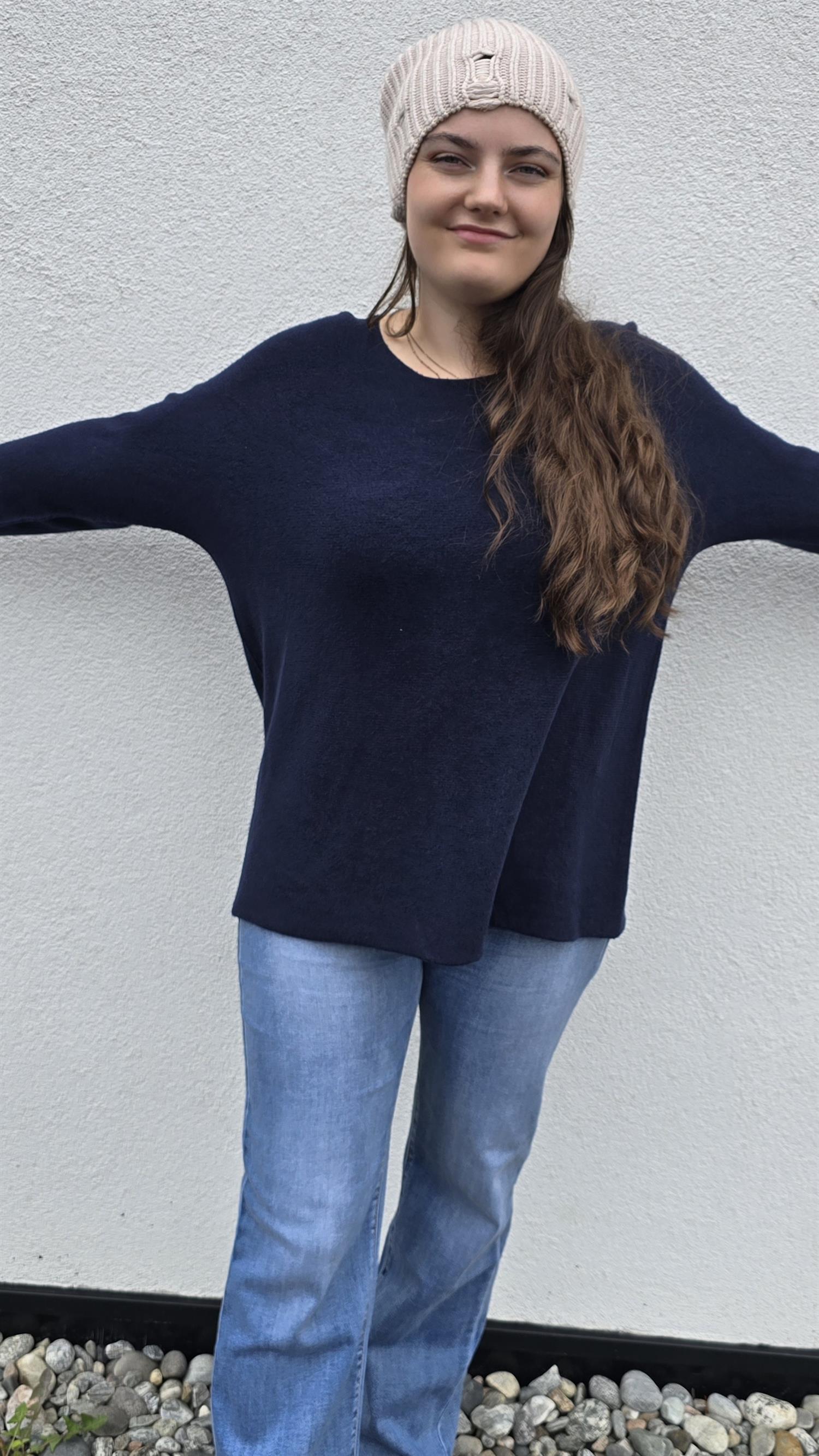 Mjuk genser med båthals. Långa armar. Otroligt fin modell. Faller så fint på.