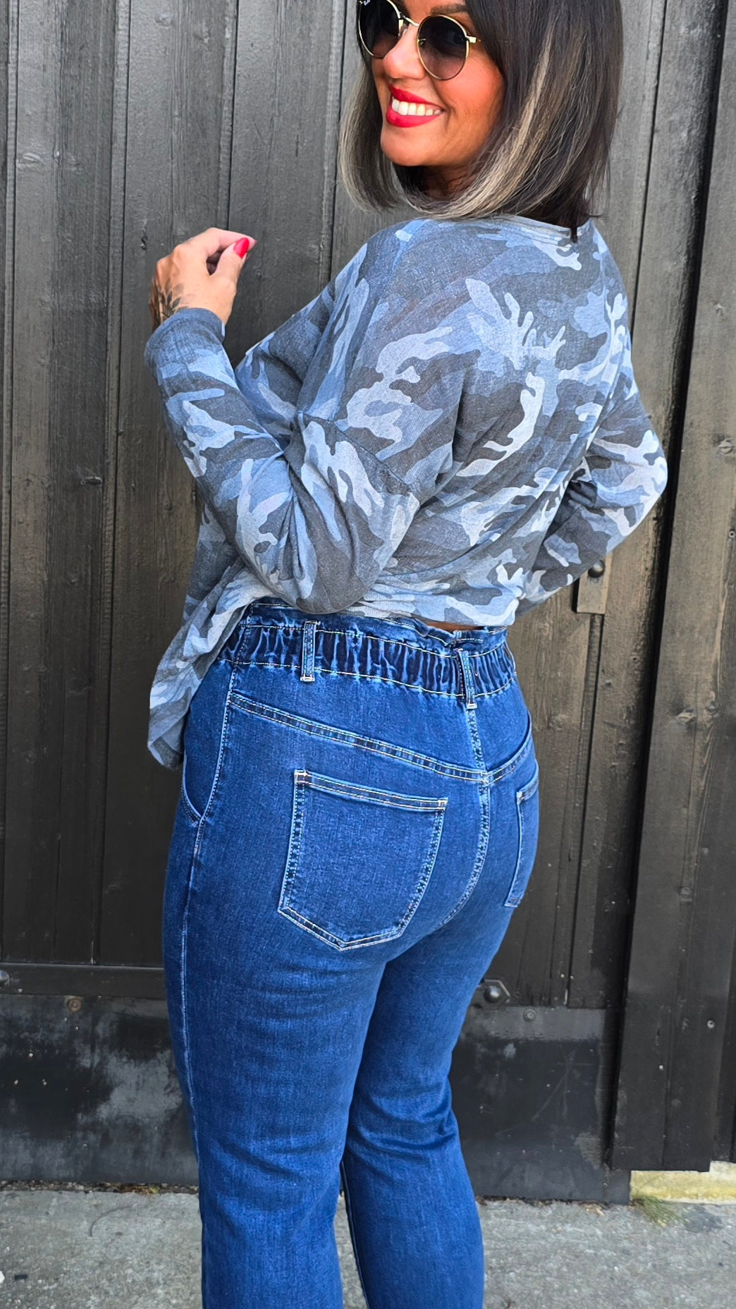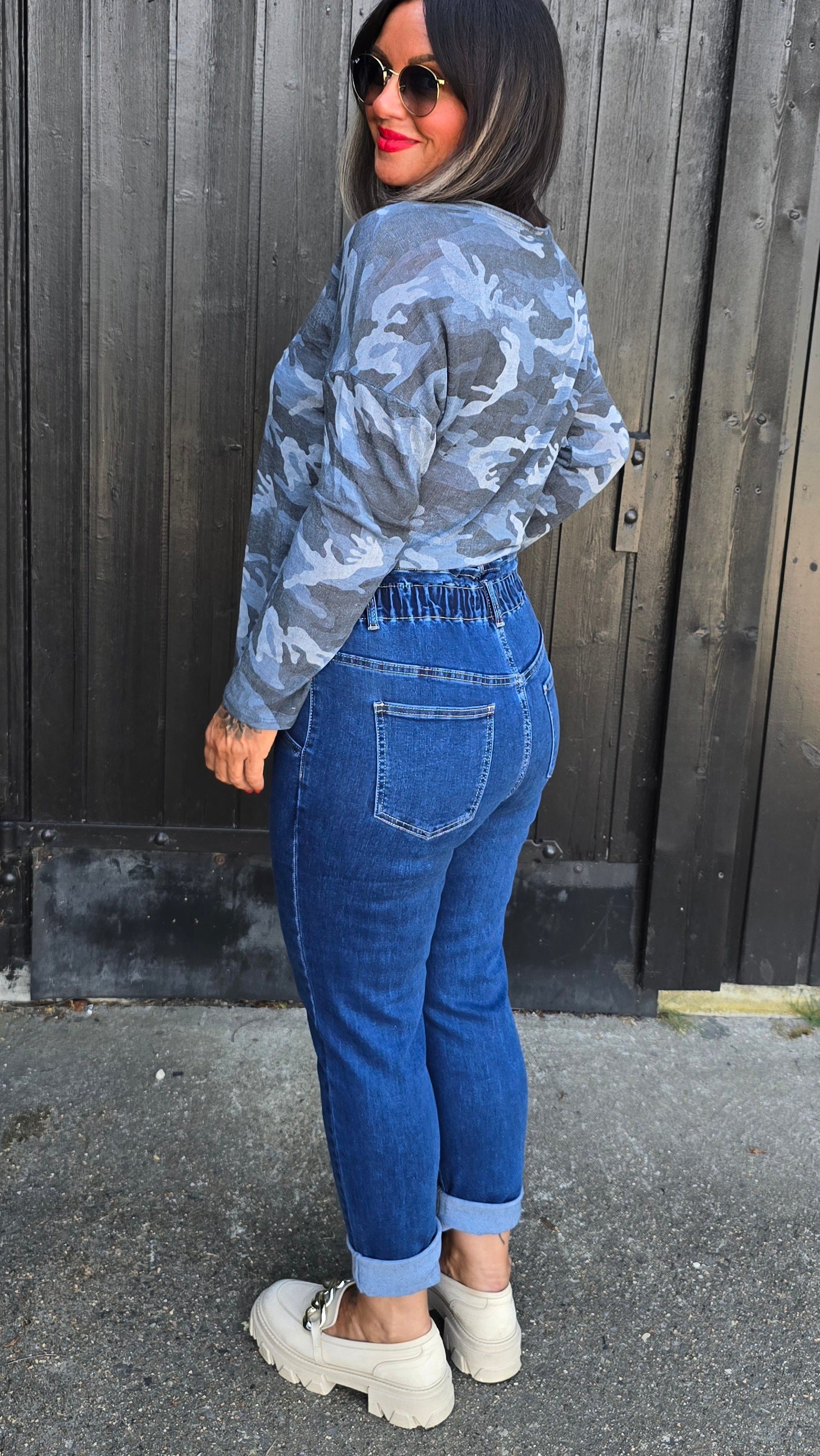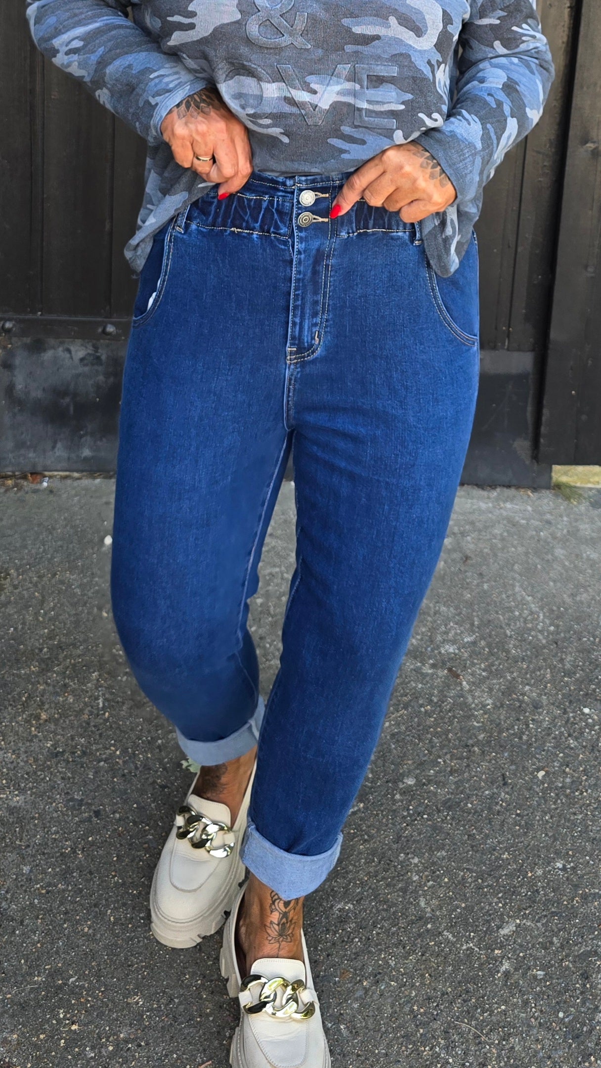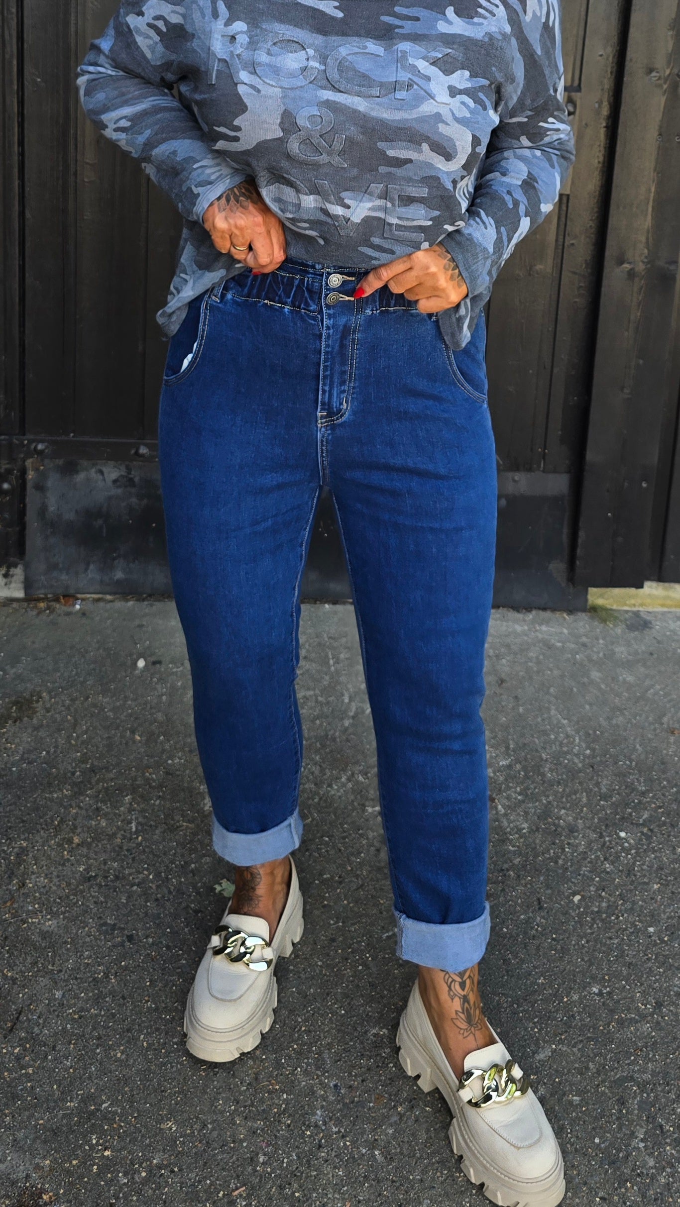 Super stretchig och skön jeans med hög midja. Strikk I midjan. Slimmad modell. Glidelås I gylfen. Lommer I sidan och bak. Normal I str.