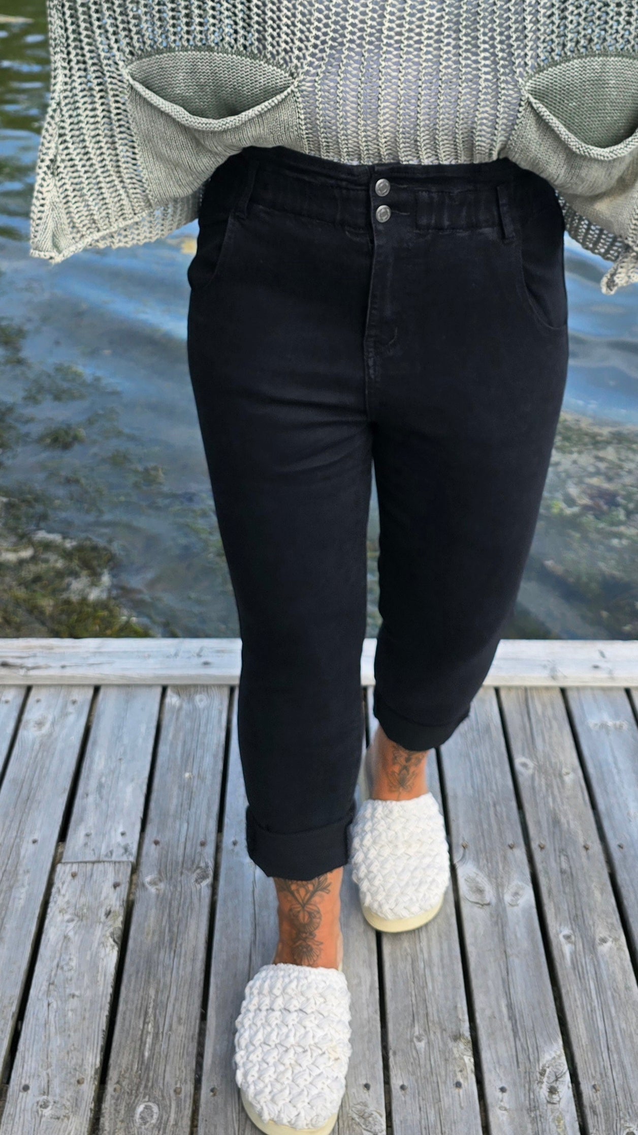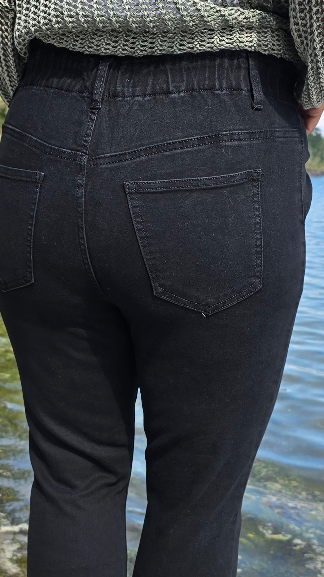 Super stretchig och skön jeans med hög midja. Strikk I midjan. Slimmad modell. Glidelås I gylfen. Lommer I sidan och bak. Normal I str.