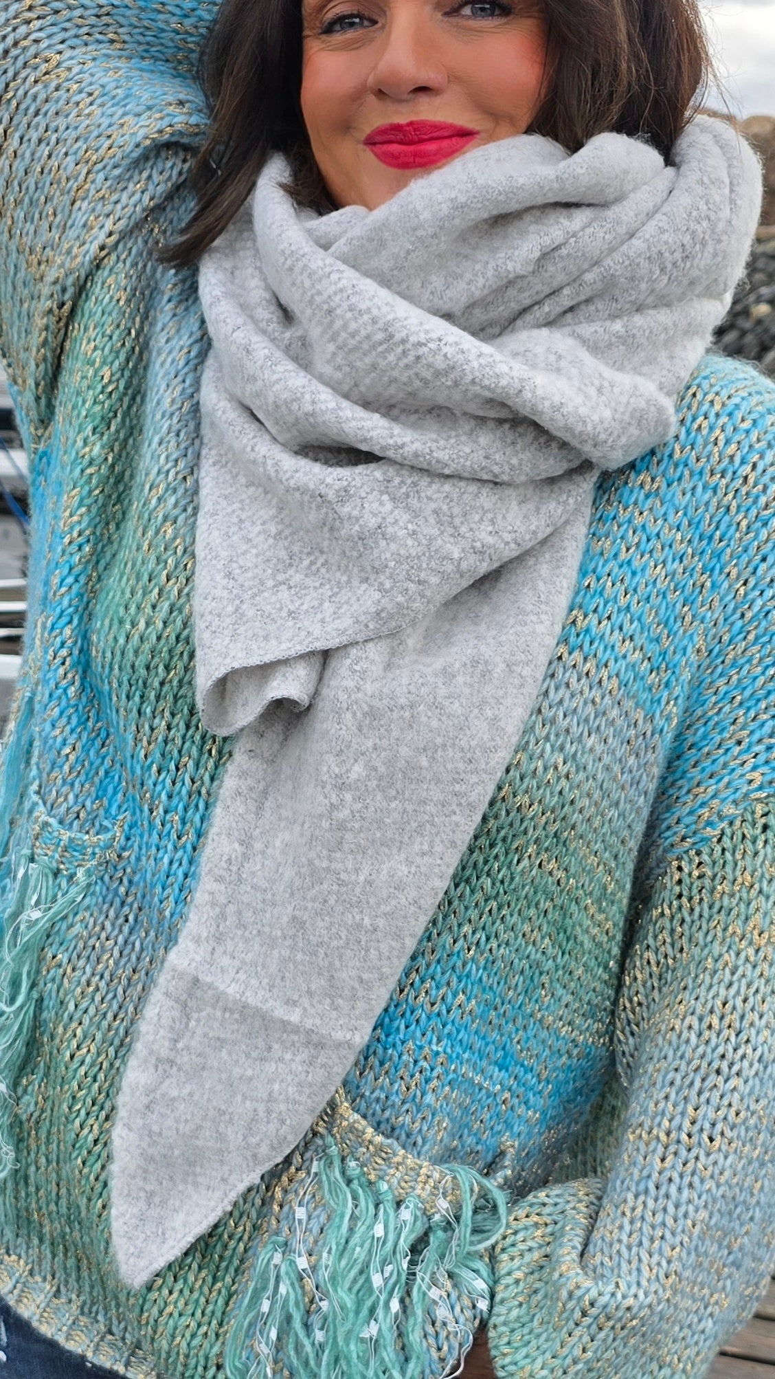 Et ekstra langt og supermykt skjerf i strikket kvalitet med fluffy overside. Skjerfet har asymmetrisk kant nederst som gir et moderne preg. Perfekt å surre flere ganger rundt halsen på kalde dager, eller bruke løst hengende som et statement-tilbehør.