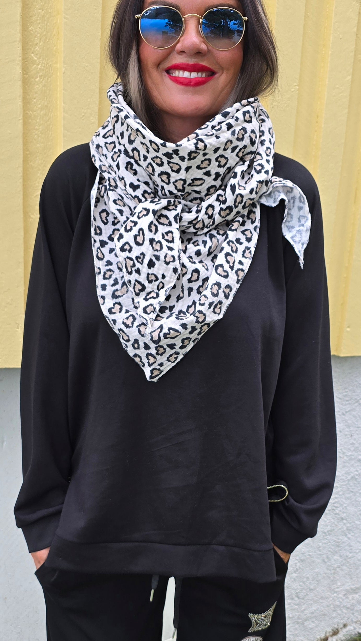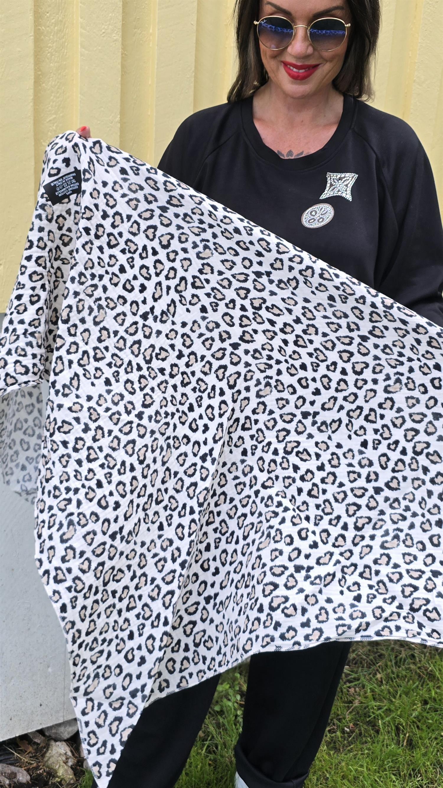 Tre kantigt tunnt bomullsscarf med leopard print.