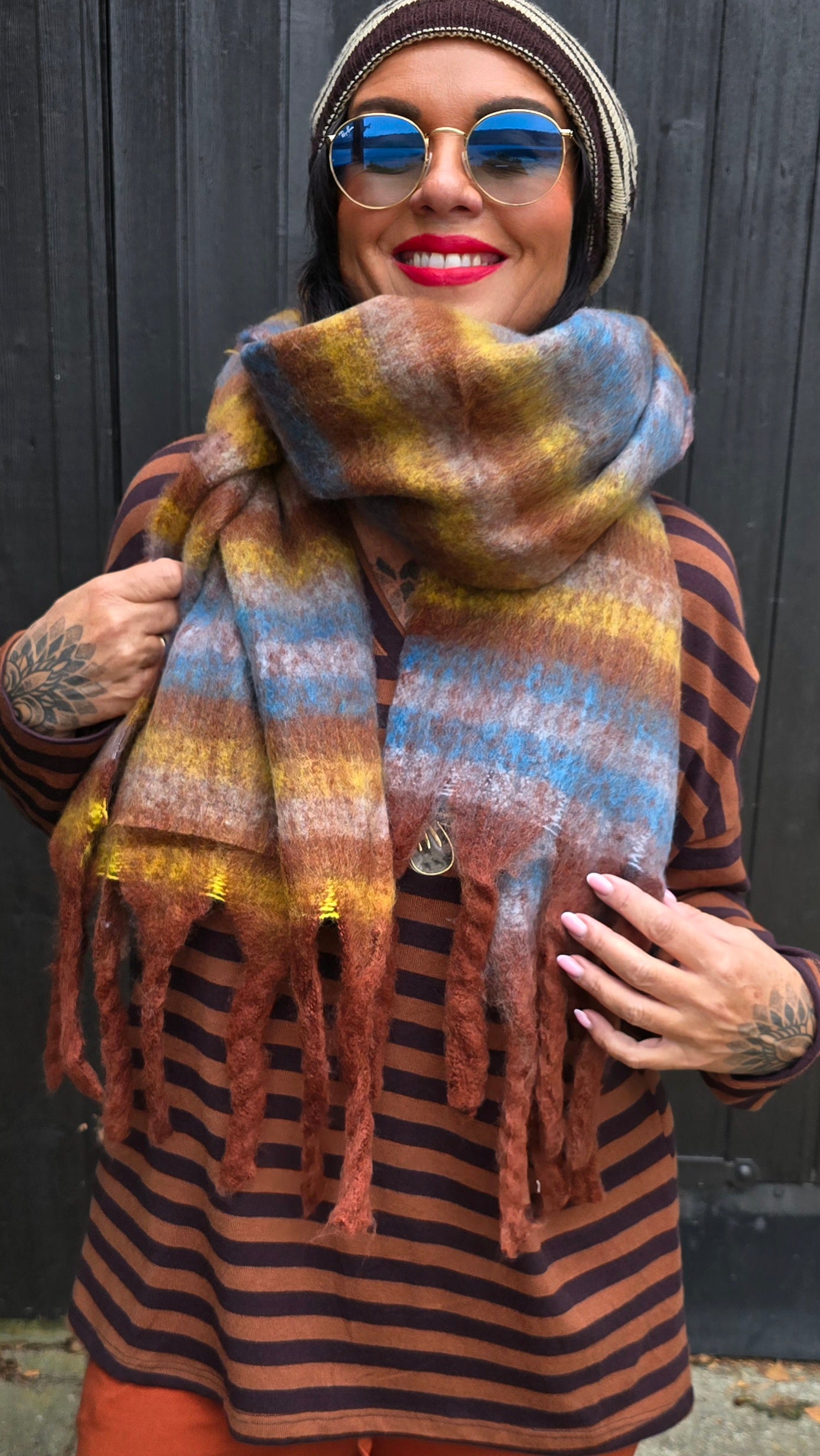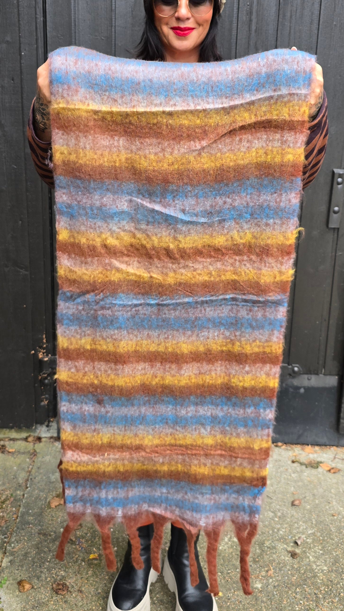 Avlångt scarf med fint mönster i striper Så mjukt.Långa fransar nederst