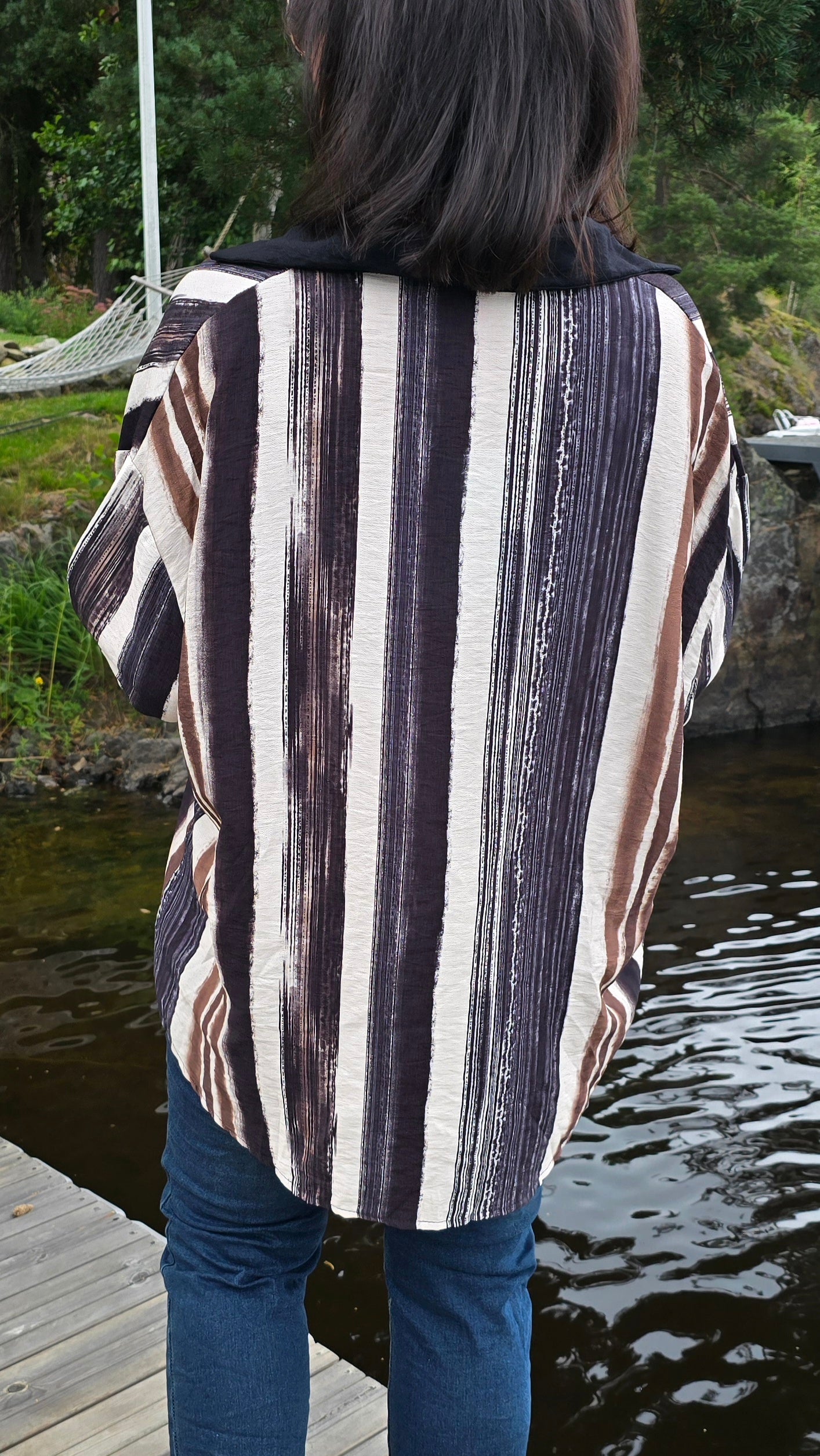 Svart og brun stripete skjorte