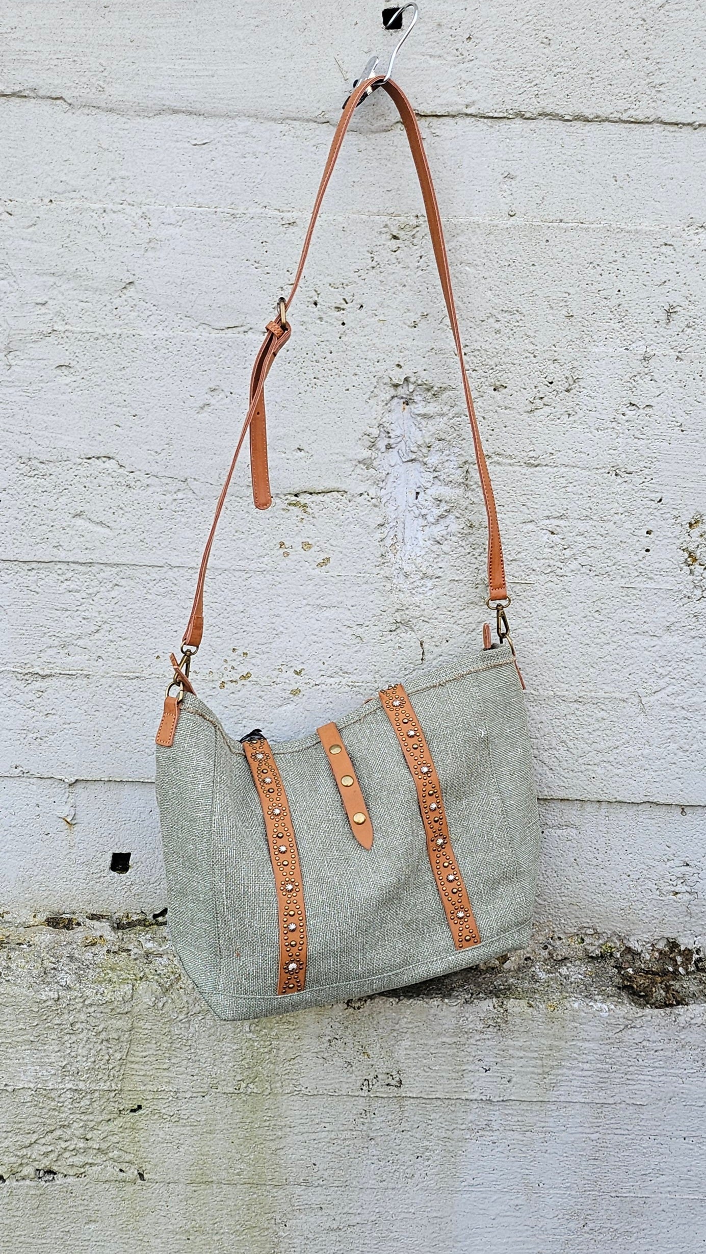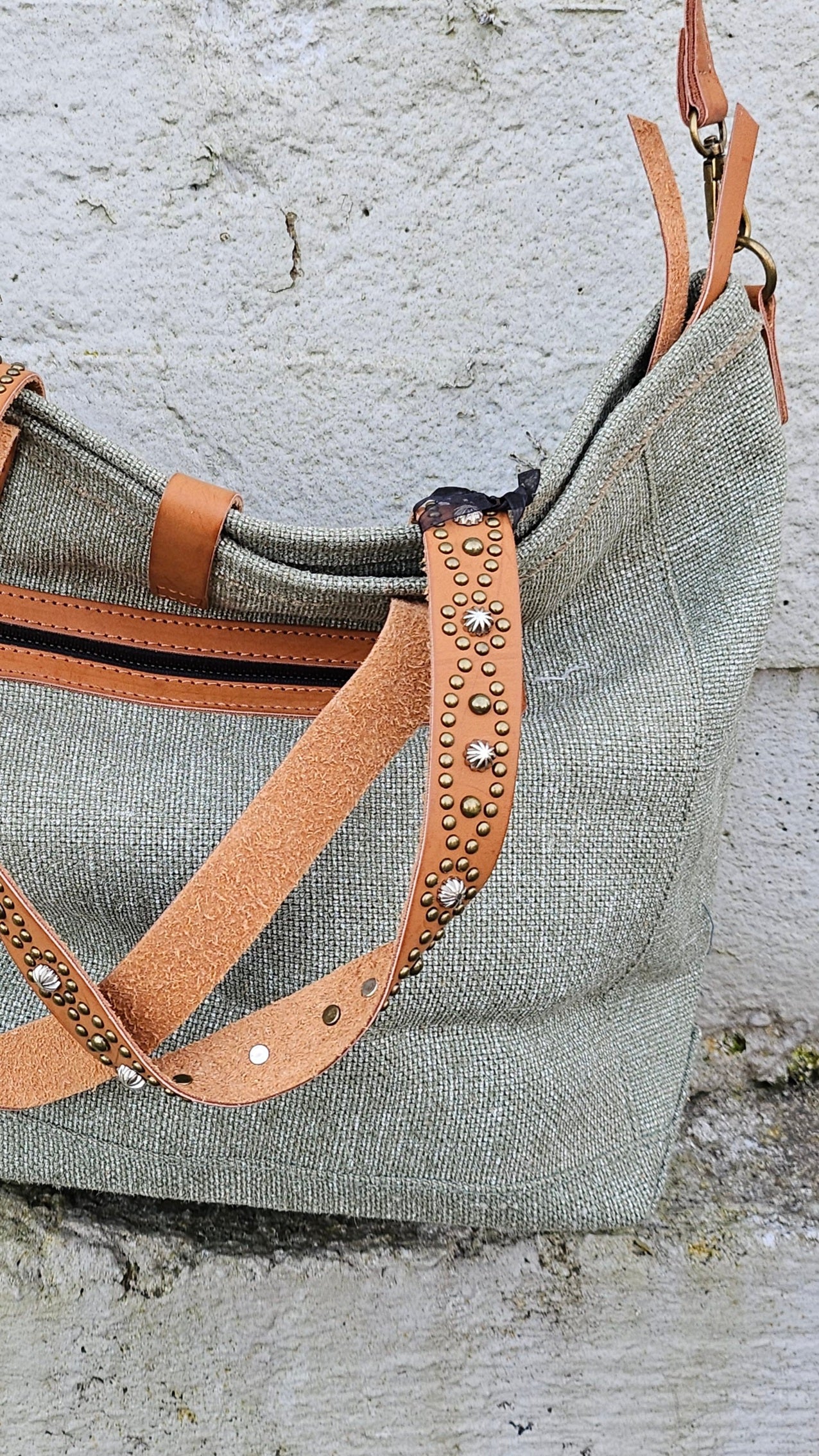 Tuff väska med fake skinn detaljer.Regulbar rem.