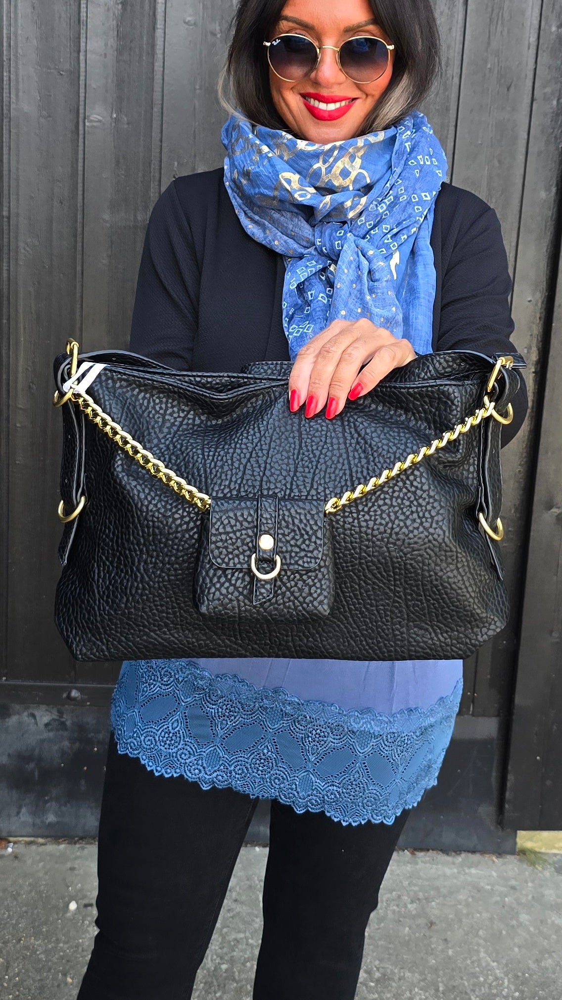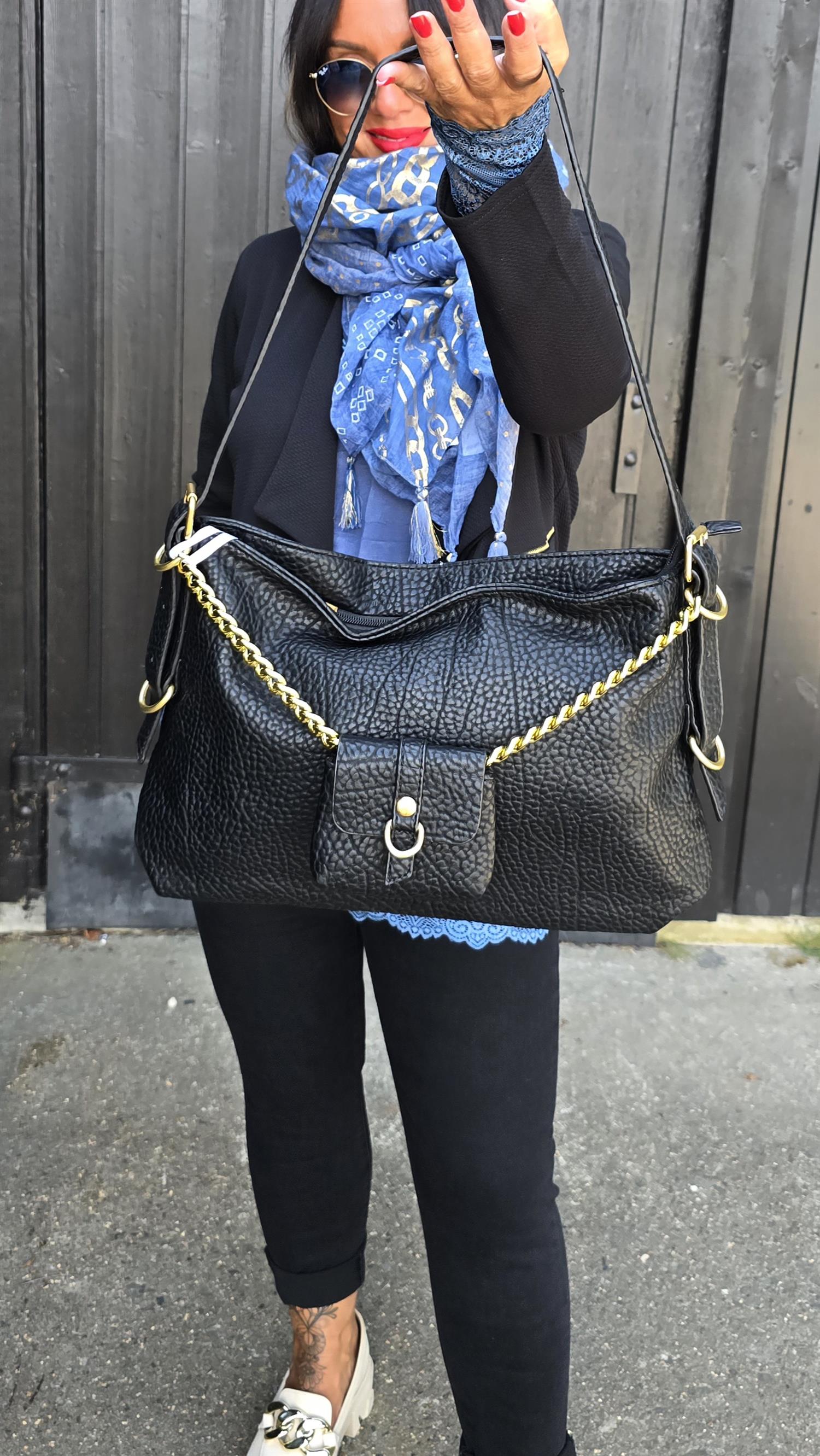 Tuff väska i fake skinn med guld kedja. Regulbar rem.