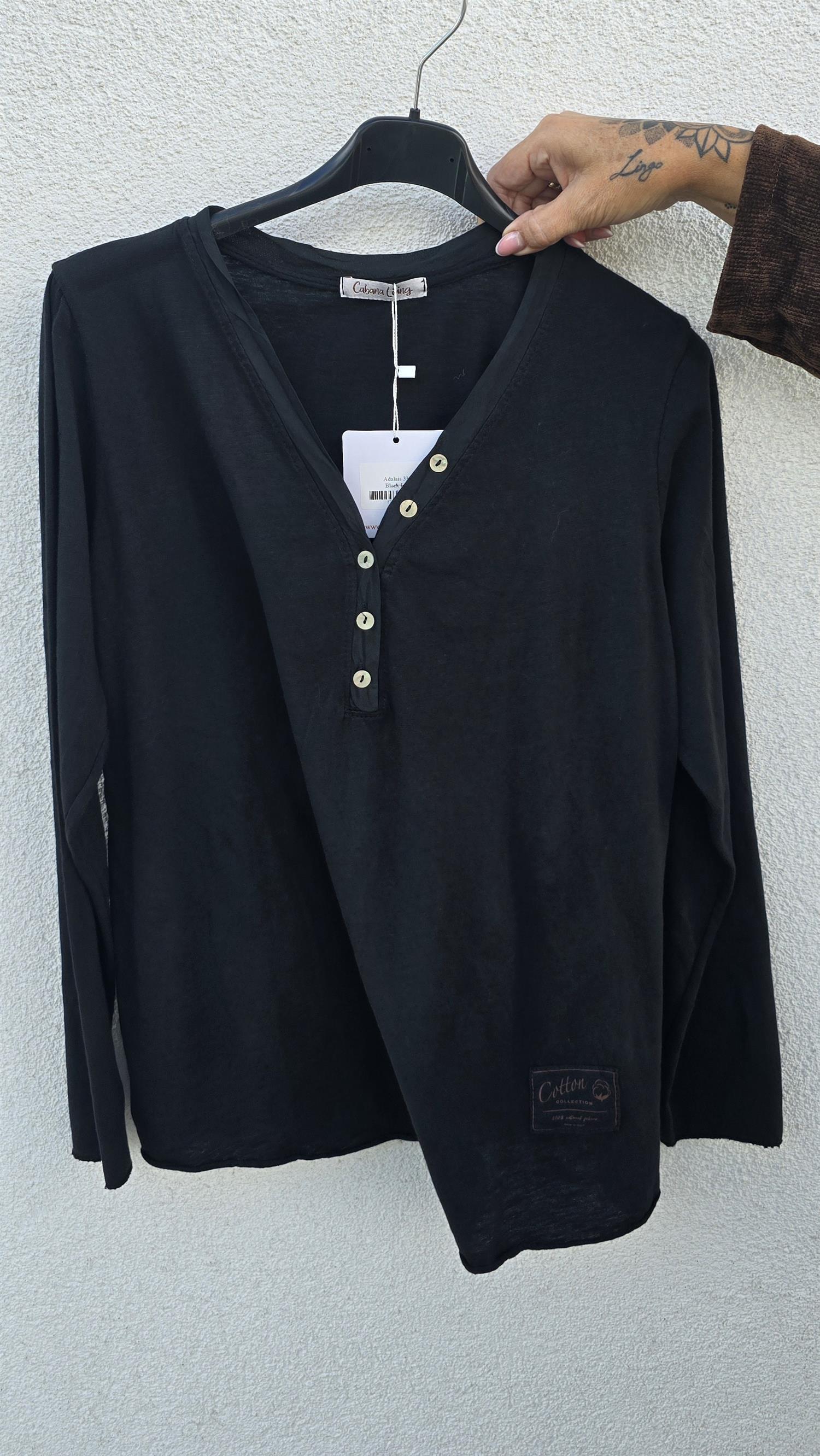 Mycket fin basic topp med knappar I halsen. Fint insvängd. Långa armar. Knallgod basic topp. God passform.