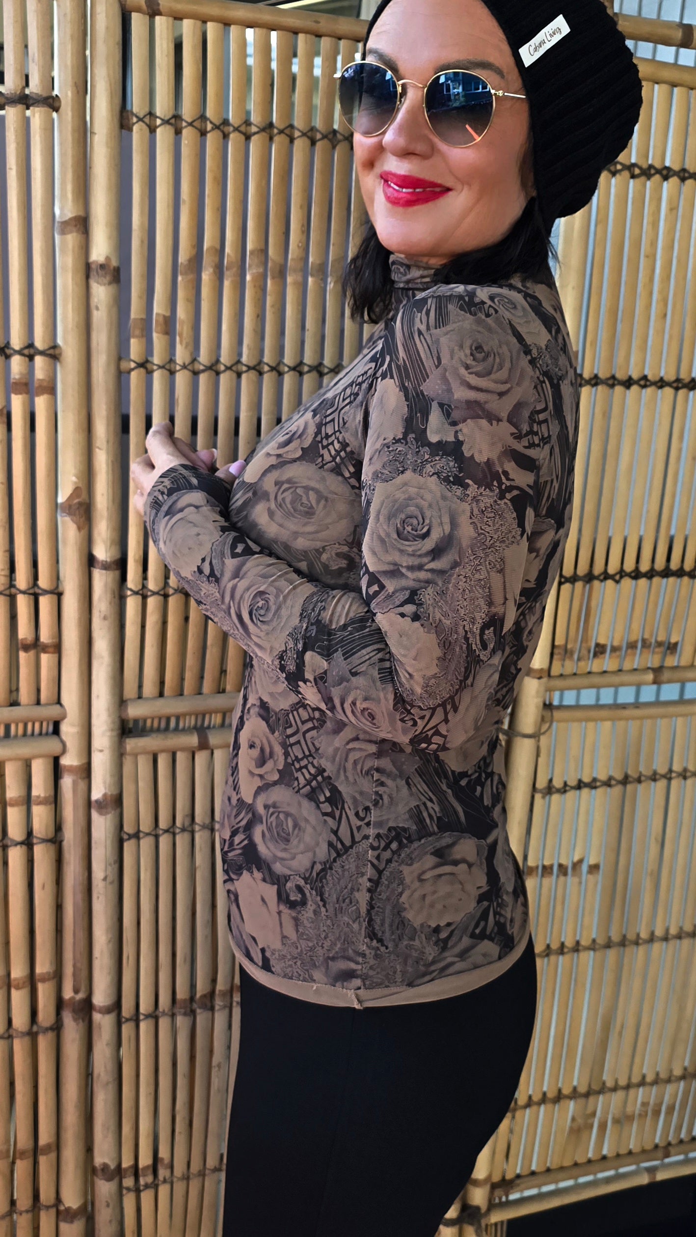 Ylva slim topp med mønster camel