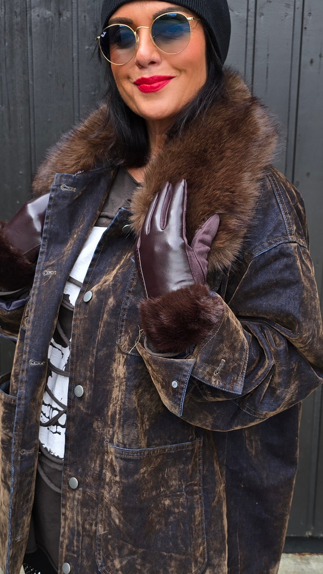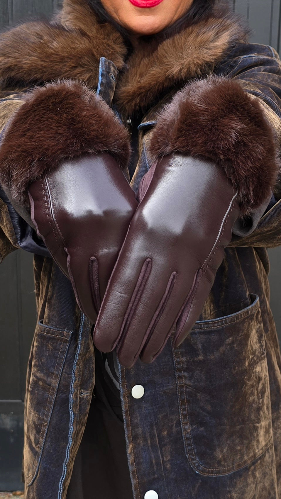 Luna hanske med pels brun