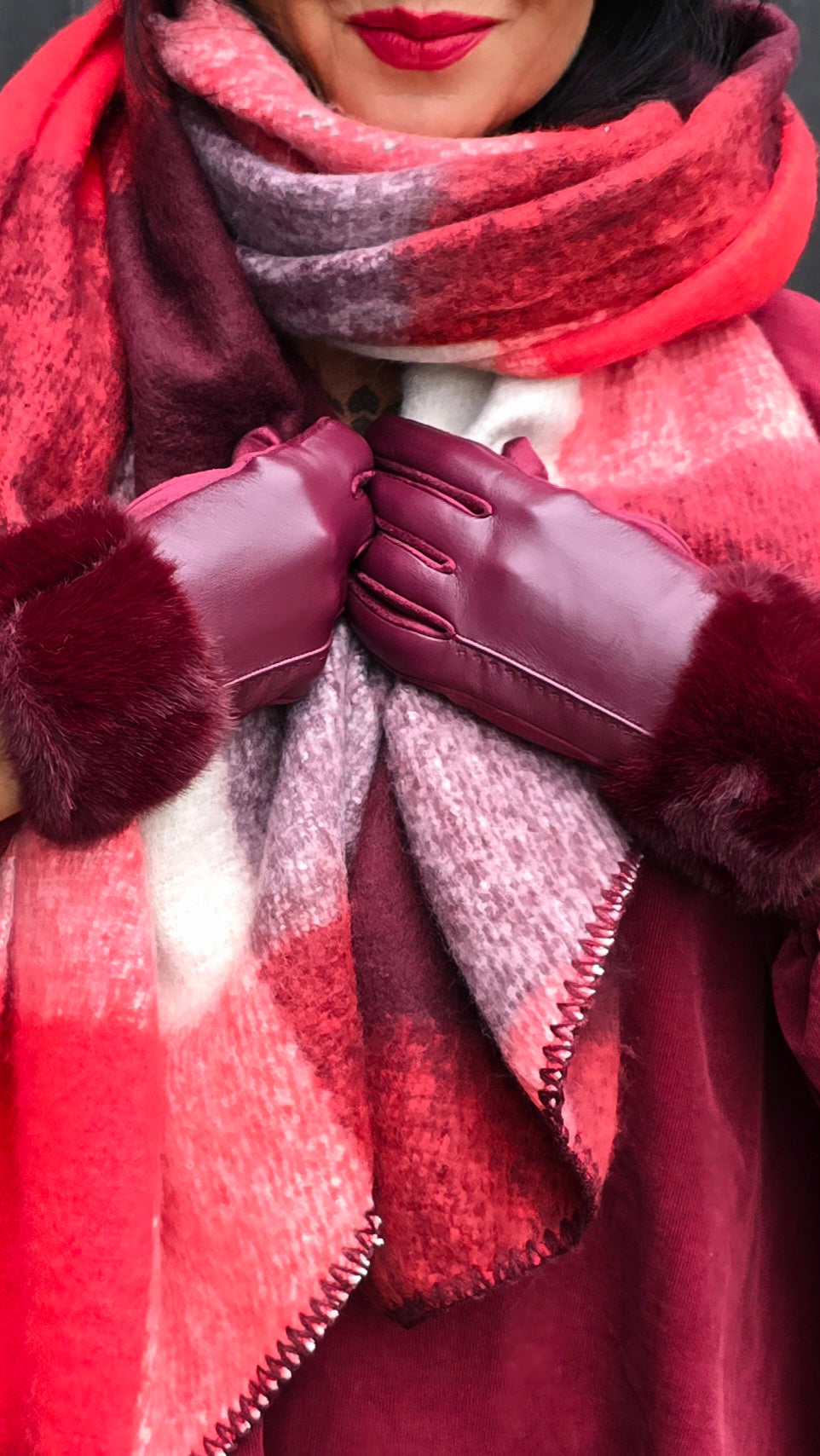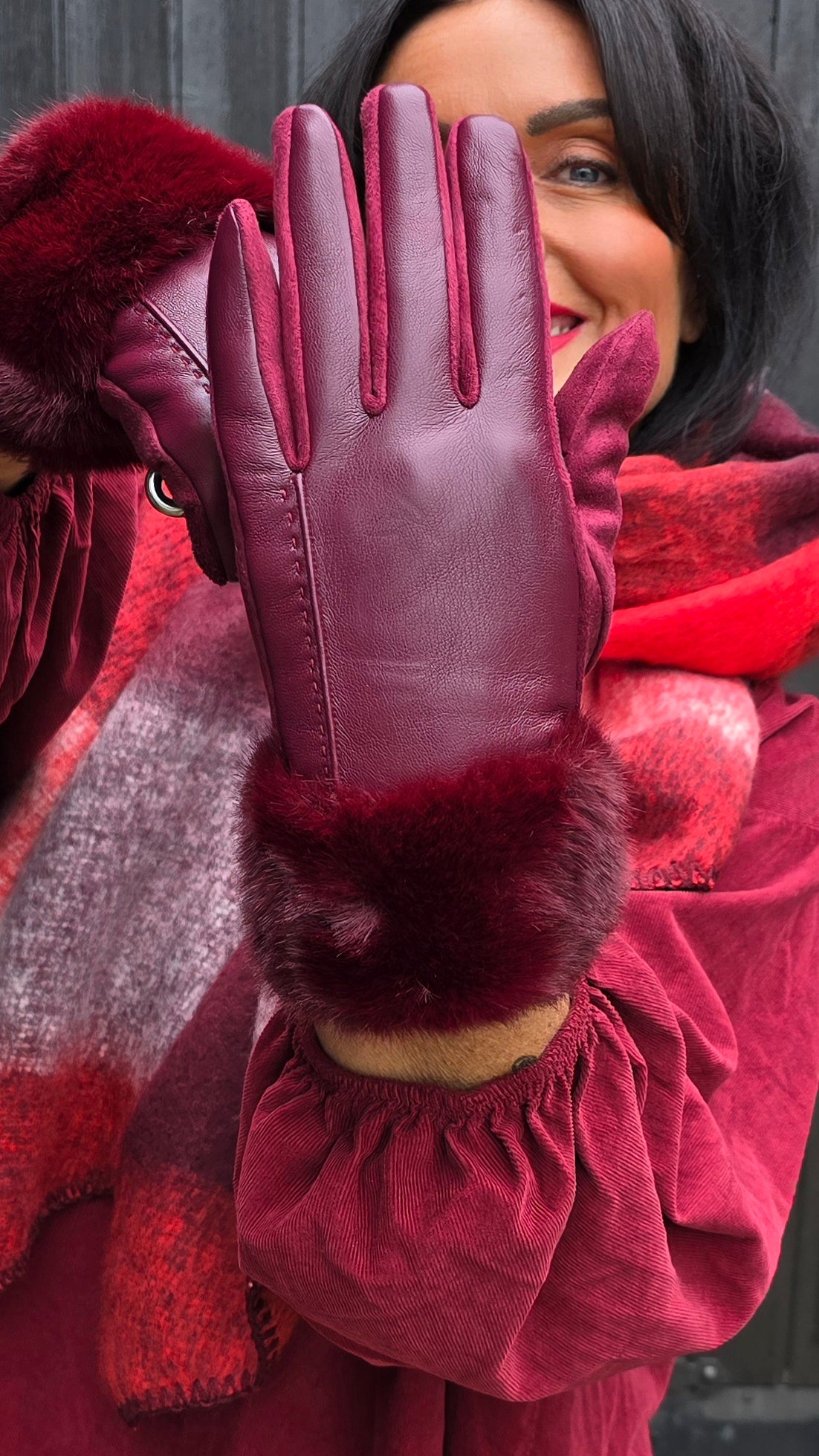 Handske med päls på. Pu skinn på översidan. Mjuk fleece på insidan