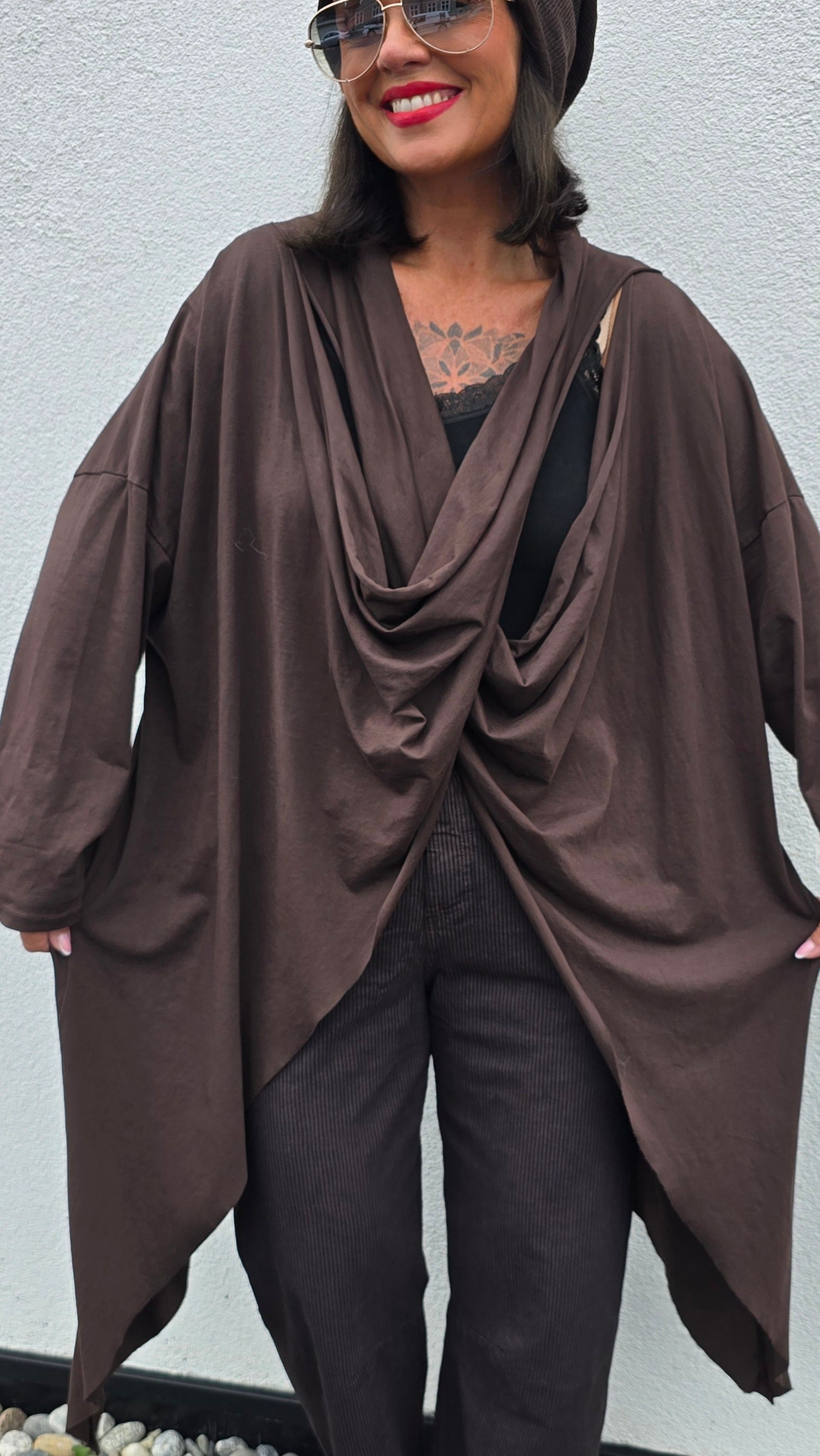 Härlig tunika med extra kul hals. Den har läcker a-symetrisk stil. Långa armar. Tunn å skön på.