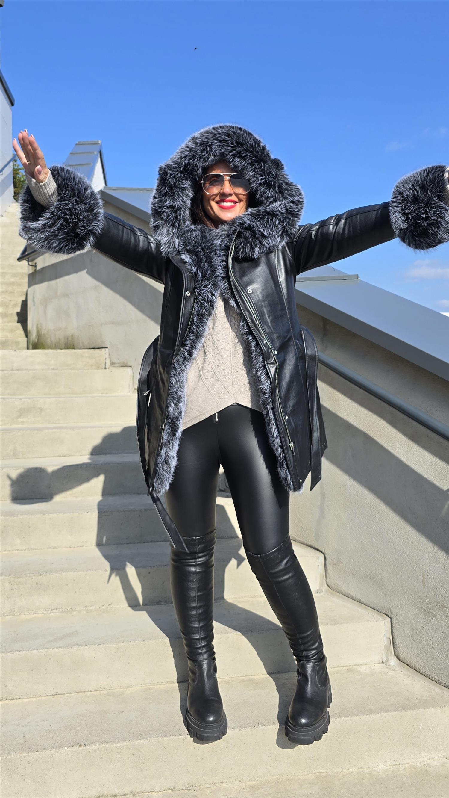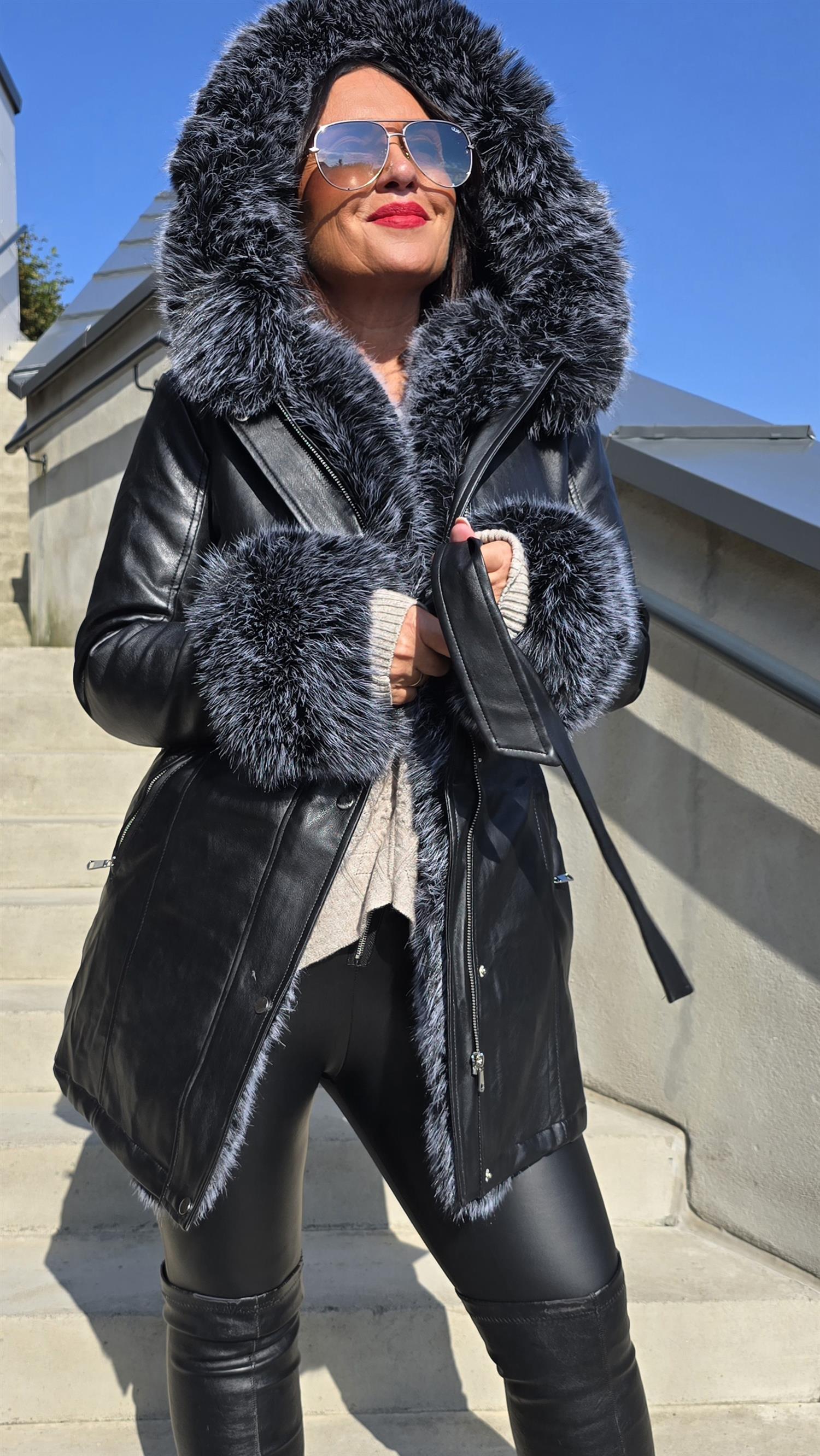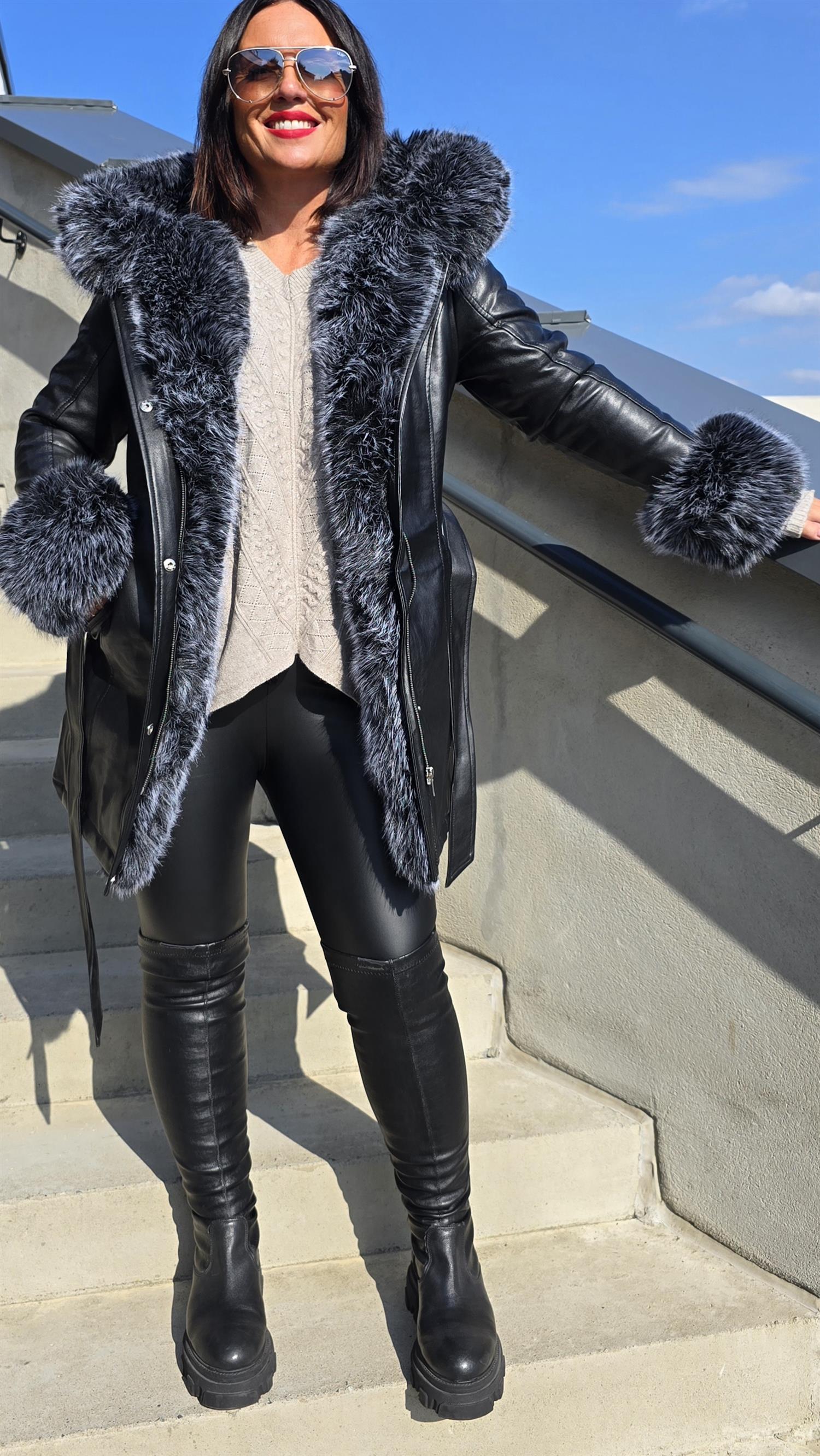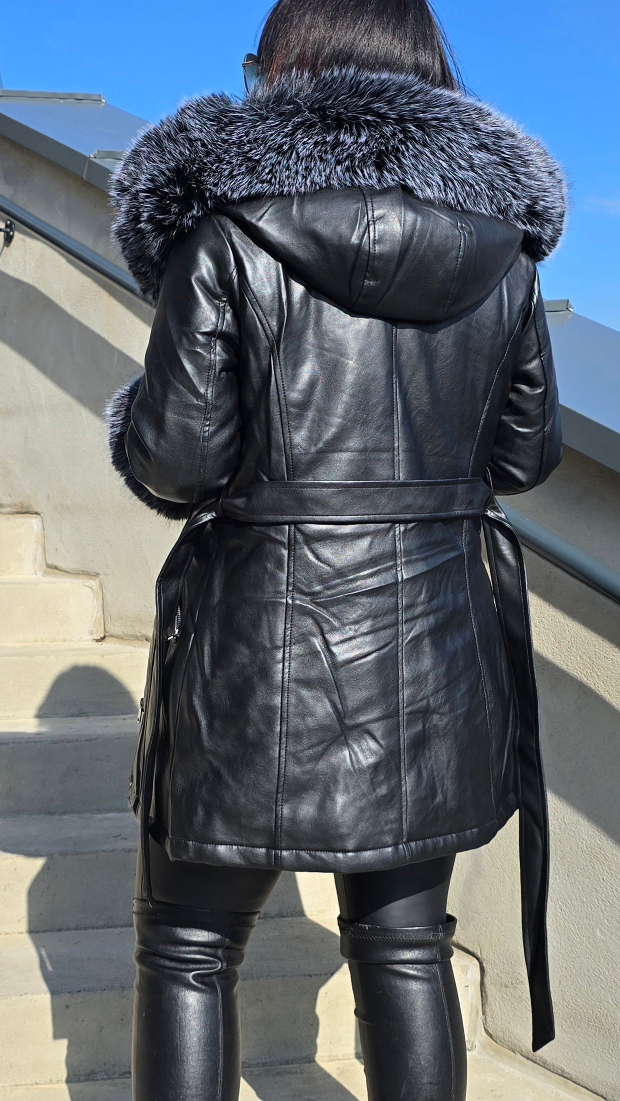 Råfin pälsjacka med bälte. Päls detaljer kan tas av så då kan man få två olika stilar. Lommer I sidan. Foder på insidan.