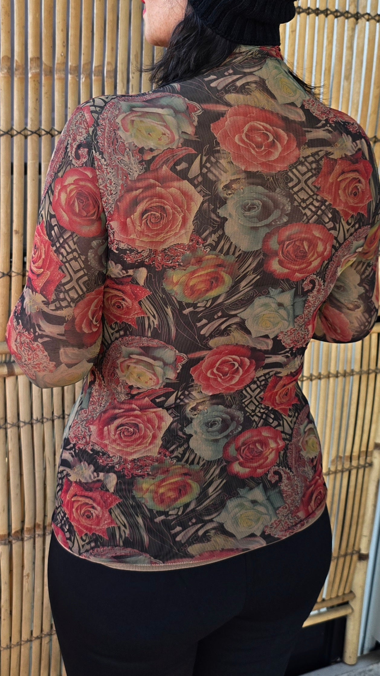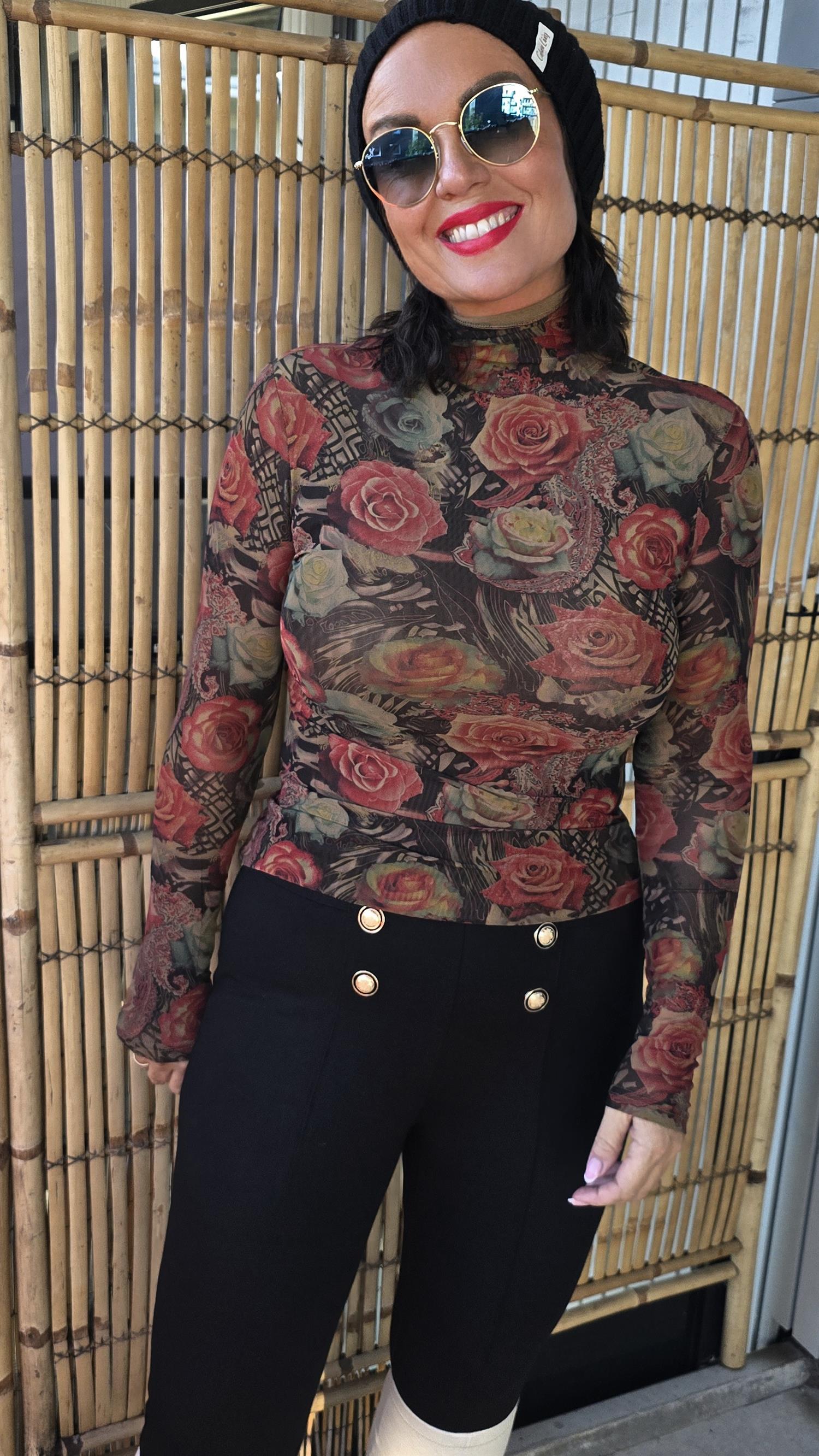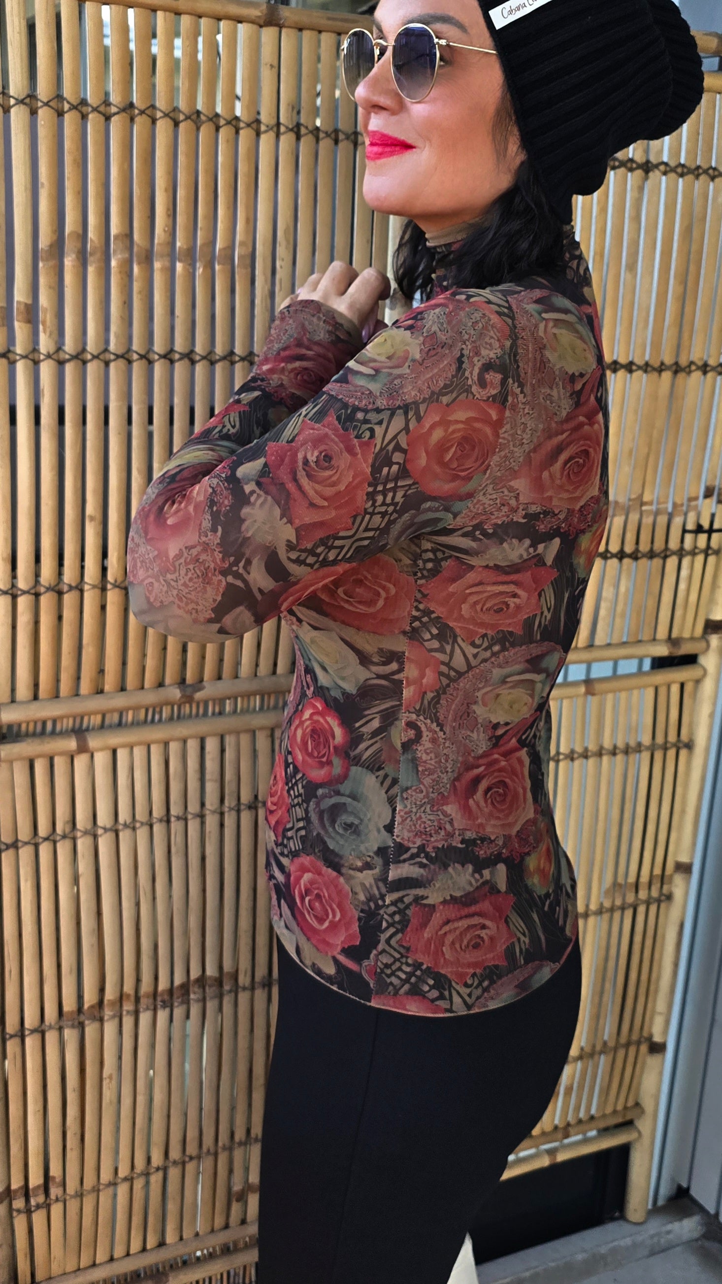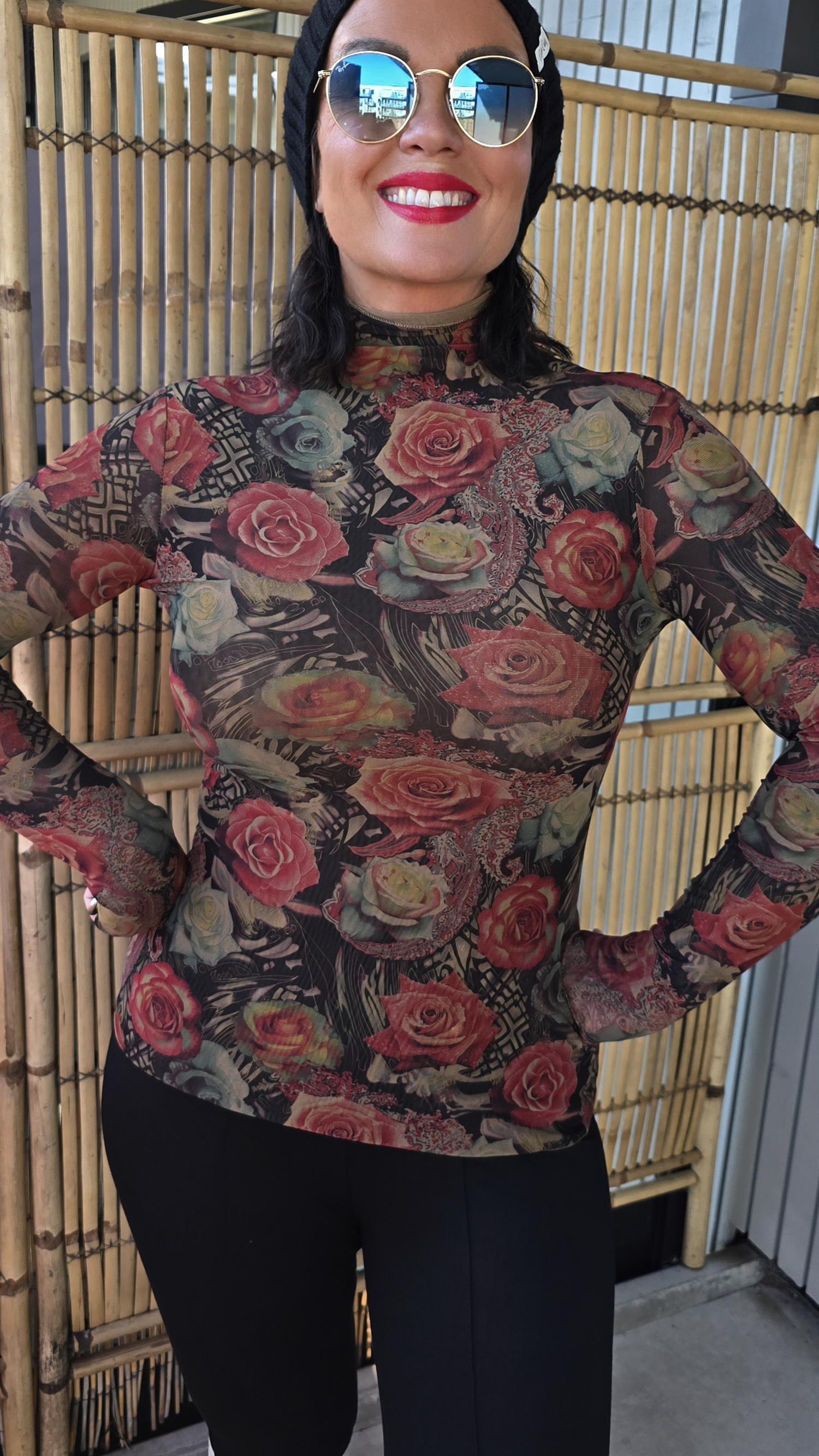 Stretchig topp med fint mönster. Hög hals. Långa smalare armar. Slimmad topp. Perfekt under blazer, skjorter eller en cardigan.