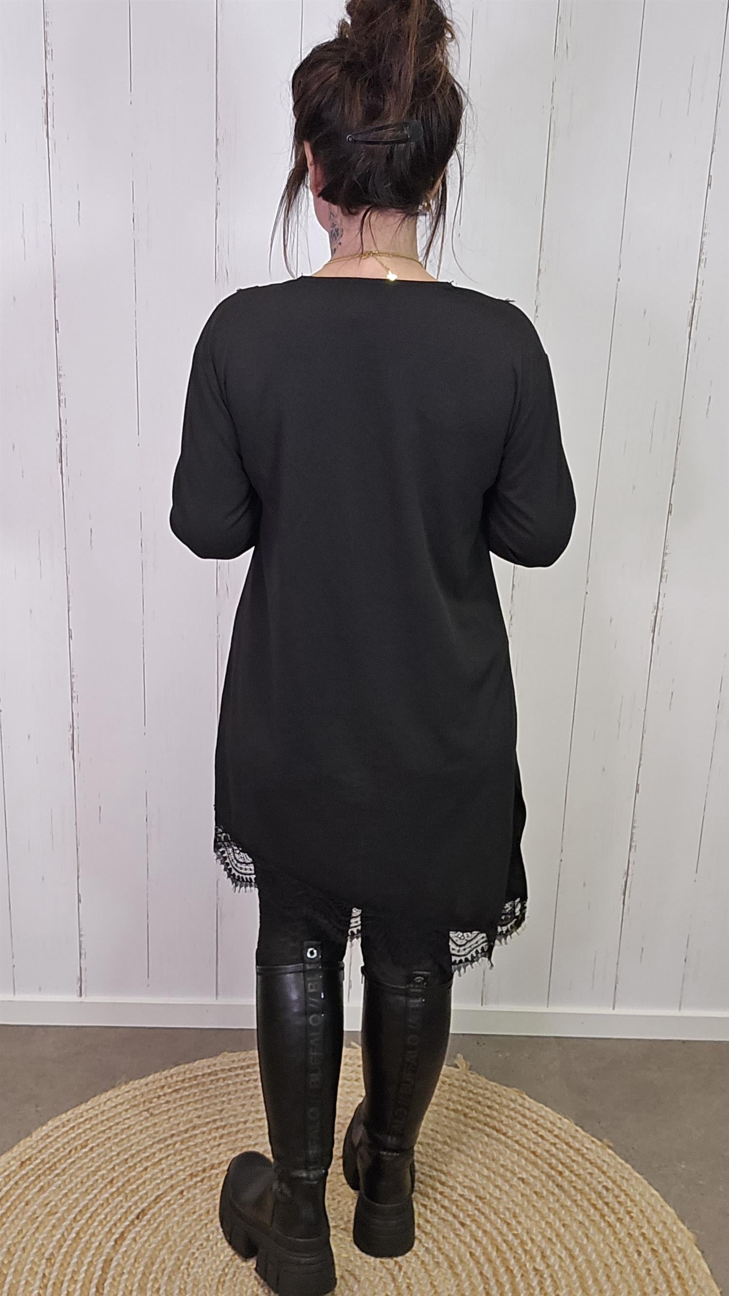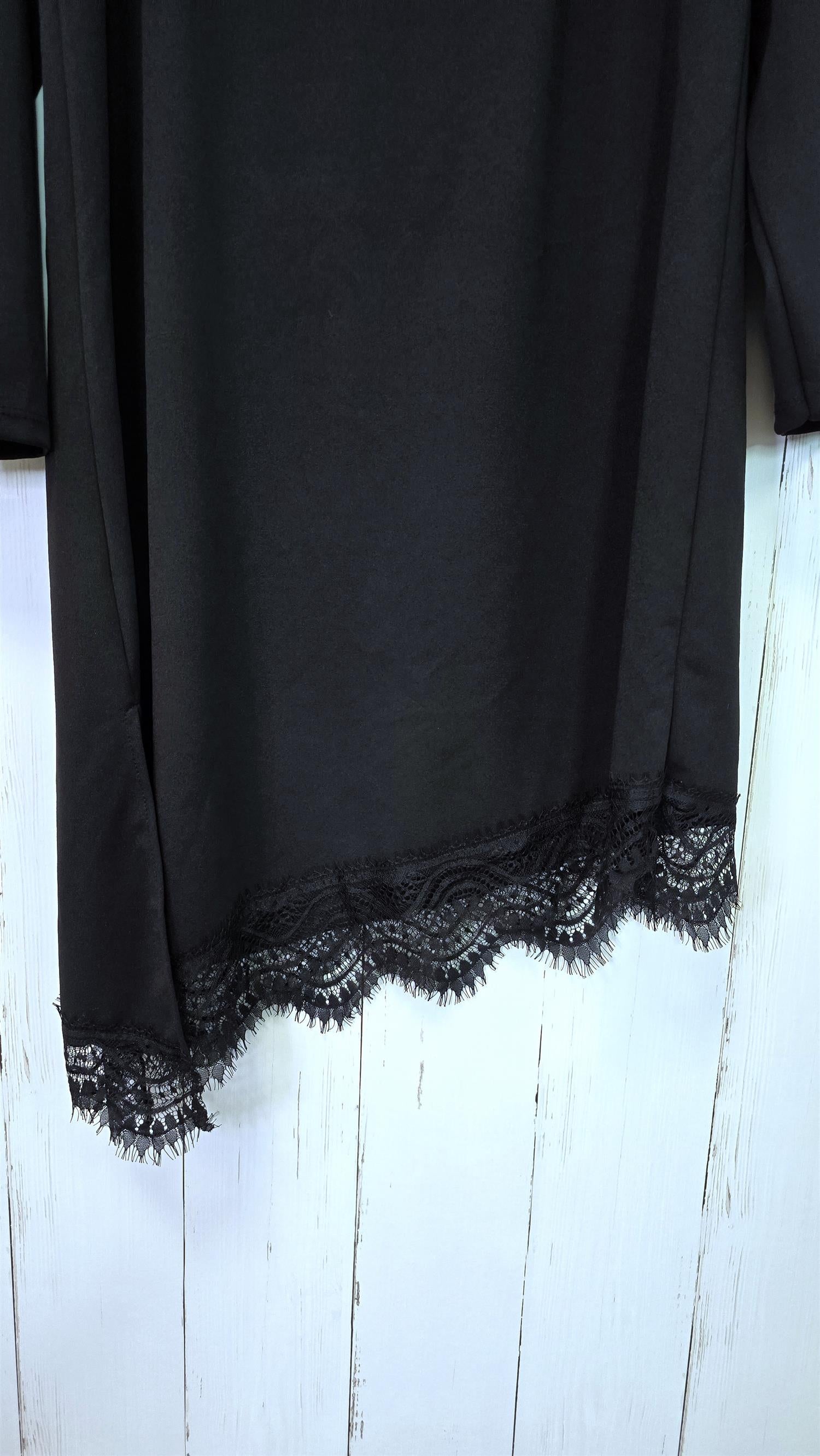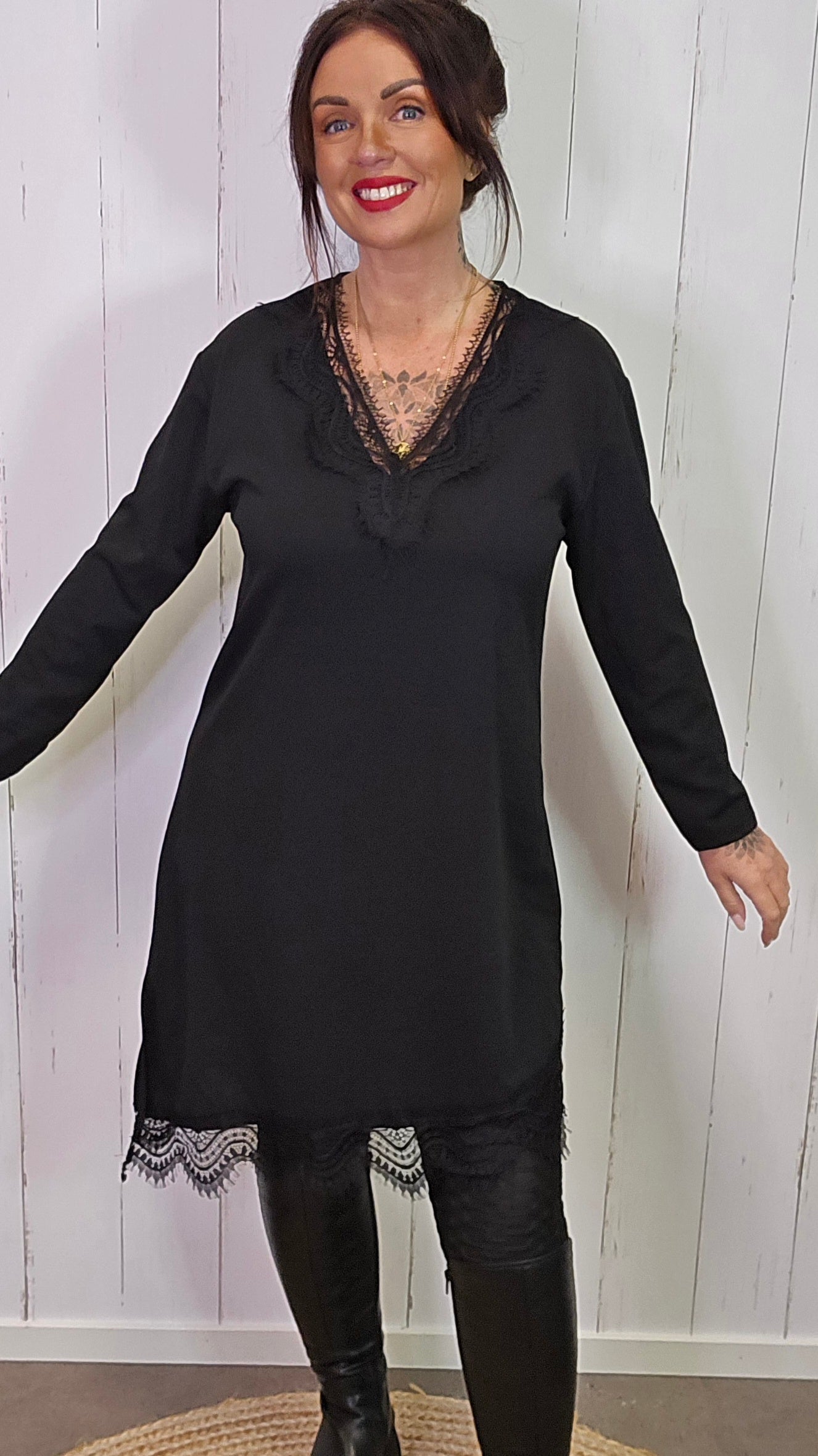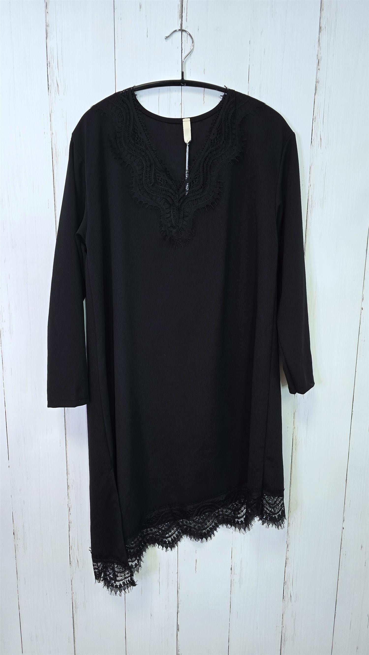 Elegant og tidløs kjole med lange ermer og vakre blondedetaljer i halsutringningen og langs kanten nederst. Kjolen har en myk og behagelig passform med lett stretch som gjør den komfortabel å bruke hele dagen. De fine blondene gir et feminint og eksklusivt uttrykk, perfekt både til hverdags og til fest.