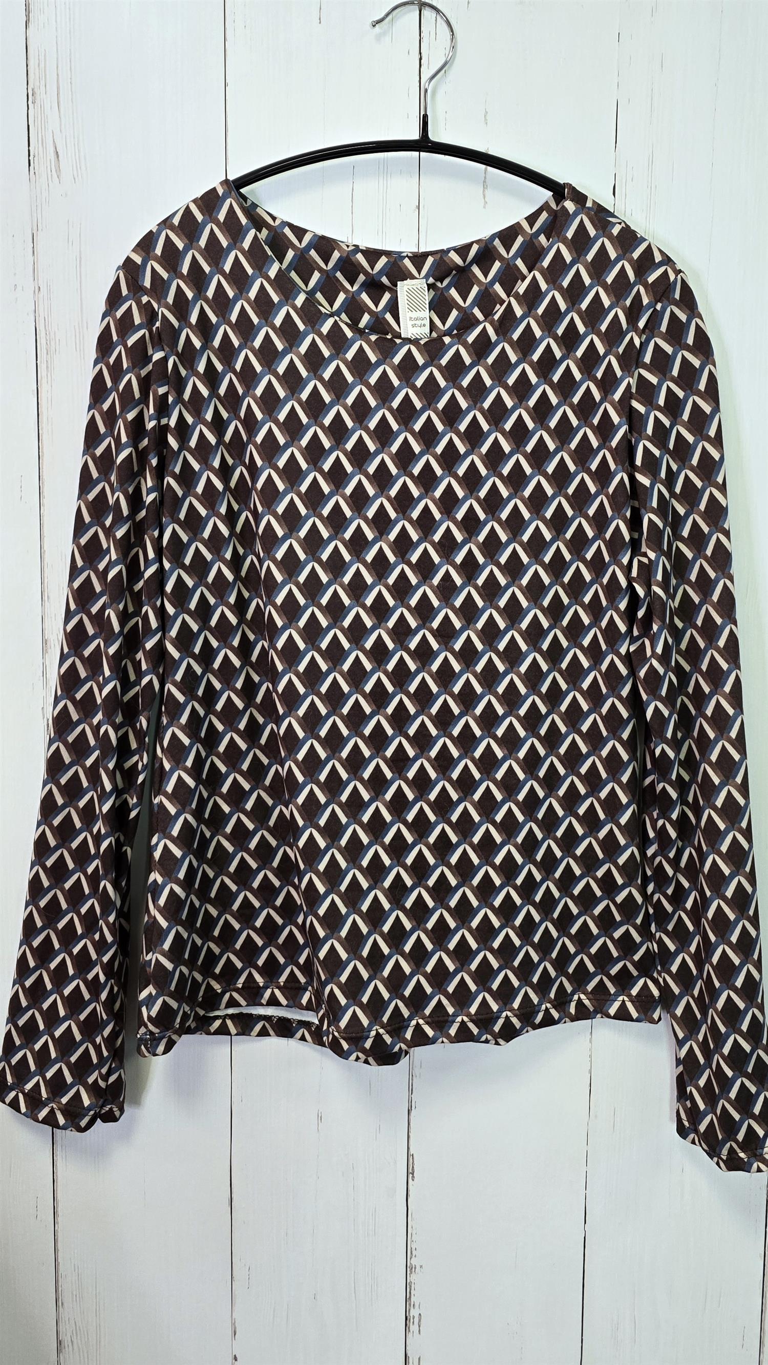 Stilig og komfortabel topp med geometrisk mønster i tidløse fargetoner. Toppen har rund hals, lange ermer og en rett fasong som gir en flatterende passform. Stoffet er mykt med god stretch, perfekt til både hverdags og kontorbruk.