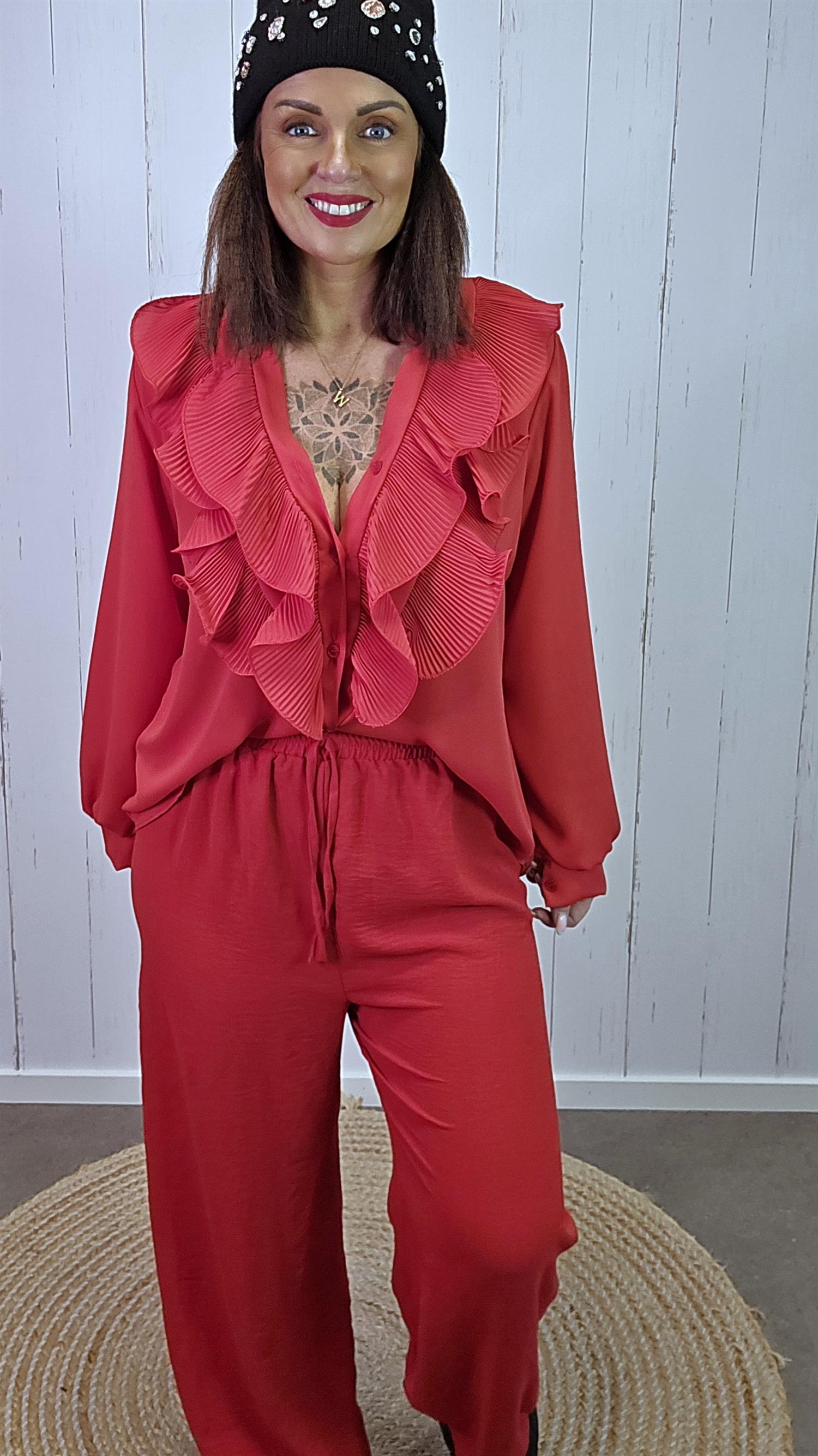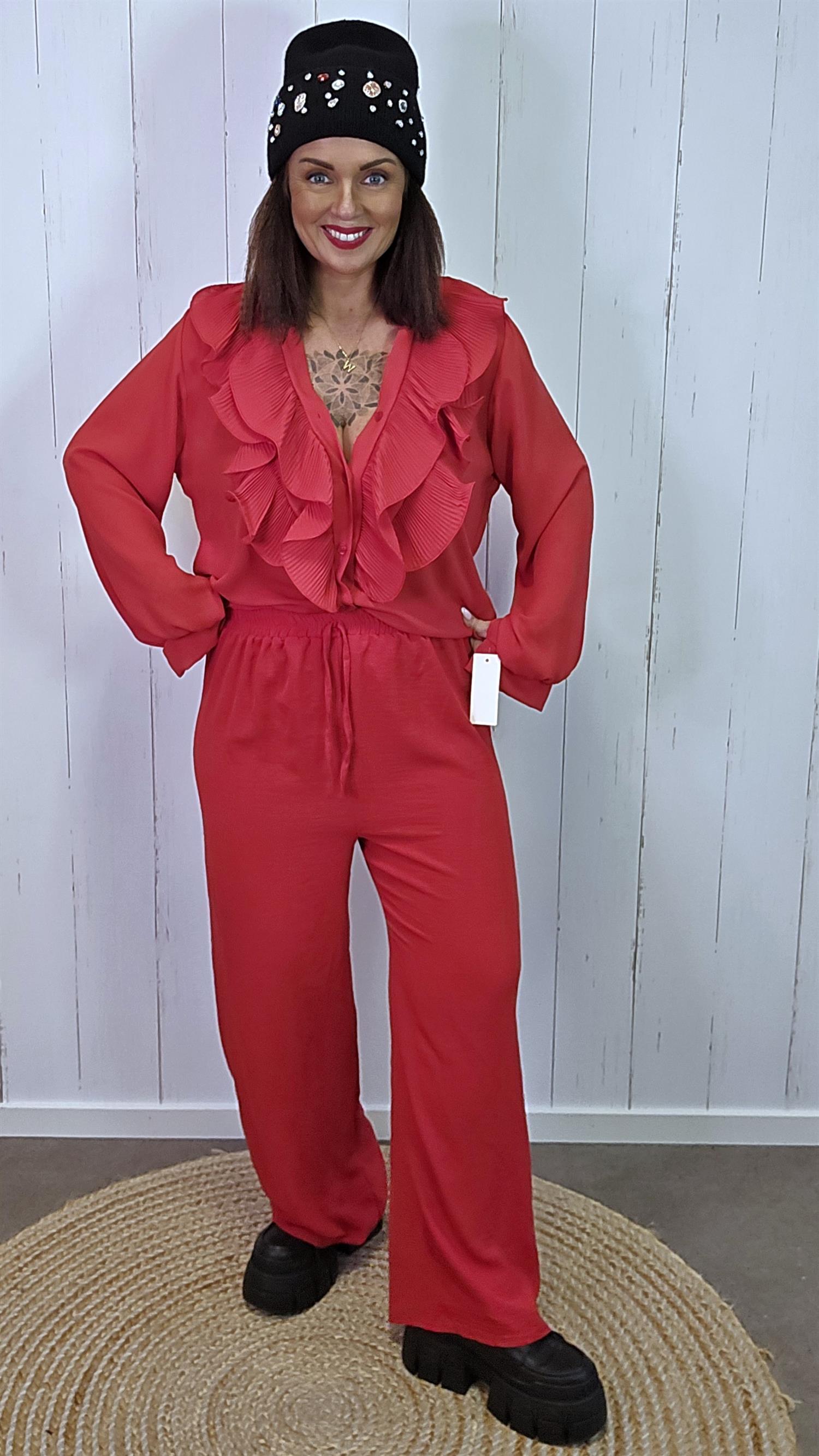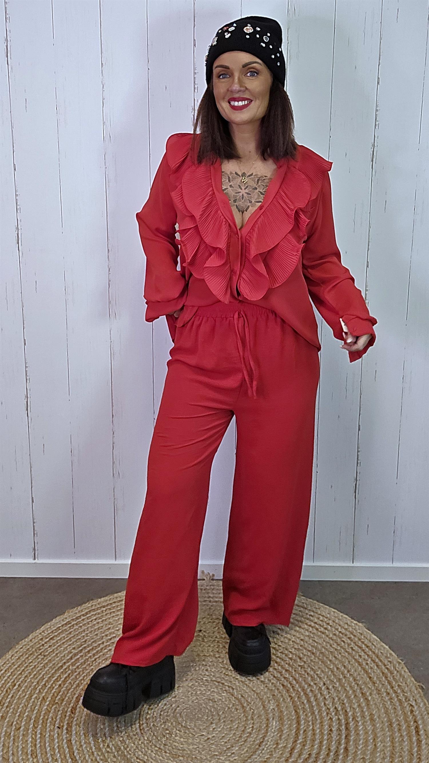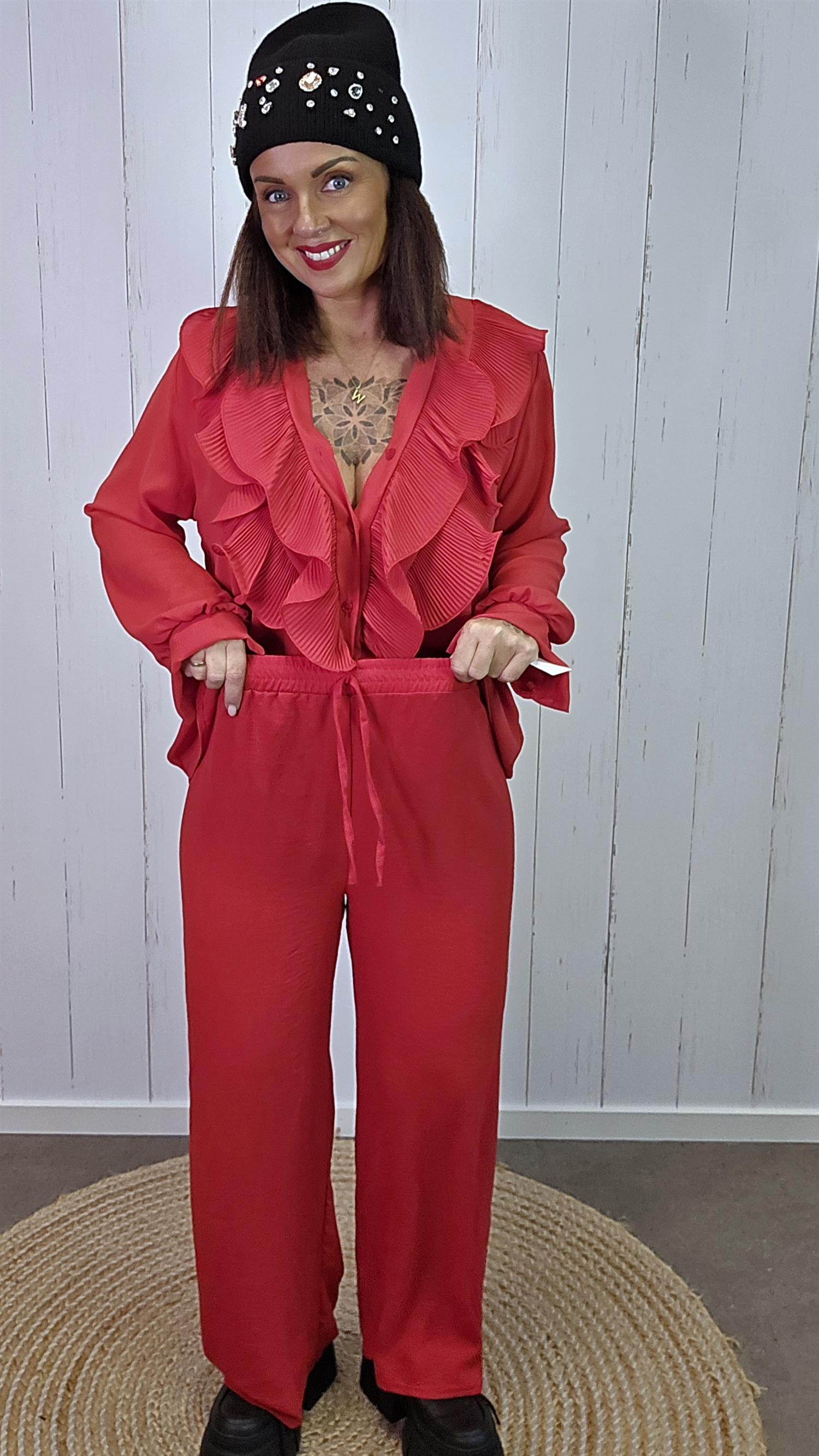 Tindra bukse er laget i et lett og behagelig stoff med en lekker, svakt krøllet tekstur som gir et elegant uttrykk. Den har bred strikk i livet som sitter godt og komfortabelt, samt et dekorativt knytebånd i front. Buksen faller pent og rett ned med vide ben som gir en flatterende og avslappet silhuett.