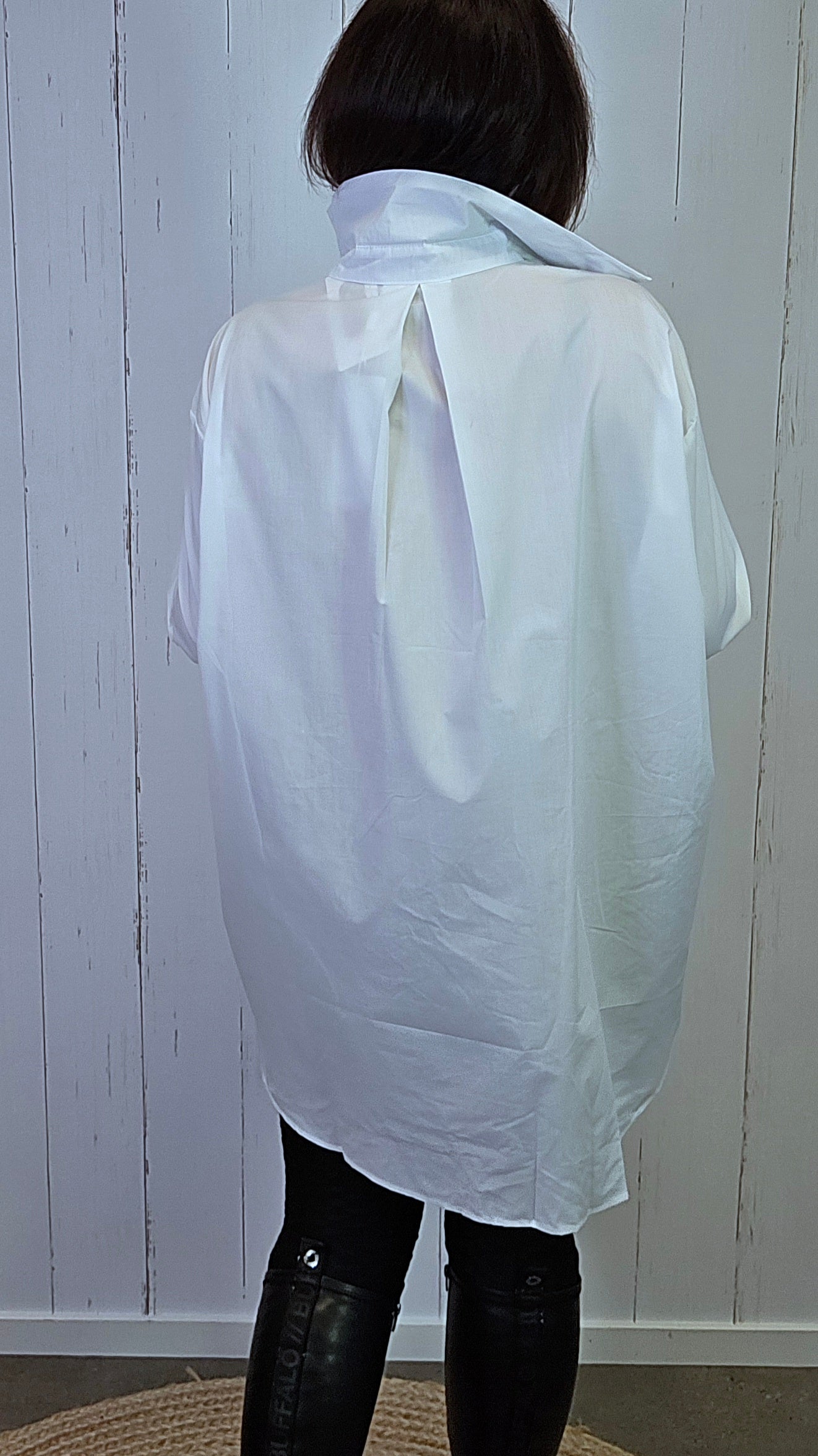 Anna er den tidløse skjorten alle garderober trenger. En elegant hvit skjorte med klassisk krage, brystlomme og knappelukking foran. Den har en lett oversized fasong med avrundet kant nederst, som gir et moderne og flatterende snitt. Ermene avsluttes med brede mansjetter og knapp.