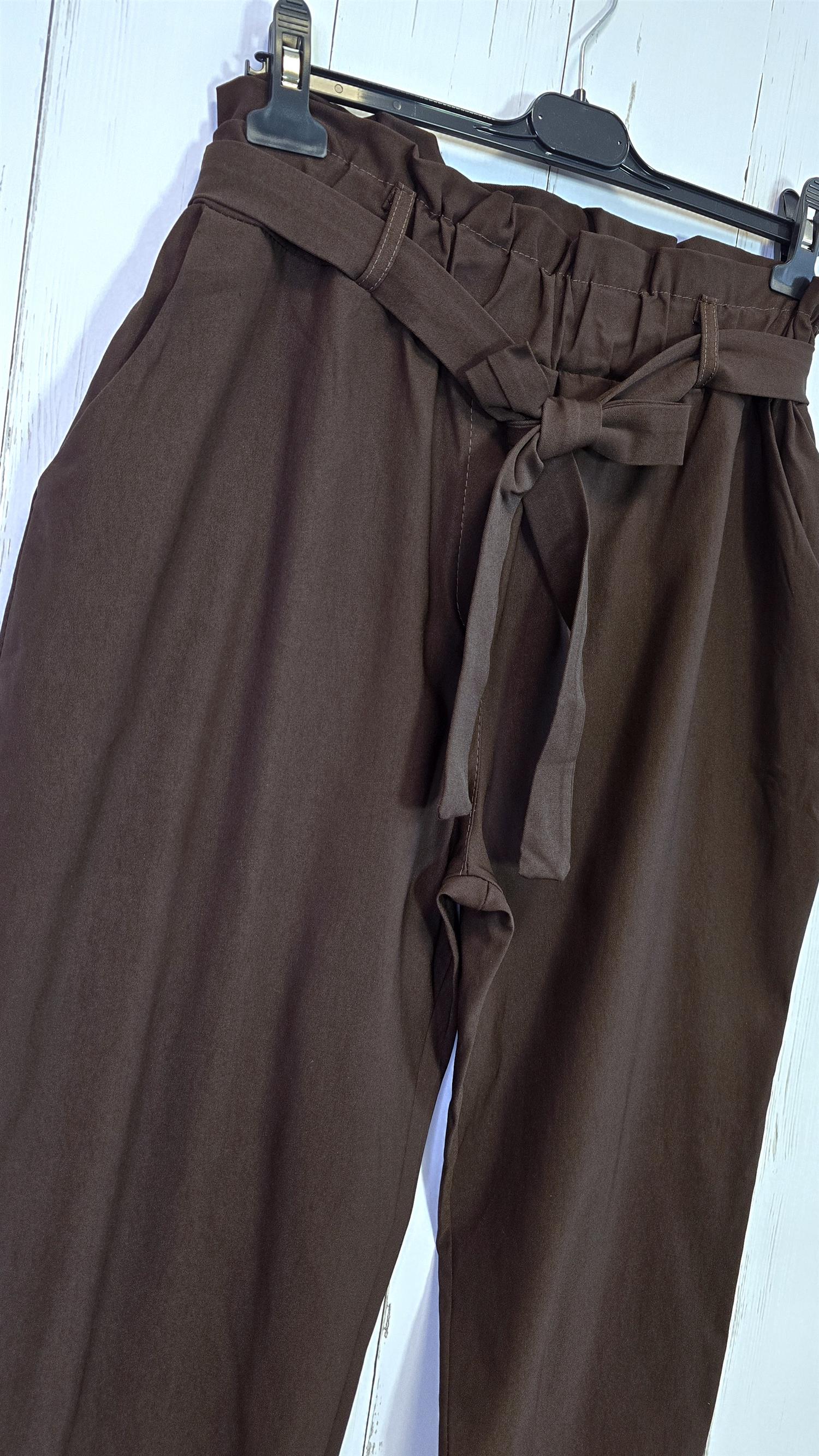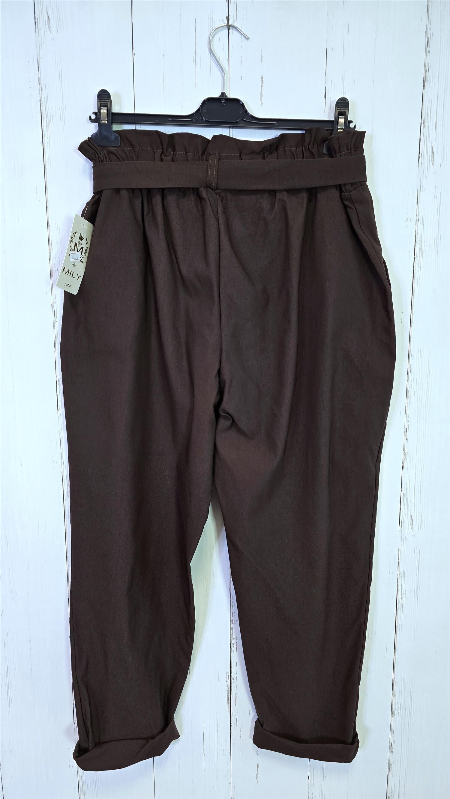 Elegant og behagelig bukse med høyt liv og knytebelte i midjen. Den har rynkedetaljer øverst, rette ben og oppbrettet kant nederst. Stoffet føles mykt og lett mot huden, og gir et pent og komfortabelt uttrykk som passer like godt til hverdags som til kontor. Engelsk blonde på lommen.