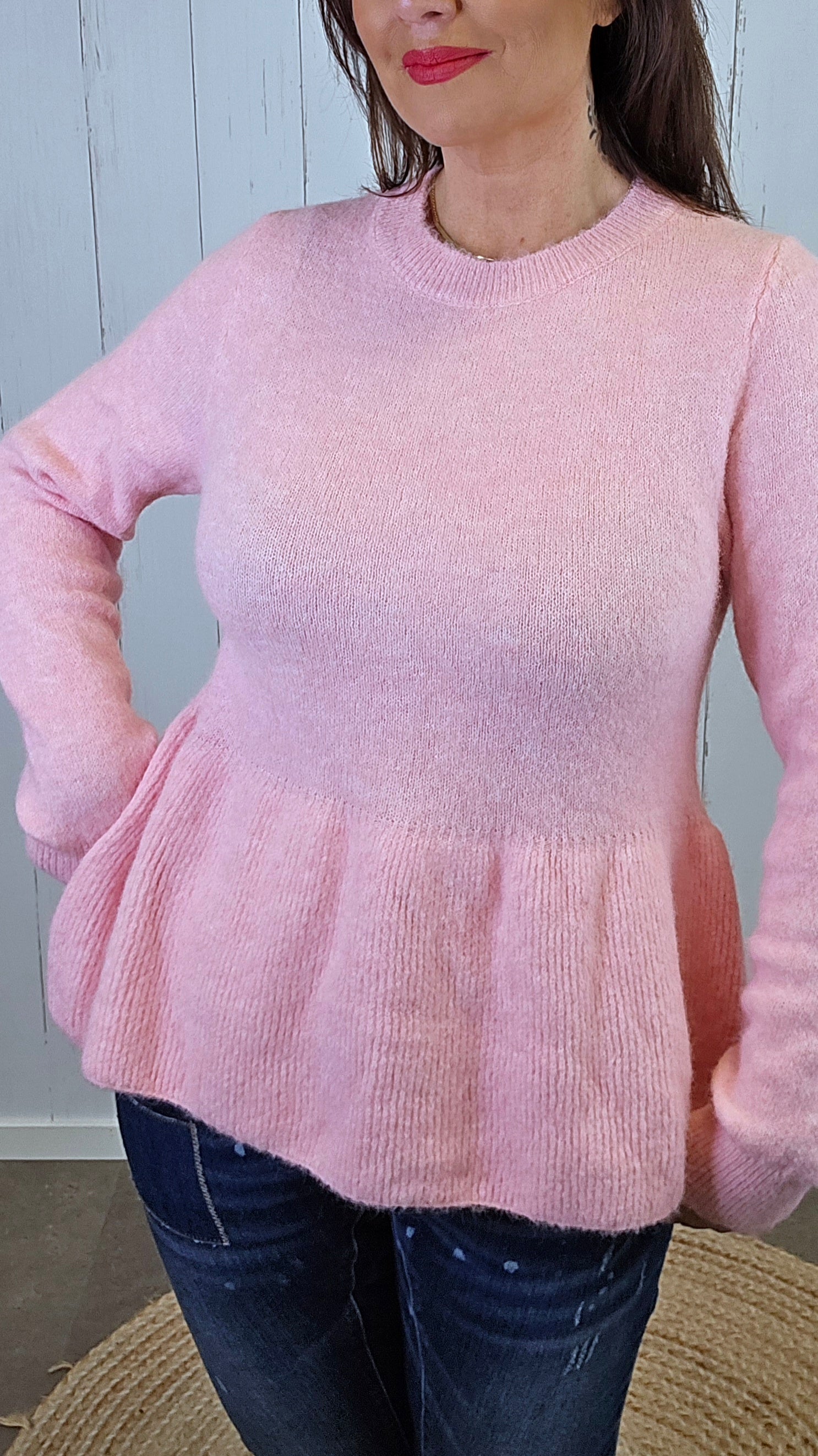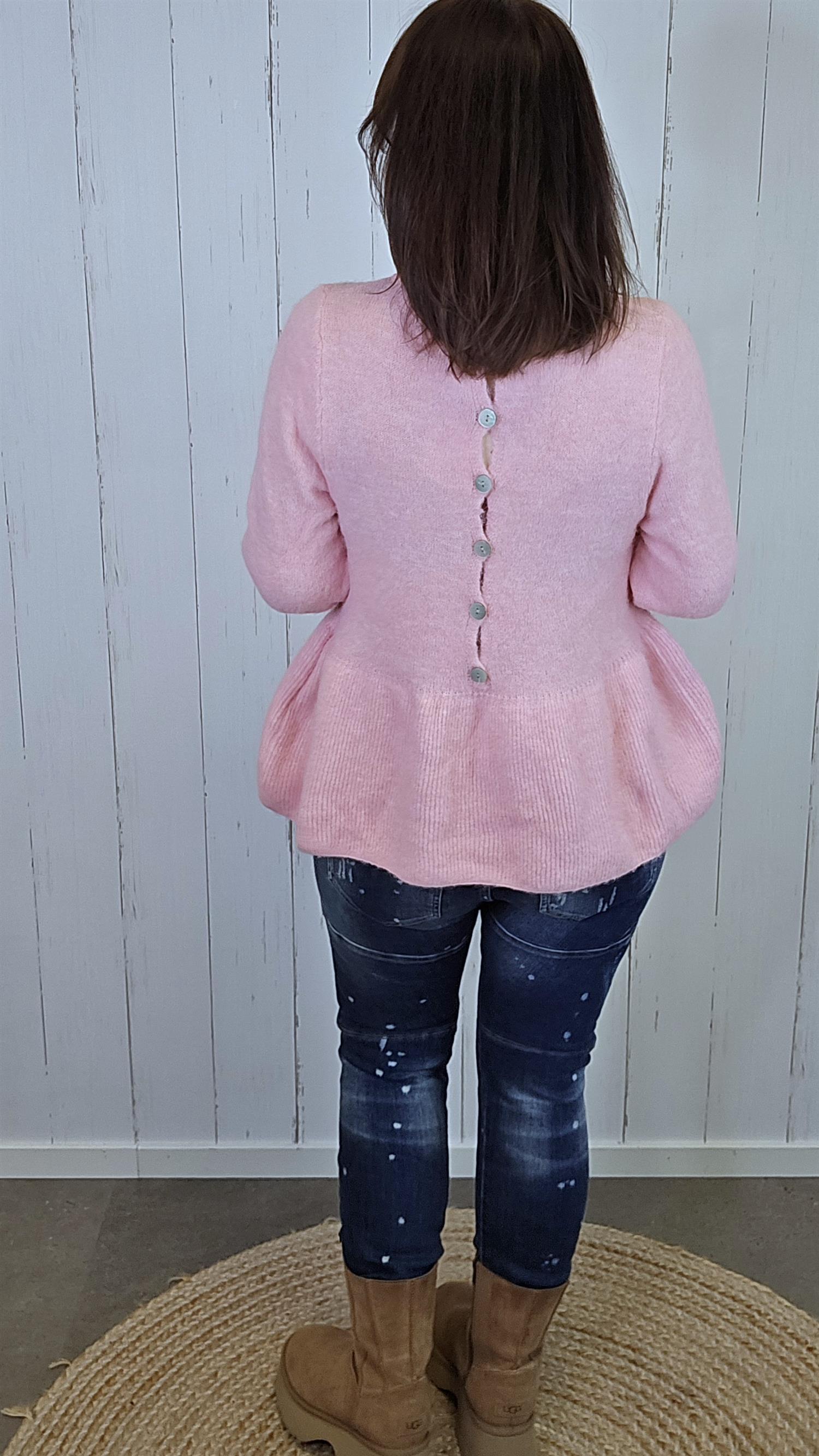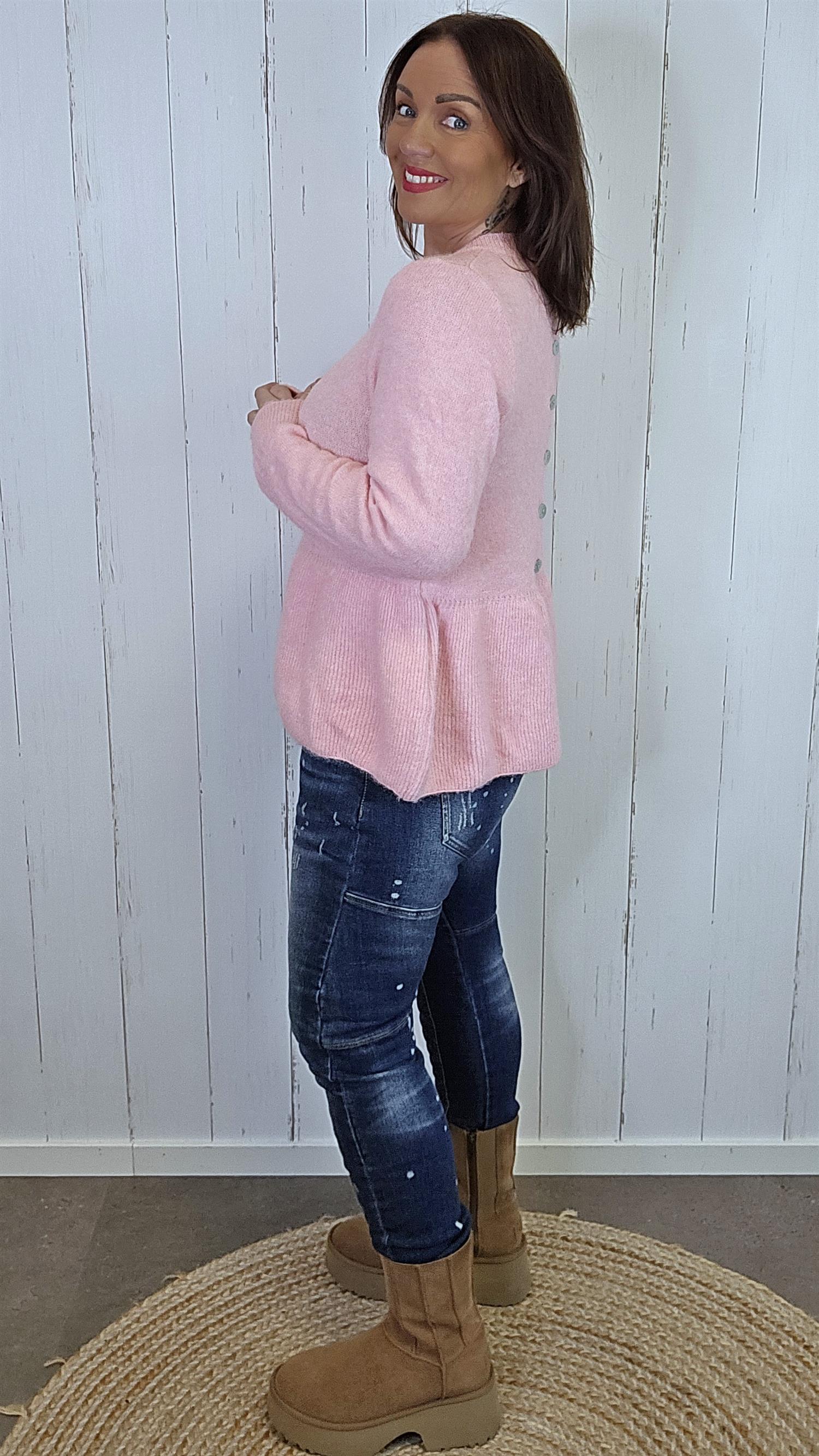 Deilig og myk genser i brunmelert strikk med børstet overflate som gir en eksklusiv, lun følelse. Genseren har rund hals, lange ermer og nydelige knapper langs ryggen som gir et feminint og unikt uttrykk. Lett avslappet passform som faller fint på kroppen og gjør den behagelig å bruke både til hverdags og mer pyntede anledninger.